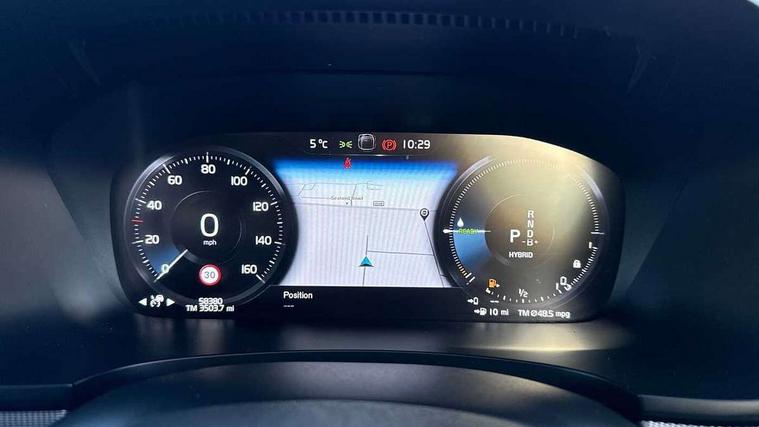 12.3" Progressive Driver Display, 9" centre console touch screen, Adjustable steering wheel force, Bluetooth handsfree system, Drive mode selector, Driver assistance (pilot assist and adaptive cruise control), Driver awareness - Blind spot system + steer assist, cross traffic alert with autobrake, rear collision warning and mitigation, eCall emergency system, Front and rear park assist, Google Automotive Services - Navigation with Voice recoginition and google assistant, Lane keep assist with driver alert control, Oncoming Lane Mitigation, Powered bootlid operation, Service interval indicator, Speed limiter, Speed sensitive steering, Volvo on call app, Wireless apple carplay, 7m 10amp charge cable with 3 pin plug and 7m 1 phase 16amp type 2/mode 3 charge cable, 8 speed automatic transmission with start/stop + manual change functions, Dynamic chassis, Electric rear axle drive, Lithium-Ion Battery 11.6kWh, Recharging port located in nearside front wing, DAB Digital radio, Steering wheel remote infotainment controls, Adaptive brake lights with high level LED brake lights, Auto dimming interior + exterior mirrors, Automatic headlight levelling system, Colour coordinated door mirrors, Dark tinted windows for rear side windows and backlight, Dual integrated exhaust pipes with high gloss black surround, Electric adjustable/heated/auto folding door mirrors, Front and rear power windows, High gloss black Deco lower front bumper, High gloss black deco rear bumper, High gloss black door mirrors and window surround, High gloss black mesh front grille and surround, Home safe and approach lighting, Laminated rear and side windows, Puddle lights, Rain sensor with automatic windscreen wiper activation, Rear boot, Rear LED lights with sequential indicators, Rear side wing doors, Roof antenna, Visible VIN plate, 12V socket in boot, 12V socket in front tunnel console, 2 zone electronic climate control with Clean zone air quality system + pollen filter, 3 bench rear seats in 2nd row, 3 spoke tailored sports steering wheel with high gloss black trim, A-pillar parking ticket holder, Ambient door and instrument panel lighting, B Pillar ventilation, Boot lid Illumination, Centre armrest storage illumination, Centre console cupholder and storage, Charcoal headlining, Driver's side lower dashboard storage compartment, Extended front seat cushions, Front and rear door pocket and front cupholder illumination, Front and rear footwell and side step illumination, Front head restraints, Front/rear reading lights, Heated front seats, Height/reach adjustable steering column, Illuminated front and rear aluminium tread plates, Illuminated glovebox, Illuminated luggage compartment, Illuminated vanity mirrors + ticket holder, Integrated sun curtains in rear doors, Isofix system on outer rear seats, Multicolour theatre lights, Power driver seat with multi-directional lumbar support and memory for seat and exterior mirrors, Power Folding Rear Seat Backrests and Headrests, Powered integrated rear window sunblind, Rear armrest with storage + cupholders, Single front passenger seat, Ski hatch in rear seat backrest, Sport pedals, Sports floor mats, Sports leather gear knob, Versatile split folding rear seat - 60/40, 3x3 point rear seatbelts, Active bonnet, City safety with steering support with Pedestrian + cyclist + large animal detection + front collision warning with full auto brake, Drivers knee airbag, Dual stage driver/passenger airbags, First aid kit, Front seats SIPS airbags, Hill start assist, IC (Inflatable Curtains) - Full Length, Mechanical child locks on rear doors, Passenger airbag cut-off device, Power parking brake with auto hold function, Road sign information display, Run off Road Mitigation, Run off Road Protection, Seatbelt reminder and pretensioners for all seats, SIPS (Side Impact Protection System), Slippery road and hazard light alert, Stability and Traction Control with Spin control, Engine Drag Control and Corner Traction Control, Tyre pressure monitoring system, Vehicle deceleration control with Anti-lock Brake System, Electronic Brake Distribution and Emergency Brake Assist, Warning triangle, WHIPS whiplash protection system - front, Anti-theft alarm including immobiliser/volume sensor + level sensor, Care key with user defined top speed, Key integrated remote control central locking including fuel flap with deadlocking system and auto open/close power windows, Keyless drive includes keyless entry and keyless start, Locking wheel nuts, Private locking for boot area, Metal mesh inlays, Tailored Instrument Panel and Door Tops with Contrast Stitching, 19'' 5 spoke diamond cut black alloy wheels, Tyre sealant kit and compressor,