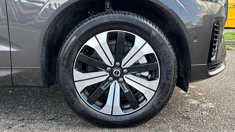 12.3" Progressive Driver Display, 360 degree surround view parking camera with side proximity sensors, 9" centre console touch screen, Adjustable steering wheel force, Apple carplay (wired), Bluetooth handsfree system, Drive mode settings, Driver alert control with lane keeping aid, Driver assistance (pilot assist and adaptive cruise control), Emergency services call system, Front and rear park assist, Google Automotive Services, Oncoming Lane Mitigation, PAS, Service interval indicator, Speed limiter, Speed sensitive steering, Trip computer, Volvo on call with App, Wireless/Inductive Mobile Phone Charging, 3.7 kW monophase on board charger, 7m 10amp charge cable with 3 pin plug and 6m 3 phase 16amp type 2/mode 3 charge cable, 8 speed automatic transmission with start/stop + manual change functions, Dynamic chassis, Electric rear axle drive, Recharging port located in nearside front wing, DAB Digital radio, Low speed exterior sound speaker, Premium Sound by Harman Kardon, dirac unison, dolby pro logic II surround sound, 13 speakers/600W output and fresh air subwoofer, Steering wheel remote infotainment controls, Adaptive brake lights with high level LED brake lights, Auto dimming interior + exterior mirrors, Automatic headlight levelling system, Automatic LED Headlights + Active high beam incorporating daytime running lights, Electric adjustable/heated/auto power folding door mirrors, Electric front+rear windows, Heated front windscreen, High gloss black door mirrors and window surround, High gloss black front and rear bumper decoratives, High gloss black mesh front grille with high gloss black surround, Home safe and approach lighting, Integrated roof rails in high gloss black, Power glass tilt and slide panoramic sunroof with sun curtain, Puddle lights, Rain sensor with automatic windscreen wiper activation, Rear side wing doors, Rear wiper, Roof antenna, Roof spoiler, Tinted windscreen, Visible VIN plate, 12V socket in front tunnel console and luggage compartment, 2 zone electronic climate control with Clean zone air quality system and pollen filter, 3 seat bench in 2nd row, A-pillar parking ticket holder, Air purifier particulate matter (PM) 2.5 filter, B Pillar ventilation, Bright metal luggage threshold, Centre console cupholders and storage, Charcoal floor mats, Front and rear courtesy lights, Front and rear door pocket illumination, Front cupholder illumination, Front footwell illumination, Front reading lights, Front seat cushion extensions, Glovebox compartment with illumination, Head restraints for all seats, Heated front seats, Heated steering wheel, Height/reach adjustable steering column, Illuminated luggage compartment, Illuminated vanity mirrors + ticket holder, ISOFIX attachment on outer rear seats, Load cover, Load protection net, Multi directional lumbar support, Power driver seat with memory + exterior mirrors memory, Power height adjustable passenger seat, Rear armrest with cupholder, Rear footwell and front and rear side step illumination, Rear seat concealed storage, Recharge aluminium tread plates, Single front passenger seat, Tailgate illumination and ambient door lighting, Underfloor stowage compartment, Versatile split folding rear seat - 60/40, 5 three point seatbelts, City safety with steering support with Pedestrian + cyclist + front collision warning with full auto brake and rear auto brake, Drivers knee airbag, Dual stage driver/passenger airbags, Electronic parking brake with auto hold, First aid kit, Front seats SIPS airbags, Hill descent control - Off-road drive mode, Hill start assist, IC (Inflatable Curtains) - Full Length, Passenger airbag cut-off device, Power child locks on rear doors, Road sign information display, Run off Road Mitigation, Run off Road Protection, Seatbelt reminder and pretensioners, SIPS (Side Impact Protection System), Slippery road and hazard light alert, Stability and Traction Control with Spin control, Engine Drag Control and Corner Traction Control, Tyre pressure monitoring system, Vehicle deceleration control with Anti-lock Brake System, Electronic Brake Distribution and Emergency Brake Assist, Warning triangle, WHIPS whiplash protection system - front, Anti-theft alarm including immobiliser/volume sensor + level sensor, Care key with user defined top speed, Key integrated remote control central locking + fuel flap with deadlocking system and auto open/close power windows, Keyless Drive (includes Keyless Entry and Keyless Start) with Handsfree Tailgate Opening/Closing, Locking wheel nuts, Private locking for tailgate, Tyre sealant kit + 12v compressor,