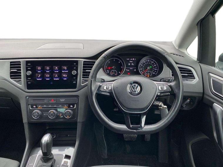 'Lights On' Reminder warning buzzer, ACC - Adaptive cruise control with front assist, forward collision warning, distance monitoring, city emergency brake and speed limiter, App-Connect, Bluetooth Telephone preparation, Brake pad wear indicator warning light, Drive mode selector, Driver alert system, Driver profile selection, Exterior temperature gauge, Misfuelling protection device, PAS - speed related, Push tank flap, Rev counter, Speedometer, electronic odometer and fuel gauge, Stop/start system, Trip and service interval display, Warning buzzer and light for front seatbelts unfastened, We Connect Go Dongle, White instrument cluster lighting, Battery regeneration during braking, Diesel particulate filter, XDS electronic differential lock, Composition media system, DAB Digital radio, Dynamic navigation based on TMC+, Personalisation 1.1 profile for media, SD card slot, SMS functionality - read, compose and send SMS messages using touch-screen display, USB and auxiliary socket, Auto dimming rear view mirror, Automatic coming/leaving home lighting function, Black front air intake and radiator grilles with chrome inserts, Body colour bumpers, Body colour door handles, Body colour door mirrors with integral indicators, Dusk sensor + auto driving lights, Electric front windows, Electric rear windows, Electrically adjustable and heated door mirrors, Front fog lights with static cornering function, Galvanised body, Heat insulated tinted glass 65% light absorbing from B pillar back, Heated rear windscreen, Integral rear window aerial, LED 3rd brake lamp, LED daytime running lights, LED rear lights, Rain sensor, Range adjustable headlights, Rear diffuser, Rear roof spoiler, Rear window antenna, Rear windscreen washer and wiper with interval delay, Twin exhaust tailpipe, Windscreen wipers/ intermittent wipe + 4 position delay, 12V socket in luggage compartment, 2 front reading lights, 3 rear headrests, 3 spoke steering wheel, 60/40 split folding rear seat, Auto fold down lever in rear seat backrest, Centre console storage box, Cooled glovebox, Courtesy light delay, Dashboard storage compartments, Driver and front passenger under seat drawer, Driver/front passenger seat height adjustment, Dust/pollen filter, Folding tables on front seatbacks, Front centre armrest with storage box and two rear air vents, Front seat back storage pockets, Grab handles x 2 with integrated coat hooks, Height/reach adjust steering wheel, Interior lighting with switch off delay and contact switches on all doors, Isofix preparation for 2 rear child seats, Load lashing points x 4 in luggage compartment, Load through provision, Luggage compartment cover, Luggage compartment lighting, Overhead storage box, Pearl grey headlining, Rear centre armrest with 2 cup holders, forms a table when folded down, Rear reading lights x 2, Storage box in luggage compartment, Storage boxes under front seats, Storage compartments in doors, Sunvisors with illuminated vanity mirrors, Variable boot floor, height adjustable and removable, White adjustable panel illumination, Mirror pack - Golf, 3 point height adj front seatbelts + pretensioners, 3 rear 3 point seatbelts, ABS, Automatic post collision braking, Child locks on rear doors, Door open warning reflectors, Driver/Front Passenger airbags, Driver/Passenger whiplash optimised head restraints, Drivers knee airbag, Electronic parking brake with auto hold, Electronic tyre pressure monitoring, ESP with EDL + ASR, Front and rear curtain airbags, Front passenger airbag deactivation, Front side airbags, Hydraulic Brake Assist (HBA), Pre crash system, Predictive pedestrian protection, Ventilated front disc brakes, Alarm with interior protection, Electronic engine immobiliser, Remote central locking with 2 remote folding keys, Brushed dark silver decorative inserts in dash and door panels, Chrome-plated light switch surround, Decor strip on dashboard and door side trim, Polar night black centre console, Steel space saver spare wheel,
