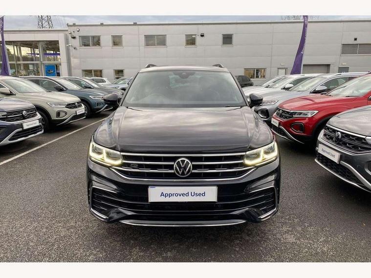 Adaptive cruise control ACC stop and go including speed limiter, App-Connect incl. App-Connect Wireless for Apple CarPlay and Android Auto, Bluetooth phone integration system, Digital Cockpit Pro - Active info display, Distance control assist, Driver alert system, Driver profile selection, Dynamic road sign display, eCall emergency call system, Electromechanical speed sensitive power steering, Engine start/stop button, Lane keeping system Lane Assist, Lights on warning, Multifunction front facing camera, Outside temperature display, Premium multifunction display with multi colour display, Remote control boot opening, Rev counter, Revision / skills operating concept travel assistant, Service interval indicator, Speed limit display, Start/stop system with regenerative braking, Trip computer, Warning sound and light for doors and tailgate open, Battery regeneration during braking, Charging cable Mode 3 Type 2 / 3 (16A), XDS electronic differential lock for improved traction and handling, 2 USB-C ports in the front, 1 USB-C charging socket on the center console in the rear, Diversity antenna for FM reception, Radio, SD card slot, Simultaneous pairing of 2 compatible mobile devices, SMS functionality - read, compose and send SMS messages using touch-screen display, Title and cover art display, Auto dimming interior rear view mirror, Automatic headlight control system, Black roof rails, Body colour door handles, Body coloured bumpers in R Line style, Body coloured door mirrors with integrated indicators, Chrome moldings on the side windows, Coming/leaving home lighting function, Dynamic headlight range control, Front and rear electric windows, Heated rear window, High level 3rd brake light, Laminated safety glass windshield, heat and sound insulating, LED rear number plate lights, License plate carrier in front and rear, Privacy glass for rear side windows and rear window, R Line body kit, R Line side sills, Rain sensor windscreen wipers, Rear exhaust tailpipe, Rear fog lamp, Rear spoiler in R style, Rear windscreen washer and wiper with interval delay, Side and rear windows in heat insulating glass, Third brake light, Trailer Stability Programme, Unique R Line badging, Windscreen wipers/ intermittent wipe + 4 position delay, 12V outlet in center console rear and in luggage compartment, 2 cup holders in front, 2 LED front reading lights, 2 LED rear reading lights, 3 rear headrests, 4 load lashing points, 40:20:40 split folding rear seats, Air Care Climatronic 3 zone automatic climate control with enhanced air filter and controls in the rear, Backrest release for left front seat, Black headlining, Brushed stainless steel pedals and footrest, Carpet mats in front and rear with decorative stitching in Gray, Climate control unit rear with touch function, Door and side trim panel in foam film, insert in leatherette, Front centre armrest, Front footwell illumination, Front seats head restraints (x-adjustment), Height adjustable front seats, Height/reach adjust steering wheel, Instrument lighting white adjustable panel illumination, Interior light with delay, Isofix Preparation 2 Rear child seats, Leather gear knob, Lockable cooled glovebox, Luggage compartment lighting, Luggage net, Rear bench seat asymetrically split folding, longitudinally movable and folding with load-through hatch and center armrest, Remote unlocking for rear seat backrest, Removable luggage cover, Safety optimised front head restraints, Sliding/reclining rear seats, Standard rear seat release, Storage compartment in driver's door, Storage compartment in passenger's door, Storage compartment in rear doors, Storage compartments in luggage area left and right, Storage tray on dashboard, Sun visors with illuminated vanity mirrors, Top front comfort seats, Variable boot floor, height adjustable and removable, Ambience pack - Tiguan R Line, Driver assistance pack plus - Tiguan DSG, 3 point seat belt for centre rear seats, 3 point seat belts with seat belt pretensioners for the outer rear seats, Active bonnet, Curtain airbags for front and rear passengers, Driver/Front Passenger airbags, Drivers knee airbag, Electronic parking brake with auto hold, Electronic Stability Control with driver steering recommendation, ABS, ASR, EDL, EDTC and trailer stabilization, Front assist with autonomous emergency braking (for Adaptive Cruise Control ACC up to 130 mph), Front disc brakes, Front passenger airbag deactivation, Front side airbags, Height adjustable front 3 point seatbelts + pretensioners, Hill hold control, Pedestrian monitoring system, Power assisted brakes, Proactive passenger protection system in combination with front assist, Rear disc brakes, Rigid safety cell with front and rear crumple zones, Two tone horn, Tyre pressure loss indicator, Warning sound and light for front seat belts if unfastened, Anti theft alarm system with interior monitoring, backup horn and towing protection, Anti theft wheel bolts, Electronic engine immobiliser, 20" Misano black with diamond turned surface alloy wheels with Airstop tyres, Tool kit,