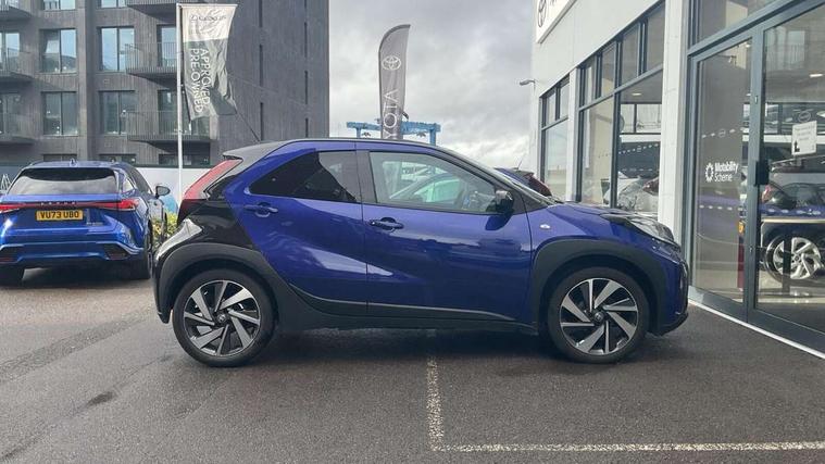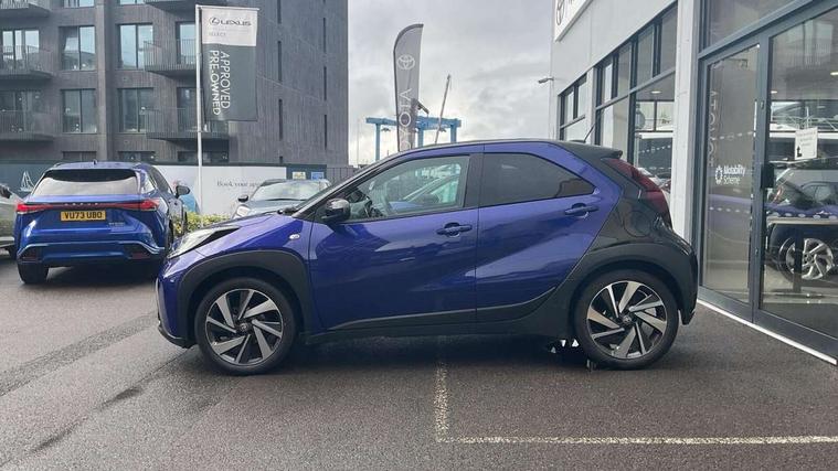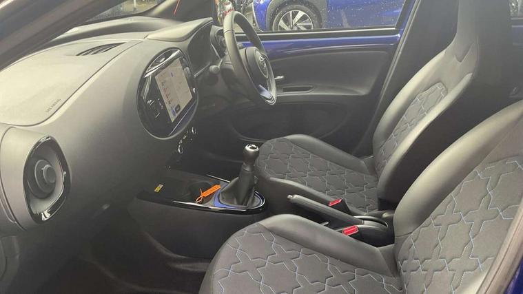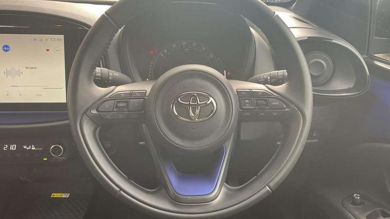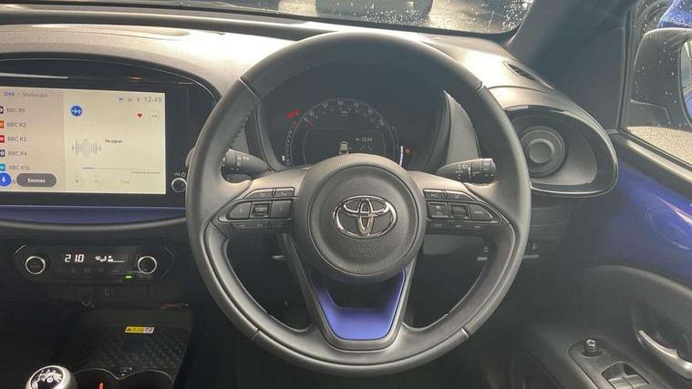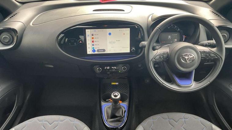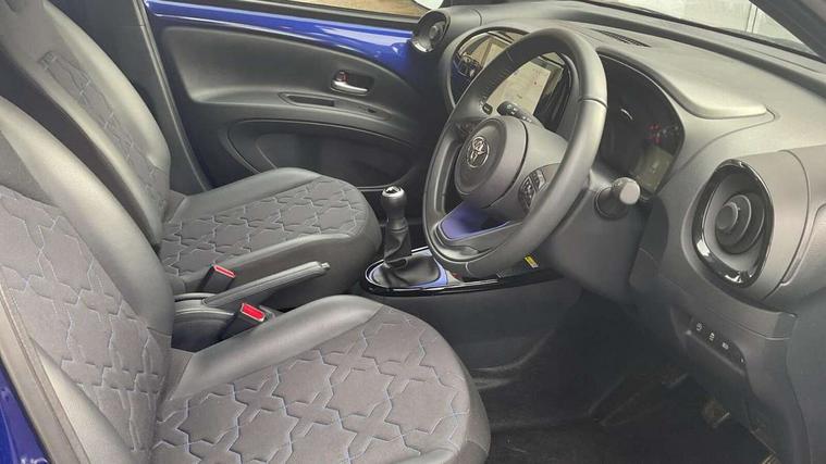 4.2" TFT colour screen, Adjustable speed limiter, Analogue speedometer, Bluetooth connectivity, Digital tachograph, Driver attention alert system, eCall emergency call system, Electric power steering, Front and rear parking sensors with auto brake, Intersection turn assist, Key reminder warning, Noise reduction kit, Pre collision system with emergency steering assist, Remote boot door release on key, Reversing camera with static guide lines, Smart entry and push button start, Smart phone integration with Apple car play/Android Auto, Speed limit display, Start and stop, Wireless charger, Vehicle Stability Control (VSC), 10.5" HD multimedia display touch screen with Toyota smart connect, 4 speakers, DAB digital audio broadcast, USB connector, Auto headlights, Auto wipers, Automatic headlights cut-off, Automatic high beam On/Off switch, Bicycle towing hook, Black contrast roof, Black fog light surrounds, Black side protection mouldings, Black wheel arch mouldings, Body colour door handles, Body coloured front bumper, Boot door scuff plate, Eclipse black rear bumper, Electric heated door mirrors, Follow me home headlights, Front and rear underruns in silver, Front fog lights, Front power windows, Gloss black door mirrors, Gloss black upper front grille, Headlight cut-off reminder, LED daytime running lights guide, LED front light guide, LED High mounted stop lamp, LED projector headlights, Manual day/night rear view mirror, Manual headlight levelling, Pagoda roof, Power adjustable door mirrors, Power back door, Privacy glass, Rain sensor, Rear combination lights LED bulb type, Rear side wing doors, Rear windscreen defogger, Rear windscreen wiper, Remote hazard lights system, Short antenna, Variable intermittent windscreen wipers, 12v power outlet - front, 2 seat bench in 2nd row, 3 spoke leather steering wheel, 50/50 split folding rear seat, Adhesive roof headlining, Adjustable speed limiter switch on steering wheel, Audio and telephone switches on steering wheel, Auto air conditioning, Black roof lining, Body colour satin anodised insert on steering wheel, Boot light, Centre room light, Chrome interior door handles, Chrome surround on air conditioning buttons, Clean air filter, Console box storage, Floor mats, Front and rear cup holders, Front head rest deco art, Front head restraints, Height adjustable driver seat, Intelligent adaptive cruise control switch on steering wheel, ISOFIX child restraint system on rear seats, Lane departure alert switch on steering wheel, Leather gearshift knob, Light blue ambient lighting in centre console, Manual tilt steering wheel, Manually reclining and sliding driver seat, Manually reclining and sliding front passenger seat, Multimedia switches on steering wheel, Partial synthetic leather upholstery, Pollen filter, Rear door pockets, Rear head restraints, Satin silver insert on gear shift knob, Single compartment glovebox with lights, Single front passenger seat, Soft tonneau cover, Sun visors with mirror on driver and passenger side, Voice recognition switch on steering wheel, Toyota safety sense pack - Aygo X, Anti lock braking system + Electronic brake force distribution, Child safety door lock, Emergency brake light signal (EBS), Hill start assist control (HAC), Passenger airbag on/off switch, Seat belt reminder for front and rear seats, Supplement restraints system (SRS) - 6 airbags, Traction control, Tyre pressure warning system, Immobiliser, Remote power door locks, Black wheel centre caps, Tyre repair kit,