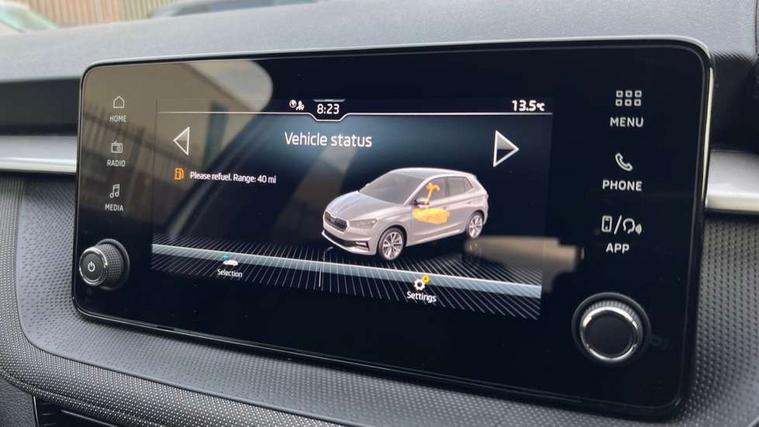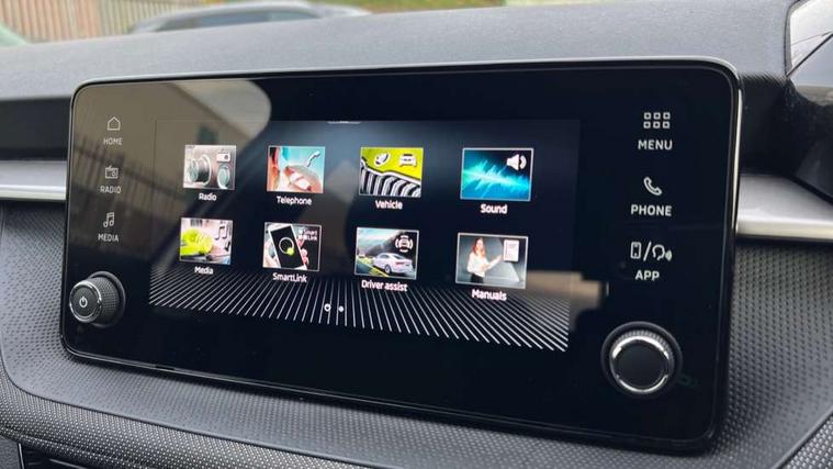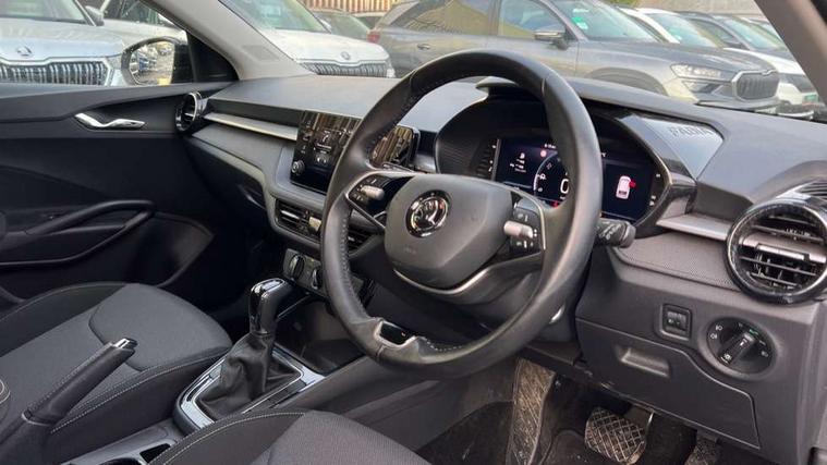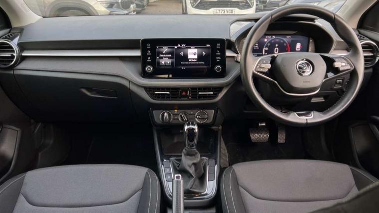 Advanced driver attention and drowsiness monitor, Bluetooth connection, Electromechanical power steering, Exterior temperature gauge, Service interval indicator, Traffic sign recognition, Virtual cockpit with 10.25" colour display, Wireless SmartLink for Apple CarPlay and Android Auto, 6 Speakers (4 in front and 2 in rear), Auxiliary socket for external MP3 player, DAB digital radio reception, Body coloured bumpers, Dimming rear view mirror with black frame, Door mirror integrated indicators, Front and rear electric windows, Front window wiper intermittent control, Headlight range control - Automatic, Ice scraper in fuel cap, LED daytime running lights with coming and leaving home feature, LED rear lights, Privacy glass, Rear LED fog light, Rear side wing doors, Rear window wiper with washing nozzles, Roof mounted spoiler, SKODA tailgate lettering in chrome, Third brake light, 2 reading lights in front and 2 reading lights in rear, 3 rear headrests, Backrest split and folding, Central console with removable cup holder and storage box, Chrome handbrake release button, Fabric upholstery, Front centre armrest, Gearshift knob/handle in leather, Grain satin black interior door handles, Hand brake lever handle in leather, Height adjustable front headrests, Height adjustable front seats, Height adjustable steering wheel, ISOFIX and TopTether anchorage points to the outer rear seats, ISOFIX and TopTether on the front passenger seat, Luggage compartment lighting, Manually adjustable lumbar support in front seats, Pollen filter, Rear seat bench unsplit, Single front passenger seat, Storm grey headlining, Sun visors with mirror and airbag label on passenger side, Textile floor mats, Ticket holder, Umbrella in drivers door, 3-point height adjustable front seats belts with pretensioner and force limiter, Automatic warning lights in case of crash, Driver and passengers airbag with switch off function, e-Call+, ESC including ABS, MSR, ASR, EDS, HBA and XDS, Front and rear seat belt warning, FRONT ASSIST (AEB City and AEB Inter Urban), Front side airbags, Head airbags, Hill hold control, One tone horn, Pedestrian protection, Three rear 3-points safety seat belts with pretensioner and force limiter including stop function for outer rear seat belts, Tyre pressure monitoring system, Anti-theft alarm system including immobiliser, interior monitoring, backup horn, and towing protection, Central locking with radio remote control, interior controls, SAFE function and 2 foldable keys, Colour Edition air vents, Grain satin black central console cover, Metallic grey upper decorative trim, Satin black door and side trim panel in front, Textile Kota grey lower decorative inserts, Anti-theft wheel bolts protection, Super-low rolling resistance tyres,