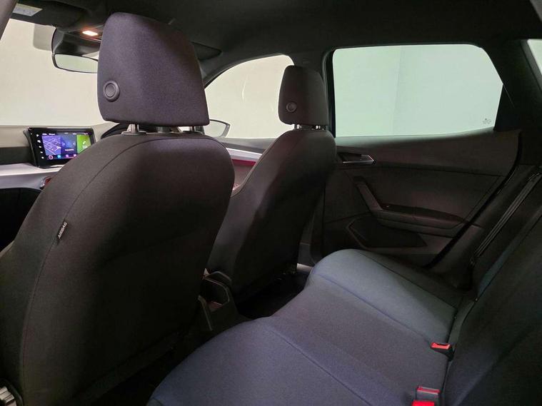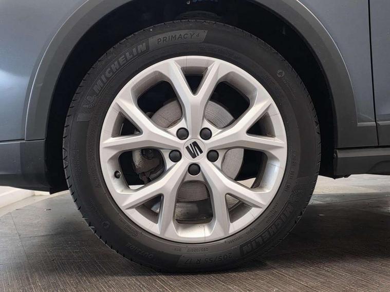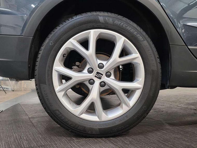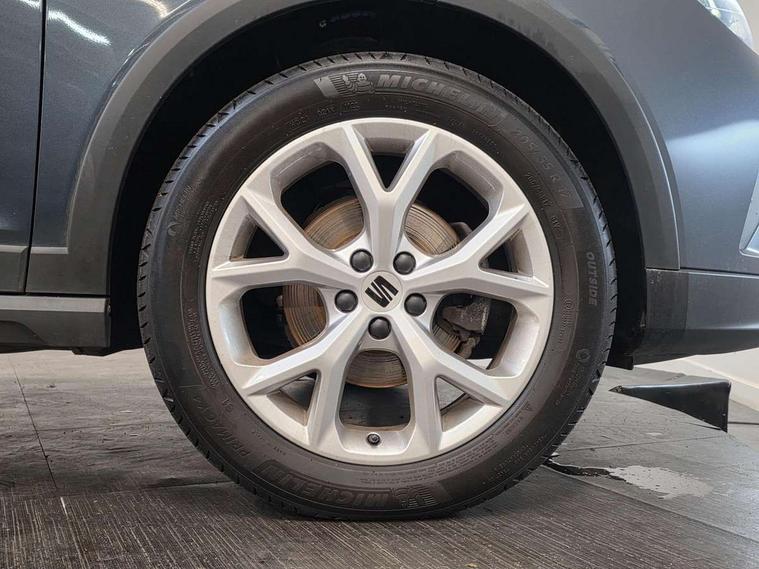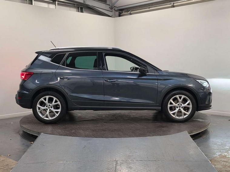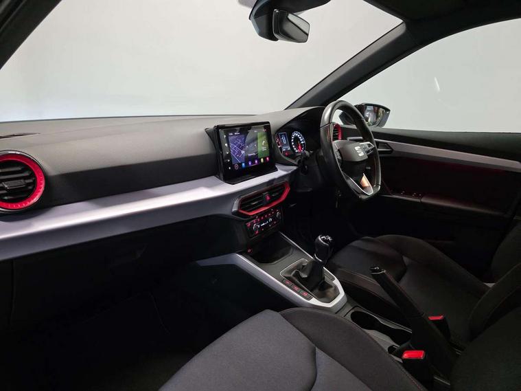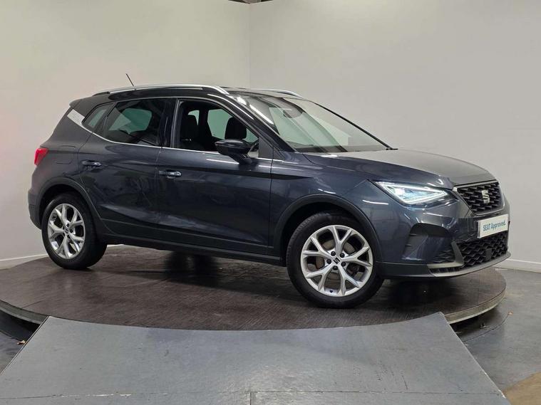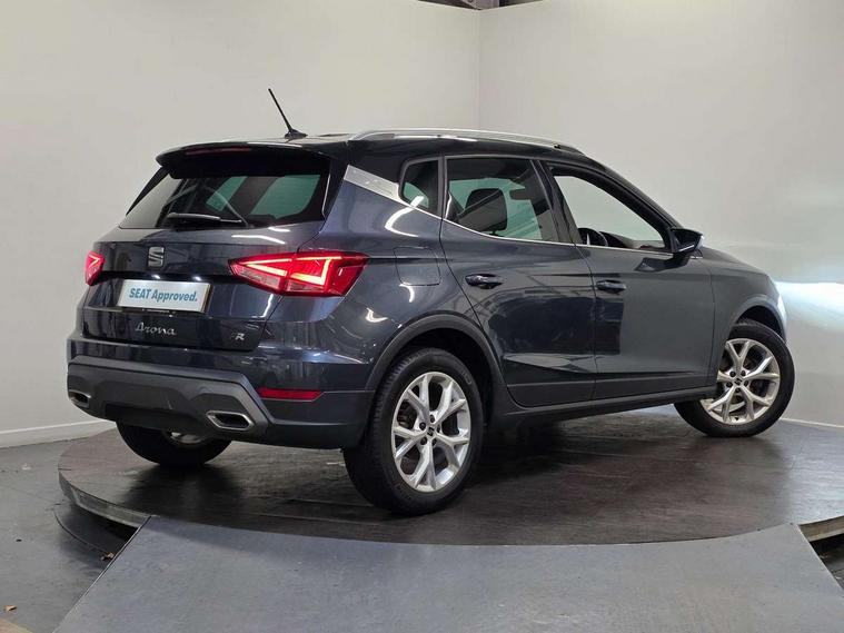 'Lights On' Reminder warning buzzer, 8" Digital cockpit, Digital clock, E-call, Electric speed sensitive power steering, Full Link Smartphone Integration with Mirror Link, Apple Car Play, Google Android Auto with USB Type C cable for Apple and Android compatibility, Lane keeping system, Low fuel warning light, Outside temperature display, Rear parking sensor, RPM counter, Seat connect with safety, service, remote and online, SEAT Drive profile - Four different models normal-sport-eco-individual, steering response, throttle response, Trip computer, Bluetooth interface for hands free and audio streaming, DAB digital radio and AM/FM radio, Steering wheel mounted audio controls, Anti theft roof antenna, Auto dimming interior rear view mirror, Automatic activation of hazard warning lights, Body coloured bumpers, Body coloured door handle inserts, Chrome roof rails and window surrounds, Dark tinted rear windows, Electric front/rear windows, Electrically adjustable, heated and folding door mirrors, Front fog lights with cornering function and rear fog light, FULL LED automatic headlights with dynamic headlight range control, coming and leaving home, LED daytime running lights, LED rear tail lights and licence plate lights, Protective side mouldings, Rain sensing wipers, Rear side wing doors, Rear spoiler, Rear window wash/wipe, Roof colour door mirrors, Third brake light, Twin exhaust pipe styling hidden exhaust pipe, Visible VIN plate, Windshield wiper with intermittent control and potentiometer, 2 cupholders, 3 seat bench in 2nd row, 60/40 split folding rear seat, Aircare filter, Black interior roof, Cloth upholstery, Double boot floor, Driver sunvisor with covered mirror + card holder, Dual zone climate control, Front courtesy light with 2x front and 2x rear reading lights, Front sport seats, Gear shift indicator, Height adjustable front seats, Height/reach adjustable steering column, Illuminated boot, Instrument lighting with brightness control, Interior ambient lighting, Interior light in footwell, central console and door panel, ISOFIX points in outer rear seats with top tether anchorage points, Passenger sunvisor with vanity mirror, Perforated flat bottomed leather steering wheel/gear knob/handbrake with red stitching and FR logo, Single front passenger seat, Two front and three rear height adjustable headrests, Connectivity pack plus - Arona, Interior chrome pack - Arona, 3 point seatbelts on all rear seats, ABS, Active front headrests, Child locks on rear doors, Driver and front passenger airbags with front passenger airbag de activation, front side and curtain airbags, Electronic stability control, Emergency Brake Assist (EBA) and front assist, Front and rear seatbelt reminder, Hill hold control, Multi-Collision braking, Tiredness recognition system, Traction control, Tyre pressure monitoring system, Alarm with back-up horn, Electronic engine immobiliser, Locking wheel bolts, Remote central locking + deadlocks, Tow away protection, Titan black dashboard, 17" Dynamic alloy wheels,