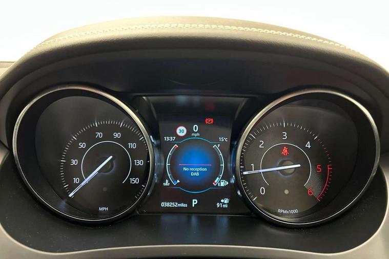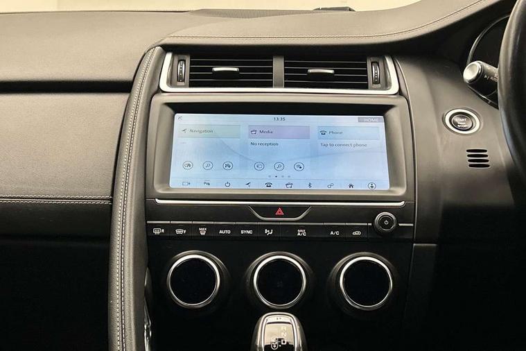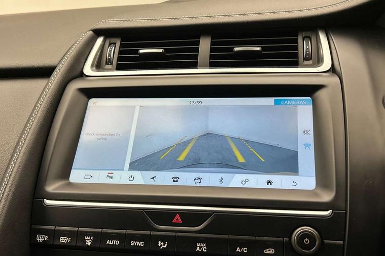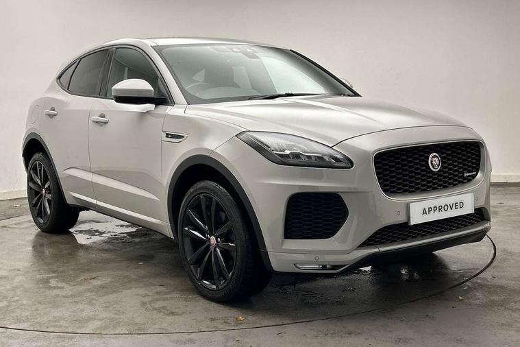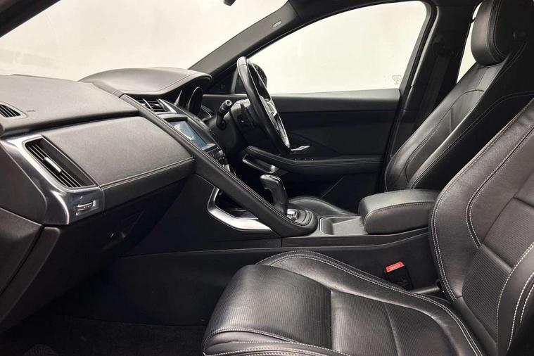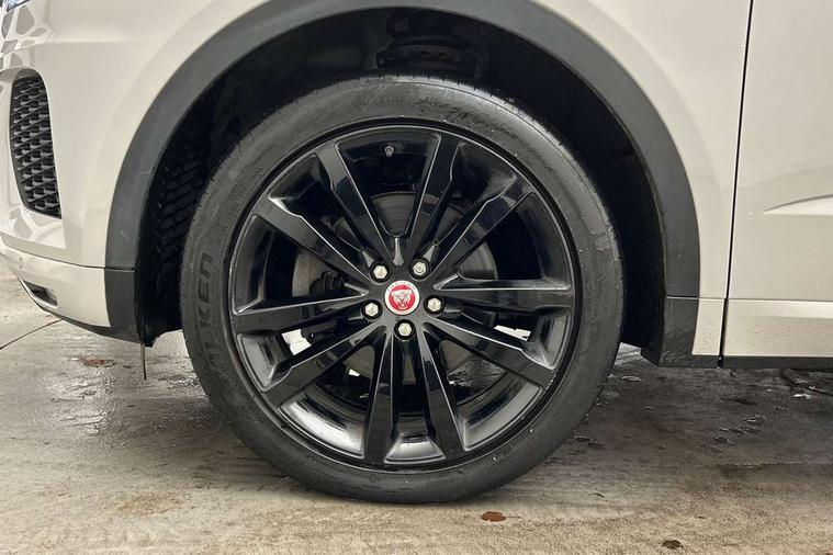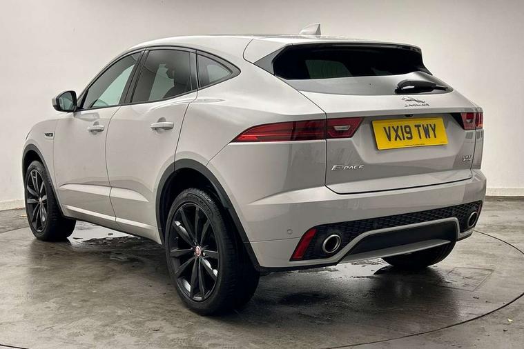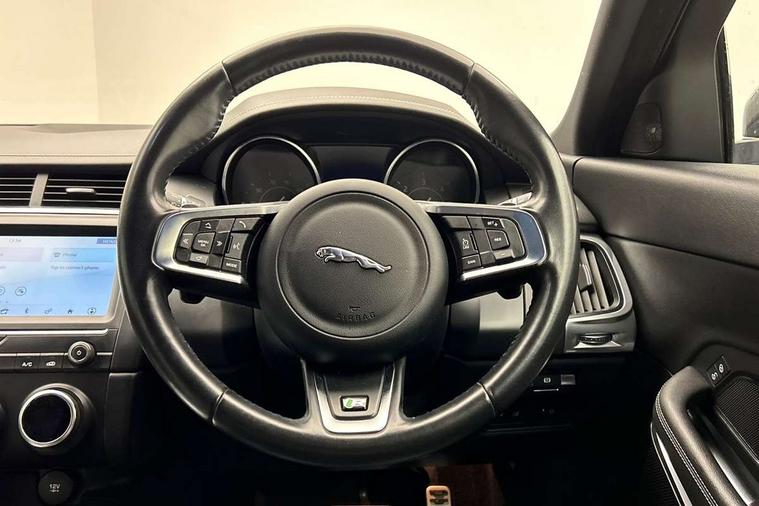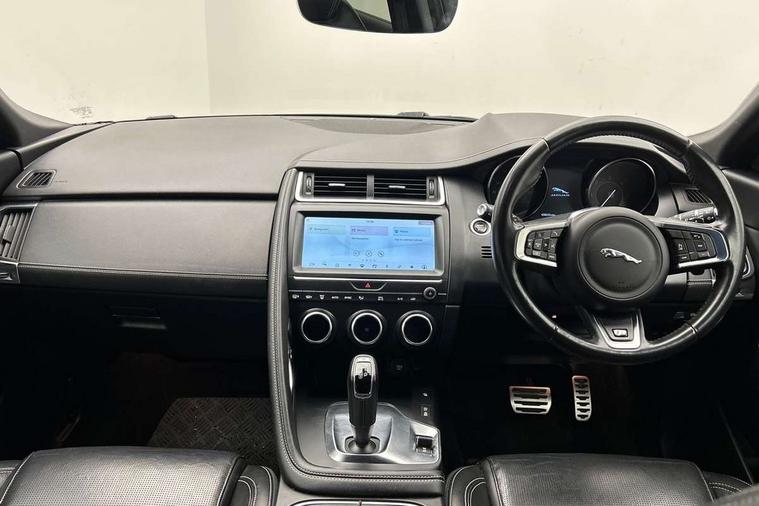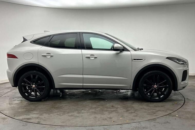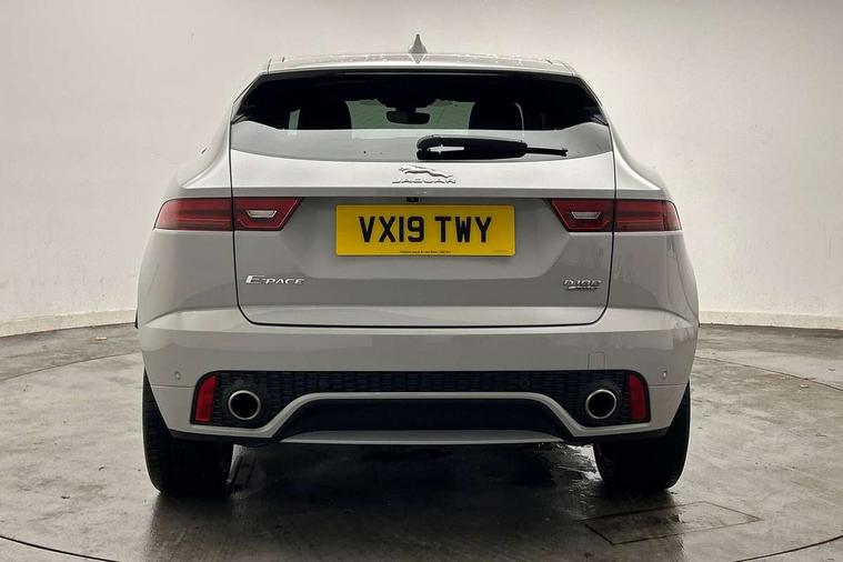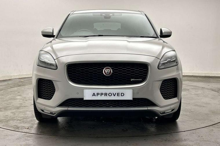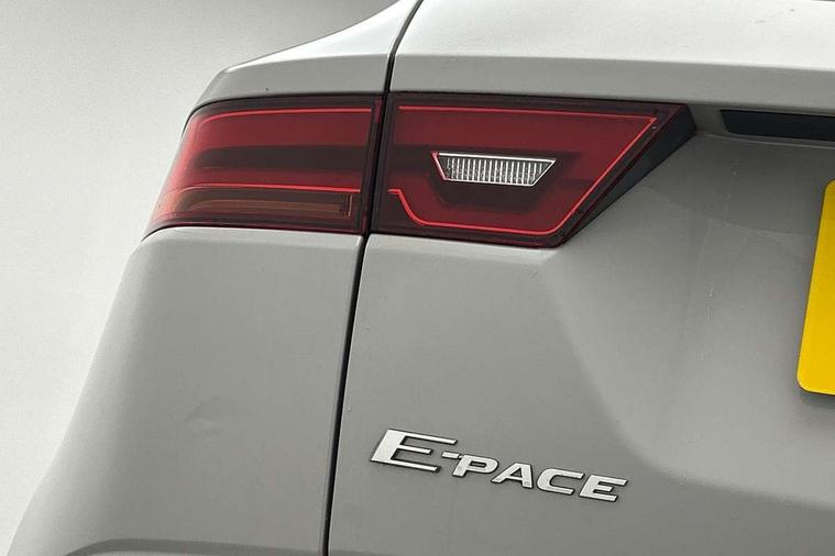 Driver condition monitor, Eco driving style assistant, Electric power assisted steering, InControl remote, InControl Touch navigation pro, Lane keep assist, Misfuelling protection device, Outside temperature gauge, Push button starter, Speed proportional steering, Start up sequence with movement in dials and lighting, Traffic sign recognition with adaptive speed limiter, Trip computer, Voice control system, Diesel particulate filter, Efficient Driveline, Passive suspension, AM/FM DVD MP3 radio, Bluetooth connectivity including audio streaming, DAB Digital radio, Dynamic volume control, 3 flash lane change indicators, Approach Illumination, Auto dimming rear view mirror, Automatic headlights, Body colour side cladding, Electric front/rear windows with one touch/auto up/down, Front fog lights, Heated front windscreen, Heated rear window with timer, Heated washer jets, Jaguar script and leaper, R Dynamic badge, R Dynamic body colour bumpers, Rain sensor windscreen wipers, Rear fog lights, Tailgate/boot lid spoiler, Twin tailpipes with finishers, 12V power socket in rear, 2nd row 60/40 split/fold, 2nd row air vents, 3 seat bench in 2nd row, 4 Load area hooks, Black gearshift paddles, Bright metal pedals, Centre armrest console, Centre headrest in row 2, Elasticated loadspace side strap, ISOFIX on outer rear seats, JaguarDrive selector, LED lighting in overhead console, Loadspace cover, Loadspace lamp, Passive front headrests, R branded leather steering wheel, Storage net in luggage compartment, Sunvisors with illuminated vanity mirrors, Tie down hooks in luggage area, Twin front cupholders, Two zone climate control, Connect pro pack - E-Pace, Smartphone pack - E-Pace, 3x3 point rear seatbelts, ABS, All surface progress control (ASPC), Customer configurable autolock, DSC - Dynamic Stability Control, Electronic brake force distribution, Electronic parking brake, Emergency brake assist, Front airbags with passenger seat occupant detector, Front and rear curtain airbags, Front and rear seatbelt reminder, Front side airbags, Hill start assist, Low friction launch, Power child locks, Torque vectoring brake, Tyre pressure monitoring system, Intrusion sensor and alarm, Locking wheel nuts,