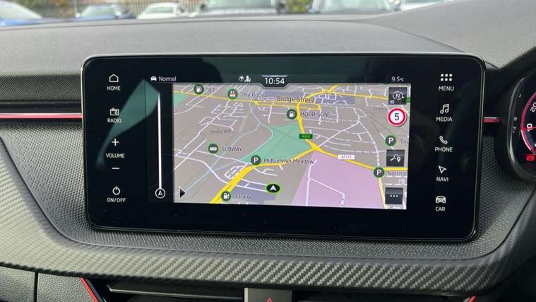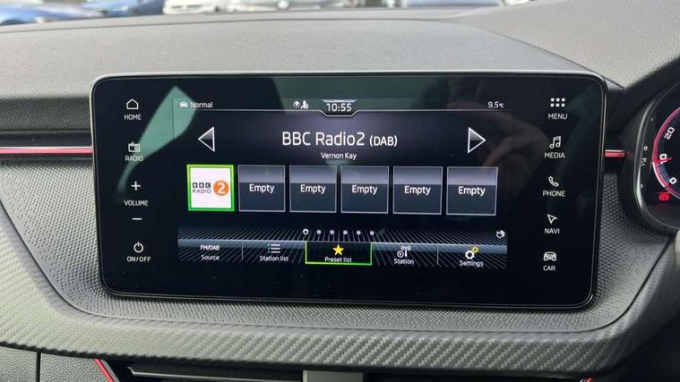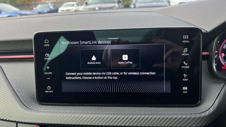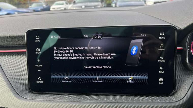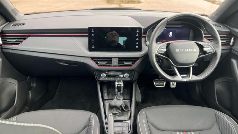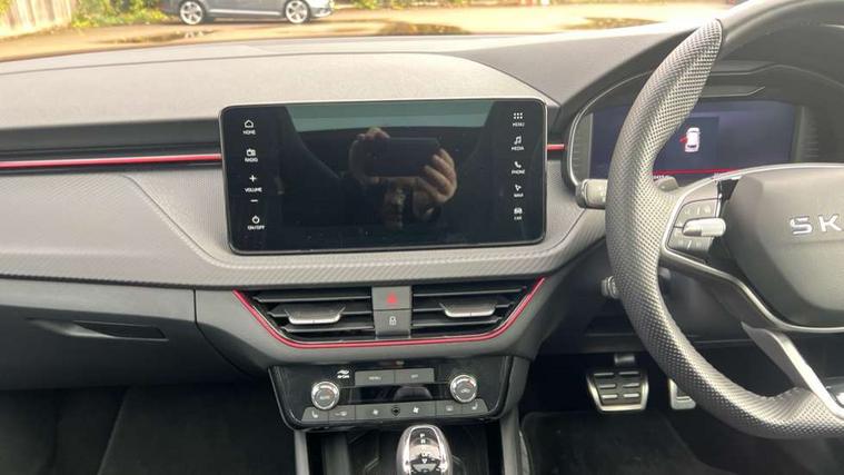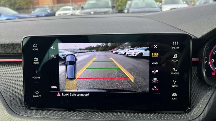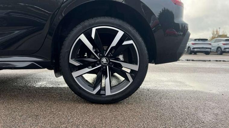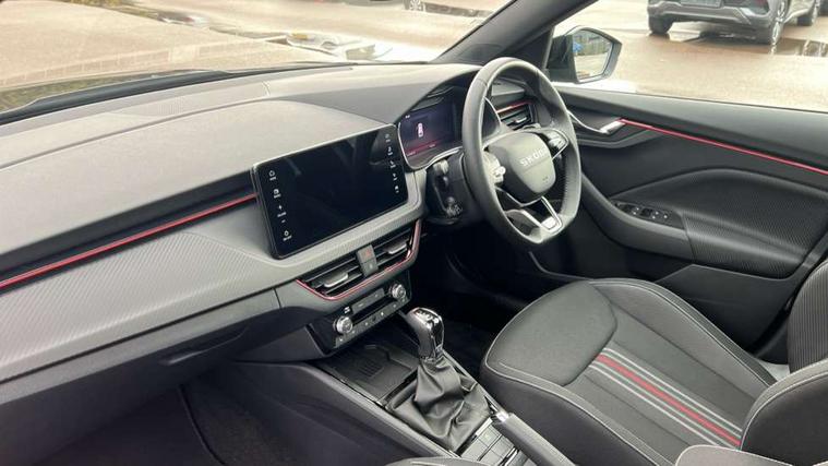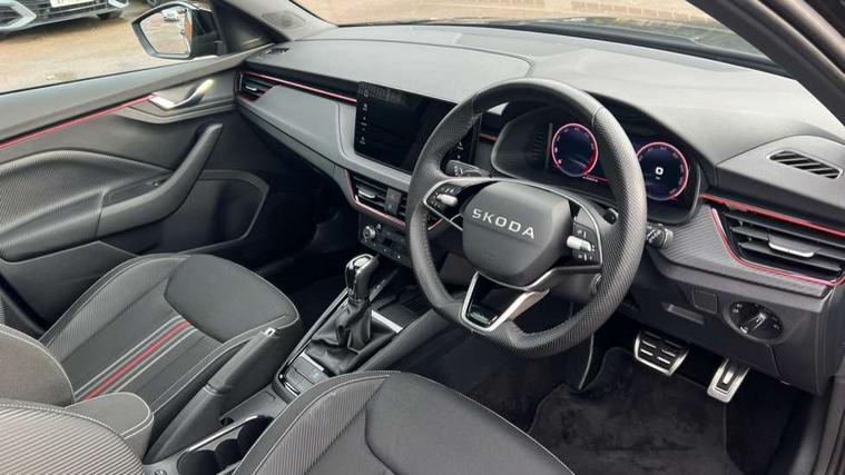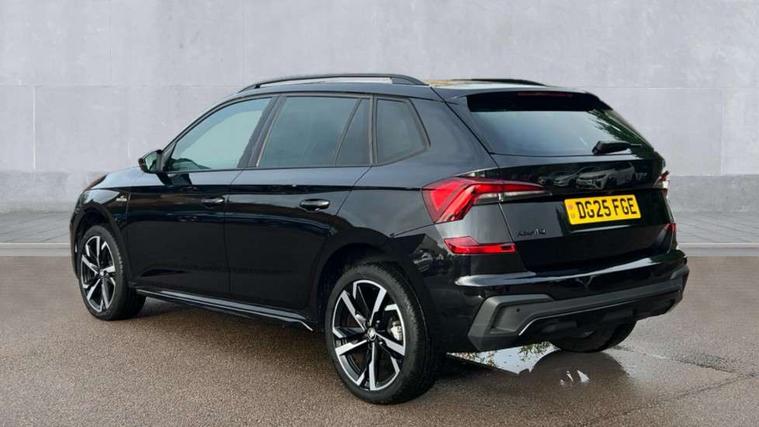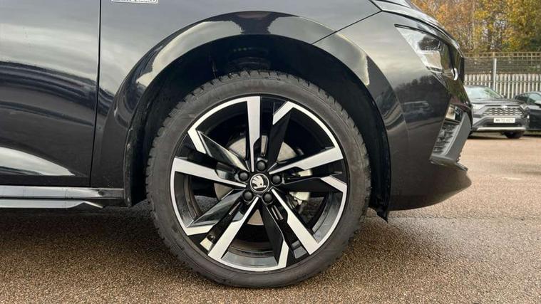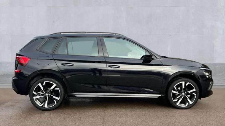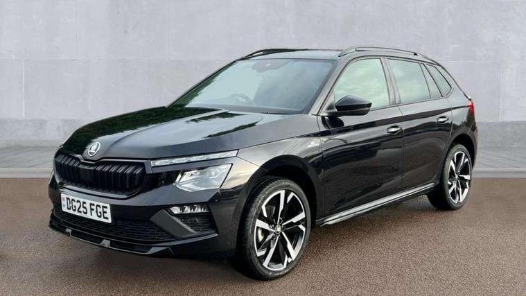 Advanced driver attention and drowsiness monitor, Bluetooth system, E-call, Front assist system, PAS, Rear parking sensors, Rear view camera, Service indicator, Speed limiter, Traffic sign recognition, Virtual cockpit with 10.25" display, Voice control system, Wireless smartlink, 4 USB C ports, 8 Speakers, 9.2" Skoda navigation display, DAB Digital radio, Auto dimming rear view mirror, Automatic headlight control with coming home and leaving home feature, Black door mirrors, Black radiator grille, Black rear diffuser, Black roof spoiler, Body colour bumpers, Body colour door handles, Boot lettering in black, Extended tailgate glass, Fixed panoramic sunroof with black roof rails, Front and rear electric windows, Heated rear window, LED daytime running lights, LED high beam, LED low beam, LED third brake light, Light sensors, Monte carlo plaque, Privacy glass, Rear side wing doors, Rear wiper, Ticket holder inside windscreen, 12V socket in luggage compartment, 3 seat bench in 2nd row, Aluminium pedals, Ambient lighting in white/red, Art leather carbon decor inserts, Art leather carbon door inserts, Black roof lining, Cargo elements, Chrome inner door handles, Driver and passenger sun visors with vanity mirror, Dual zone climate control, Front and rear roof lights, Front centre armrest, Front head restraints, Glove compartment with illumination, Height adjustable driver seat, Height adjustable front passenger seat, Ice scraper, Inner circulation control with pollen filter, ISOFIX on front passenger seat, Isofix preparation for back seats, Leather gearknob and handbrake lever, Manual lumbar support for front seats, Monte Carlo cloth upholstery, Net package and top tether hooks in boot space, Net under rear shelf, Pocket on the back of both front seats include mobile phone pockets, Rake/reach adjustable steering wheel, Reading lights, Rear centre armrests, Red hotstamping, Single front passenger seat, Sports seats, Textile floor mats, Third rear headrest, Top tether for front passenger seat, Umbrella in driver's door, Light and view plus package - Kamiq, 3x3 point rear seatbelts, Airbags - driver and front passenger, Disc brakes, ESP, Extended and predictive pedestrian/cyclist protection, Front passenger airbag deactivation switch, Front side airbags with curtain airbags, Hill hold control, Manual leather parking brake, Manual rear child locks, One tone horn, Seatbelt reminder for driver an co-driver, Traction control, Tyre pressure monitor, Anti-theft alarm system with interior monitoring, backup horn, towing protection and remote central locking with SAFE system, Anti-theft wheel bolts, Electronic engine immobilizer, 18" Ursa black diamond cut alloy wheels,