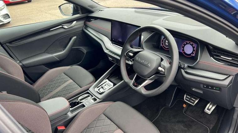 1x USB Typc C port in rear view mirror, 4x USB Type C ports - 2x in front centre console and 2x in rear (45W), Drive mode selection, Driver fatigue sensor, eCall emergency system, Electrically operated boot with virtual pedal, Front assist system, Progressive dynamic steering, Traffic sign recognition, Turn Assist, Virtual Cockpit - 10.25" digital display, Voice control system, Wireless charging (15W) with cooling function, Wireless SmartLink for Apple CarPlay and Android Auto, Electronically controlled limited slip differential, vRS suspension, 13" touchscreen display with navigation, DAB Digital radio, Aero front windscreen wipers with intermittent function, Auto dimming rear view mirror, Black sport exhaust pipes, Body colour bumpers, Body colour door handles, Electric front and rear windows, Exterior gloss black sports styling including front grille, window surrounds, door mirrors and badging, Gloss black diffuser, Gloss black spoiler, Heated rear windscreen, High beam control, High level third brake light, Ice scraper in fuel cap, LED daytime running lights, Logo projection in front doors, Rain and light sensors, Rear fog light on one side, Rear privacy glass, Rear side wing doors, Unique vRS bumpers and exterior styling, 12 volt socket in boot, 3 rear headrests, 3 seat bench in 2nd row, 4 foldable roof handles, Aluminium pedals, Front head restraints, Front sport seats, Heated front seats, Illuminated glovebox, Interior door handles in dark chrome, Jumbo Box storage, Luggage compartment lighting x2 lights, Mechanical rear seat release from boot, Parcel shelf - folding, Single front passenger seat, Steering wheel in black leather with black stitching, Storage compartments in left and right of boot, Sun visors with mirrors, Sunglasses storage, Ticket holder, Umbrella in door panel, Unsplit rear bench seat, split folding backrest with centre armrest with cupholder, Waste bin in door panel, Comfort package - Octavia, Family package - Octavia, Light and view package plus - Octavia, vRS Design Selection pack - Octavia, 3x3 point rear seat belts, Alarm with interior monitoring, tilt sensor and back up horn, Curtain airbags and front side airbags, Driver and front passenger airbags, Drivers knee airbag, Electronic parking brake, ESC including ABS, EBV, MSR, ASR, EDS, HBA, DSR, Front central airbag, Hill hold assist, ISOFIX on front passenger seat and outer rear seats, Passenger airbag deactivate switch, Red brake calipers, Three point seat belts in front and rear, Two tone horn, Tyre pressure monitor, Visual and acoustic seat belt reminder, Warning reflectors in front door, Anti-theft wheel bolts, Keyless start/stop, Remote central locking, Gloss black air vent surrounds, 19" Elias anthracite alloy wheels,