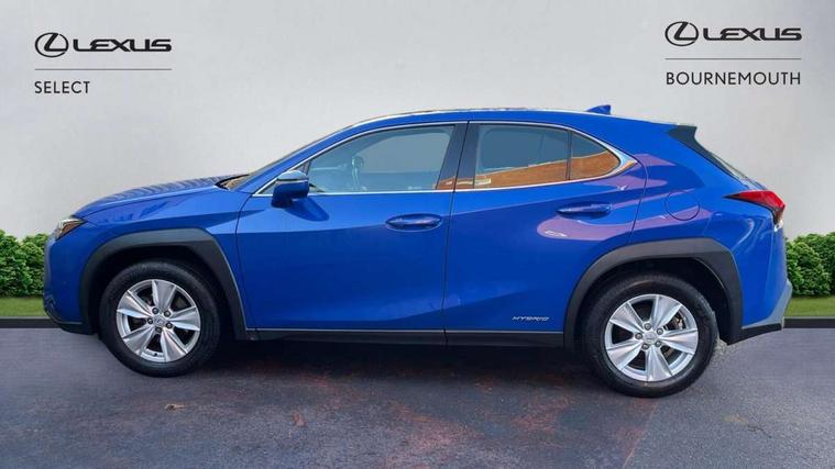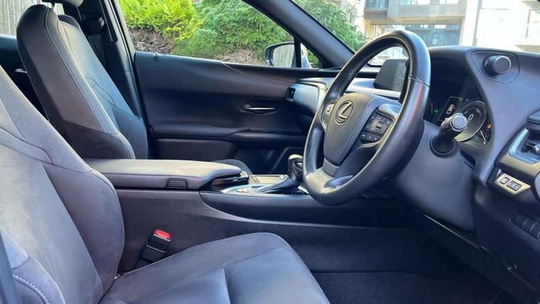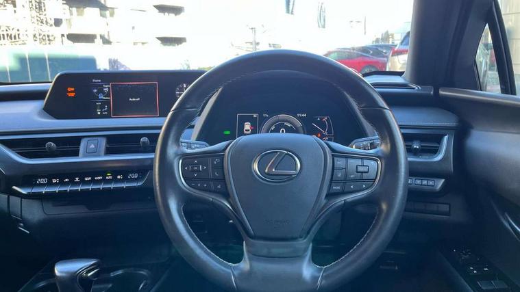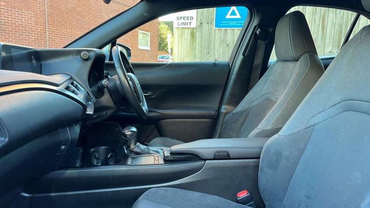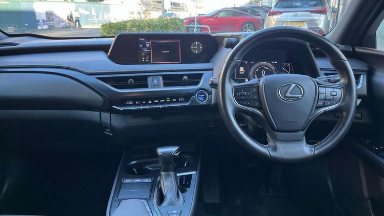 4 driving modes EV/Eco/Normal/Sport, 7" Lexus media display, 7" TFT instrument cluster, Analogue clock with GPS function, Apple car play/Android Auto, Compatible mobile phone bluetooth with audio streaming, E-call, Electric power steering (EPS) with speed sensitive features, Lane change flasher function, Lexus link connected services, Lexus safety systems + includes dynamic radar cruise control, pre collision system day and night, lane tracing assist, road sign assist, Push button start, Remote touch interface, Trip computer, Vehicle Dynamics Integrated Management (VDIM), Vehicle Stability Control (VSC), 2 front USB and 2 rear USB charging points, 6 speakers, AM/FM and DAB radio, AUX socket with VTR compatibility, CD player, Acoustic windscreen, Aero stabilising arch mouldings, Aero stabilising rear lights, Aero ventilated wheels, Bi-LED (low and high beam) headlights with Auto High Beam (AHB), Black roof drip mouldings, Body adhesive, laser screw welding and laser brazed roof structure, Body coloured bumpers, Electric adjustable/heated door mirrors, Front and rear one touch power windows, with anti-jam protection, Headlight cleaners, LED daytime running lights, LED tail lights, LED third brake light, Light green UV glass, Manual control of windscreen wipers, Rear wiper, Shark fin roof aerial, Single hidden exhaust pipe, Towing preparation, Variable front intermittent wipers, 12V accessory port centre console and luggage compartment, 2 cup holders in the front and rear centre console, 2 x folding shopping bag hooks in boot, 2 x sun visors with vanity mirror and lamp, 4 x tie down hooks in the boot, 5 headrests, 6 way driver and passenger manually adjustable front seats, 60/40 split folding rear seat, Card holder installed in driver and passengers sun visors, Centre armrest with storage, Driver and passenger door pocket, Dual zone electronic climate control + Nano-E humidity sensor, Glovebox, Leather gear lever, Leather steering wheel, LED interior illumination, Map pockets in the rear of passenger's front seat, Premium fabric upholstery, Rear air vents with 2 USB chargers, Rear armrest with 2 cupholders, Storage tray under audio panel, Textile carpet mats, Tilt/reach adjustable steering column, Under deck storage, Under desk side storage, 2 x Isofix child rear seat restraints, 3x3 point rear seatbelts, Anti-lock braking system (ABS), BAS (Brake Assist System), Driver and front passenger 2 stage airbag, Driver and front passenger knee airbag, Driver/front passenger side airbags, EBD - Electronic brakeforce distribution, ECB (Electronically Controlled Brake System), Electric parking brake, Front adjustable seatbelt anchor points, Front and rear curtain shield airbags, Front outer seatbelt+pre-tensioners, force limiter+tension reduction: 3-point with active safety link to PCS, Hill start assist control (HAC), Passenger airbag cut-off device, Rear outer seatbelt+pre-tensioners, force limiter+tension reduction: 3-point with active safety link to PCS, Centre belt w/o pre tensioner+force limiter, Secondary Collision Brake (SCB), TRC (Traction Control), Tyre pressure warning, 2 x remote key fobs, Anti theft system : Alarm instruction sensor, glass breakage sensor and engine immobiliser, Locking wheel nuts, Remote central door locking, Speed sensitive auto door locking, Two motion door lock with double lock, VIN Window etching, 17" Alloy wheels, Tyre repair kit,