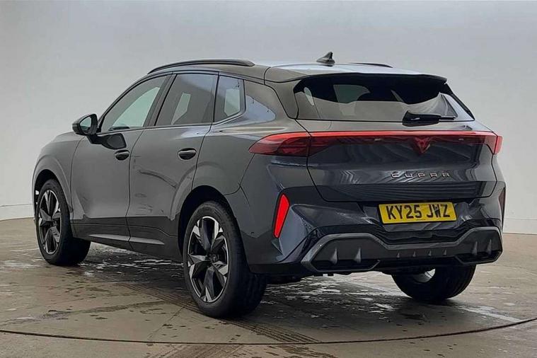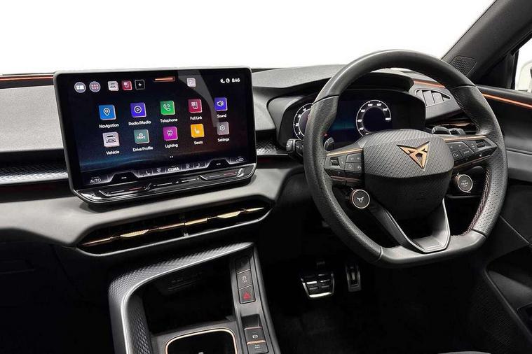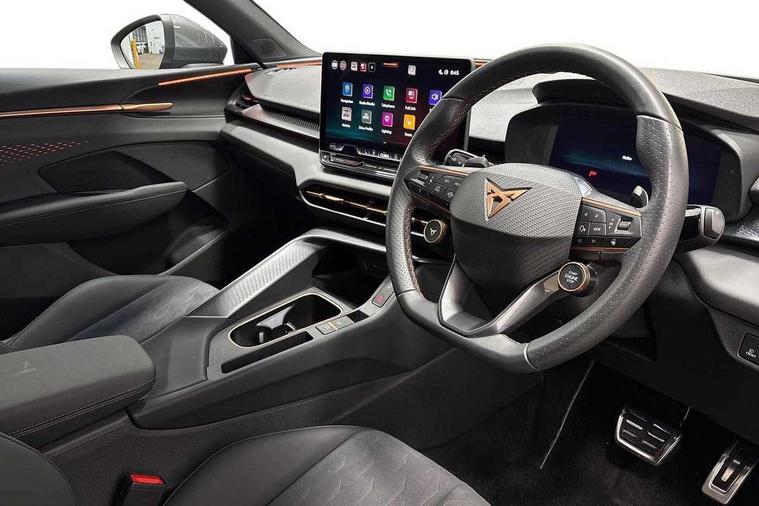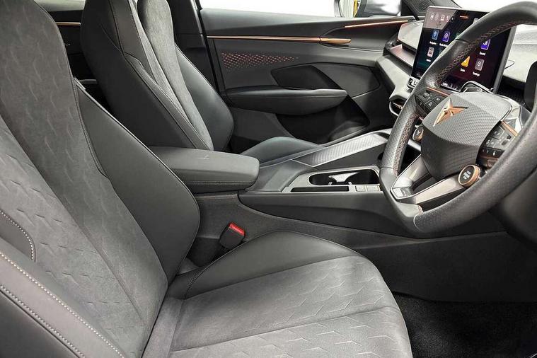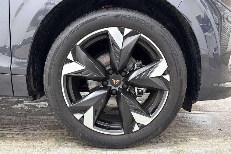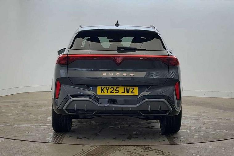 10.25" digital cockpit and configurable dashboard, Adaptive cruise control with follow-to-stop and speed limiter, Advanced driver alert system, Advanced lane assist with semi-automatic vehicle control in a medical emergency and traffic jam assist, Driving profile selection and conventional shock absorber, Dynamic road sign display, E-call, Electric tailgate with virtual pedal, Emergency steering support with turn assist, Four x USB Type C ports (2 in front and 2 in rear), Front and rear parking sensors, Front assist (Forward collision warning with automatic braking) with multifunction camera and front cross traffic assist, Head up Display, Intelligent park assist, Media system with Nav - 12.9" touch display, voice control, full link phone (wired/wireless), DAB and Steering wheel mounted controls, Rear traffic assist, Side and exit assist, Speed sensitive power steering, Start/stop system with regenerative braking, Top view camera (front camera, rear camera, 2 side cameras), Wireless phone charger, Auto dimming rear view mirror, Black roof rails, CUPRA 3D rear lights with ceremony & swiping indicator and illuminated logo, Dark tinted rear windows, Daytime running lights with automatic headlight control and Coming and Leaving home function, Door mirrors with memory function and lowing function on passenger mirror, Dynamic headlight range control, Electric front/rear windows, Electrically adjustable, heated and folding door mirrors, Front fog lamps with cornering function, Heat reflecting windscreen, High beam assist, LED headlamps with signature "CUPRA LED", Rain sensing wipers, Rear fog light on one side, back up light on both sides, Rear side wing doors, Rear wash/wipe, Third brake light, Welcome lights (within exterior mirror housing), 3 seat bench in 2nd row, Black roof lining, Cupra sports pedals, Dinamica cloth upholstery, Driver seat memory function, Electrically adjustable front seats including lumbar support, Front and rear head restraints, Front and rear reading lights X 4, Front centre armrest, Heated front seats, Heated leather wrapped multi function sports steering wheel with tiptronic, Illuminated interior front door sills, Isofix, Operating voltage 12V, Single front passenger seat, Smart wraparound interior lighting, Sunvisors with illuminated mirror, Three zone climate control with control panel in rear, Unsplit rear seat bench, split folding backrest, with centre armrest, Variable luggage/load compartment floor, 3 point seatbelts in front with pretensioner and electric height adjustment, 3 point seatbelts on all rear seats, Brake control system - ESC and brake booster, Child proof door locks, Driver and front passenger airbags, Electronic parking brake, Front and rear disc brakes, Front interaction airbag, Front passenger airbag deactivation switch, Front side airbags with curtain airbags, Pre-crash front and rear seat belt tensioner, window closure and hazard lights, Tyre pressure monitoring system, Visual and acoustic seat belt reminder, electric contact in front and rear, Anti theft alarm, Keyless locking and starting system with keyless access, Locking wheel bolts, Black decorative trims, Chrome interior detailing, 19" Spectrum exclusive machine alloy wheels, Tool kit,