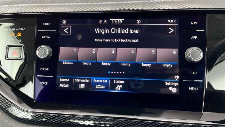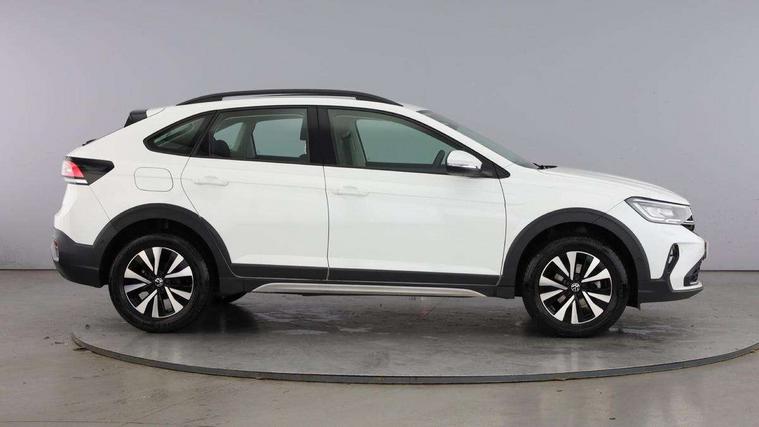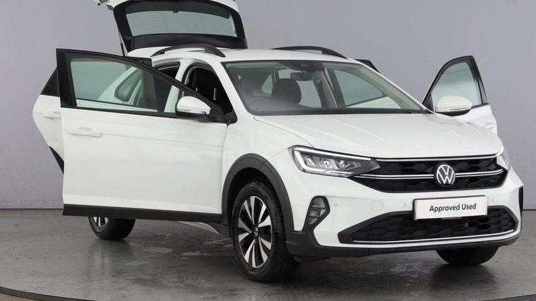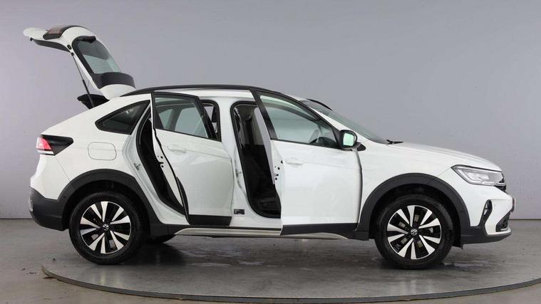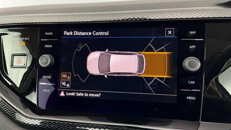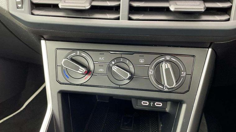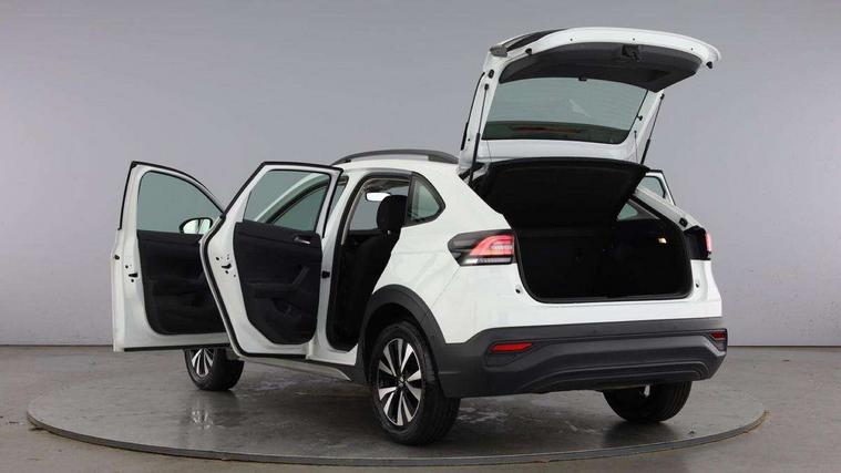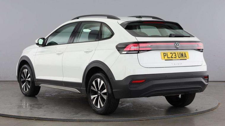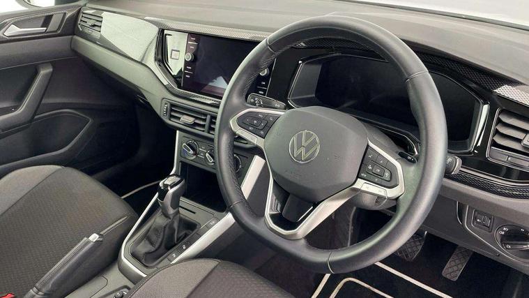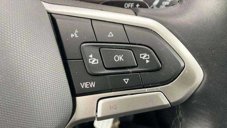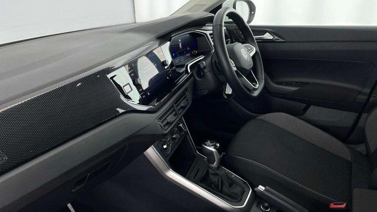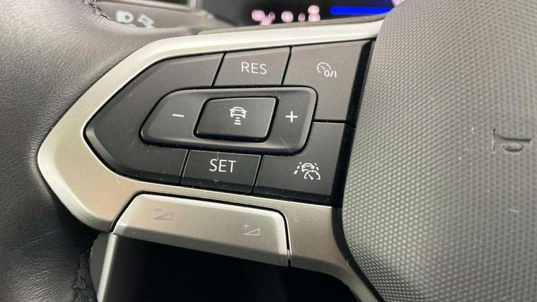 Adaptive cruise control, Driver alert system, e-Call (emergency call), Power Steering, Travel assist including emergency assist, Washer fluid level indicator, Wireless Charging including Bluetooth, Start-stop system with battery regeneration (recuperation - energy recovery during braking), WeConnect plus, Ambient lighting with logo projection, Aspherical driver's exterior mirror, Auto headlights, Body coloured bumpers, Body coloured exterior mirror housings and door handles, Electric windows, External USB type C socket and charging sockets, Heat insulating glass windscreen, LED rear combination lamp, LED third brake light, Left convex exterior mirror, Power folding adjustable/heated exterior mirrors and front passenger exterior mirror lowering function, Rear fog light on one side, reversing light on both sides, Rear side wing doors, Rear wash/wipe with intermittent wipe setting, 'Slash/ Austin' Cloth upholstery, 12V socket in centre console, 2 front reading lights, 3 rear head restraints, 3 seat bench in 2nd row, Black carpets, Child seat anchor for child seat system i-Size, 2x top tether and child seat anchor in front on front passenger side, Door and side trim panels in titan black, Driver and front passenger seat height adjustment, Front centre armrest, Height and reach adjustable steering wheel, Leather trimmed gear knob, Leather wrapped multifunction steering wheel with paddle shift, Luggage compartment floor, Luggage compartment light, Lumbar support for driver's and front passengers seat, Seat covers in titanium black, Single front passenger seat, Split folding backrest with centre armrest and unsplit rear seat bench, Storage compartment under front seats, Sun visors with illuminated vanity mirrors, Chrome Package - Taigo, Drivers assistance pack - Taigo, Light and Sight pack including High beam assist - Taigo, 2 x 3-point seatbelts/outer rear seats with ECE label, 3-point seat belts in front with pretensioner and height adjustment, 3-point seatbelt for centre rear seat, Driver and front passenger airbags with front passenger airbag de-activation, front side and curtain airbags, Driver and front passenger safety-optimised head restraints, Electronic stability control, Extended and predictive pedestrian/ cyclist protection, Front and rear disc brakes, Front curtain and side airbags with center airbag, Hill start assist, Manual rear child locks, Single tone horn, Tyre pressure loss indicator, Anti-theft alarm system with interior monitoring, backup horn, and towing protection, Anti-theft wheel bolts, Lava stone black gloss/matt decorative inserts in dash and front door panels, Low rolling resistance tyres,