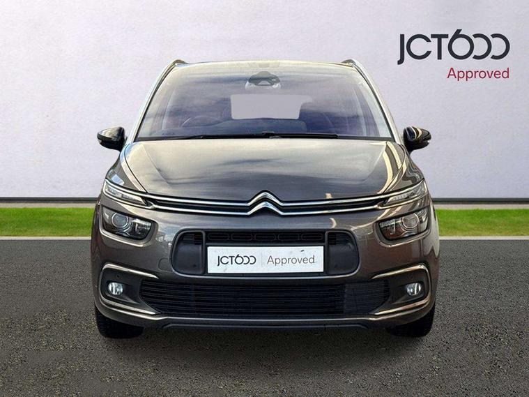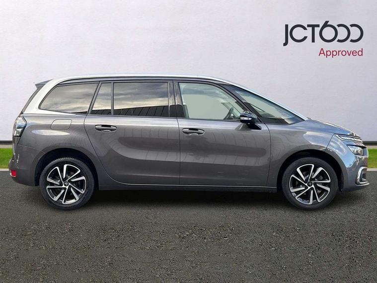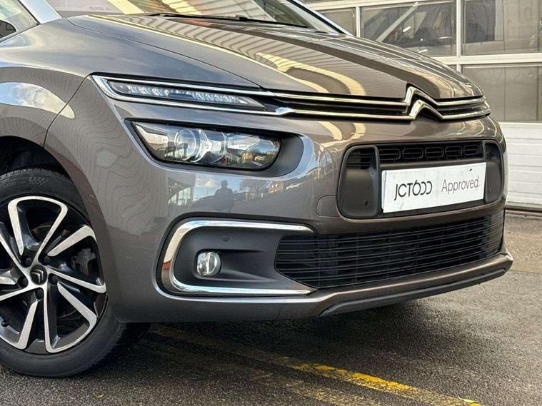 12" Panoramic HD central display, 7" Touch drive interface, Active cruise control with speed limiter and braking function, Active lane departure warning system, Audible lights on warning, Citroen connect box emergency assist system, Citroen Connect Nav, Coffee Break Alert, Driver attention alert system, Electric power assisted steering, Find my car feature, Forward collision warning, Front parking sensor, Mirror screen with Apple CarPlay and Android auto, Park assist and blind spot monitoring (with LED alert on door mirrors), Rear parking sensors, Reversing camera, Service indicator, Speed limit recognition and recommendation, Trip computer, Diesel particulate filter, Bluetooth handsfree and media streaming with USB socket, DAB Digital radio, RDS radio with 6 speakers and Aux socket, Steering wheel mounted controls, 3D effect LED rear lights, Aluminium front sill scuff protectors, Aluminium side profile with integrated roof bars, Auto dimming electrochrome rear view mirror, Automatic activation of hazard warning lights, Automatic lights and windscreen wipers, Black electrically heated, folding and reverse dipping door mirrors with LED courtesy light, Body colour bumpers, Body colour painted door handles, Chrome lower front bumper insert, Dark tinted side windows and rear windscreen, Double xenon headlights, Foot operated motorised tailgate, Front and rear electric windows with anti pinch and one touch operation, Front fog lights, High level LED brake light, Intelligent beam headlights, LED daytime running lights, LED front indicators, Panoramic athermal windscreen with sliding interior sun blinds, Panoramic glass sunroof with dark tinted glass/electric sunblind, Rear fog lights, Rear side wing doors, Rear wiper, Windows total closure mode, 12 volt accessory power socket in central storage compartment, 8 lashing eyes in boot, Air vents for row 2 rear seat passengers, Automatic digital dual zone air conditioning, Black panel on/off instrument lighting, Boot light, Child observation mirror, Cup holders, Driver and front passenger seats adjustable armrests, Driver/passenger sunvisors and vanity mirrors, Fabric load cover (parcel shelf), Fixed centre storage box with sliding lid, Fold-down aircraft style tray tables (integrated into back of front seats), Front and rear courtesy reading lights, Front and rear floor mats, Front door pockets with bottle holders, Front headrests, Height adjustable front passenger seat, Height and reach adjustable leather steering wheel with control zones, Height/tilt adjustable driver's seat, Illuminated and ventilated glove box, Illuminated central storage compartment (housing USB and 12 volt connection), Integrated retractable rear side window sun blinds, Ondulice cloth/leather upholstery with hype grey ambience, Rear underfloor storage [row 2], Seats with individual sliding fore/after adjustment in row 2, Single front passenger seat, Storage under driver's seat, Three individual full size seats with adjustable recline angle and retractable headrests in row 2, Three ISOFIX mounting points with top tether on all row 2 rear seats, Two individual seats with retractable headrests in row 3, ABS with Electronic brakeforce distribution and Emergency braking assistance, Active safety brake, Automatic electronic parking brake, Driver, front passenger, front lateral and curtain airbags, Electronic Stability Control (ESC) with intelligent traction control (auto re-activation 30mph+), Five 3 point inertia reel seat belts, Front inertia reel seatbelt with pre-tensioners and force limiters, Hill start assist function, Manual child lock in rear doors, Mono-tone horn, Passenger airbag deactivate switch, Tyre under inflation indicator, Unfastened seatbelt visual warning system on all seats + audible warning for driver/front passenger (front passenger presence detection), Immobiliser, Keyless entry and start, Perimetric and volumetric anti theft alarm, Remote central locking + deadlocks, Aluminium dashboard trim and air vent surrounds, 17" Shamal diamond cut alloy wheels,