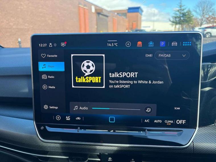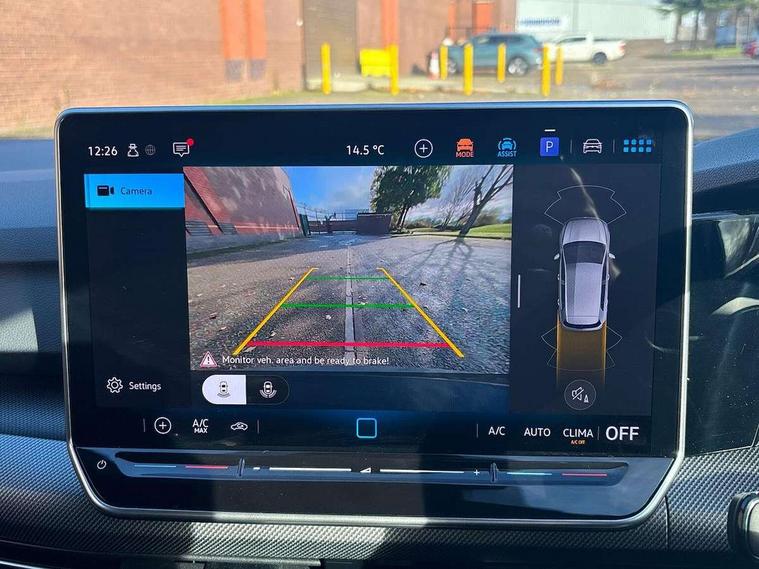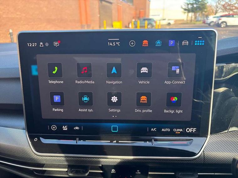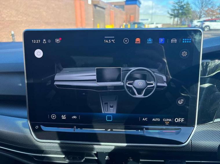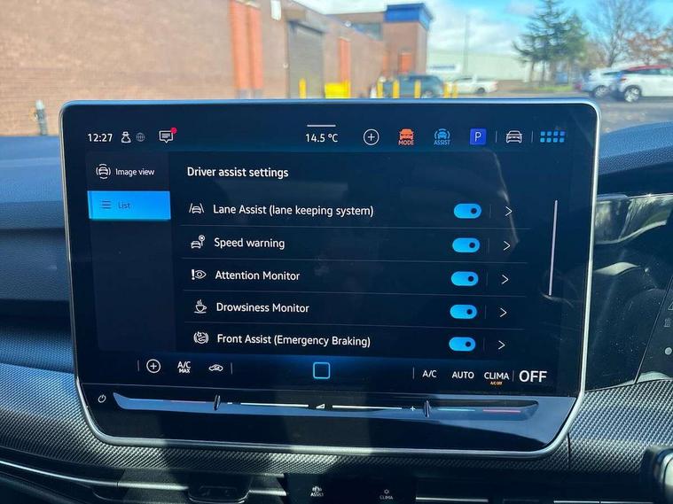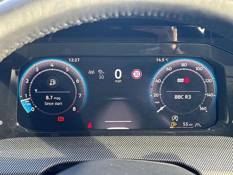 Activated carbon canister, Adaptive cruise control (ACC), Advanced driver attention and drowsiness monitor, Dynamic road sign display, Dynamic steering, E-Sim card for online connectivity, eCall emergency call system, Multi-color Digital cockpit pro, selection of different info profile possible, Multifunction front facing camera for distance control, Navigation system, Oncoming vehicle braking when turning including swerve support, Preparation for light assist system, Speed limiter, Speedo, rev counter, electronic odometer, trip, service interval display, exterior temperature and fuel gauge, Traffic jam assist, Voice enhancer and voice control, Warning signal and warning light for front and rear seatbelts not fastened, We connect plus preparation, We connect preparation, Wireless app connect, Petrol Particulate Filter, Start-stop system with battery regeneration (recuperation - energy recovery during braking), XDS electronic differential lock for improved traction and handling, 2 USB C ports in front, 2 USB charging sockets on the centre console in the rear charging capacity upto 45W, Comfort telephony + wireless charging, without wireless aerial connection, Digital radio reception (DAB), Diversity antenna for FM reception, Gaming platform via car app, Infotainment system with 12.9" display, Mobile phone interface with inductive charging feature, 3rd brake light, Auto headlights, Automatic headlamp activation with Coming home and Leaving home feature, Body colored bumpers in R-Line style, Body colour door handles, Exterior ambient lighting with illuminated door handles, Exterior mirrors convex on the left and aspherical on the right, Front and rear electric windows, Heat insulating windshield made of laminated glass, LED daytime running lights, Rear exhaust tailpipe, Rear fog light on one side and reversing lights on both sides, Rear side wing doors, Rear windscreen washer and wiper with interval delay, Remote electrically foldable door mirrors, puddle lights and reverse activated passenger's door mirror, Welcome light with surround lighting, 12V socket in front centre console, 12V socket in luggage compartment, 3 rear head restraints, 3 seat bench in 2nd row, Ambient lighting with 30 colour including LED light unit in front footwell with selectable light colour, Brushed stainless steel pedals, Carpet mats, front and rear, Chrome plated radiator grille inserts, air vent surrounds and light switch surrounds, Front centre armrest, Integrated front head restraints, ISOFIX anchors for child seats on outer rear bench seats and on front passanger seat compatible for i-Size, Leather gearshift handle, Luggage compartment lighting, Premium sports seats in front, Rear cupholder and loadthough, Single front passenger seat, Soul black instrument panel, Split folding backrest with centre armrest and unsplit rear seat bench, Storm grey roof lining, Sun visors with illuminated vanity mirrors, 3 point height adj front seatbelts + pretensioners, 3 rear three point seatbelts, ABS, Autonomous emergency braking front assist with pedestrian and cyclist monitoring, Child locks on rear doors, Driver and front passenger airbag with front passenger airbag deactivation, Electronic parking brake with auto hold, ESC (Electronic Stability Control), Extended pedestrian protection measures, Rear disc brakes, Two tone horn, Tyre pressure loss indicator, Volkswagen roadside assistance, Anti theft wheel bolts, Preparation for alcohol interlock, Decorative inserts carbon grey for dashboard and front door trim panels,