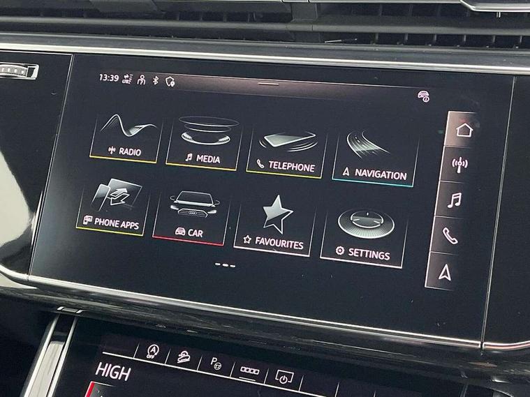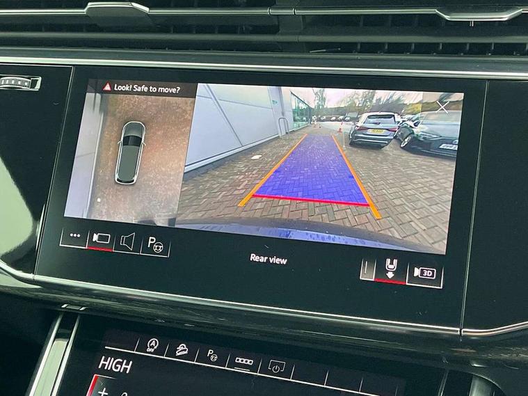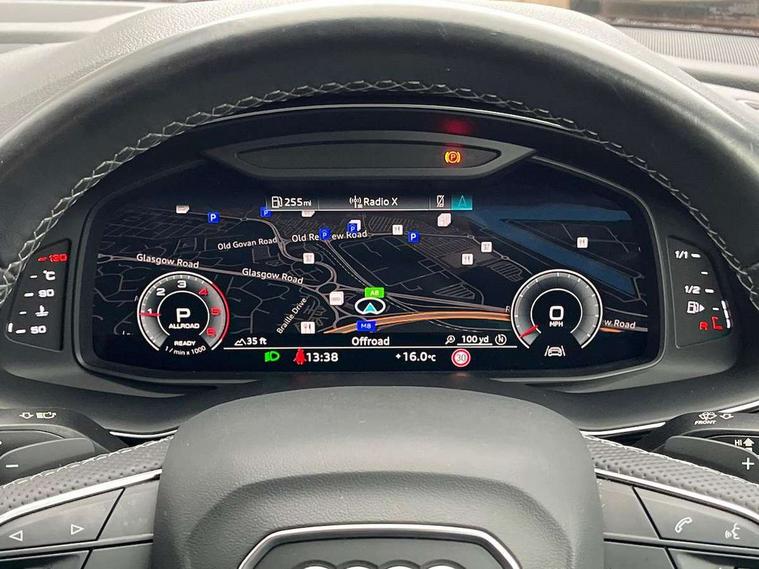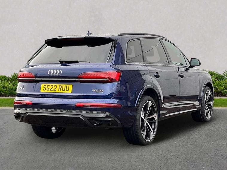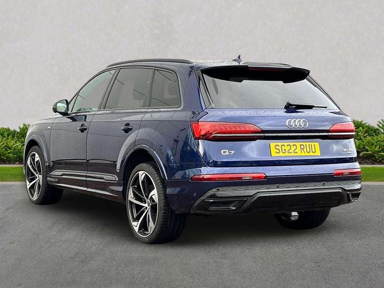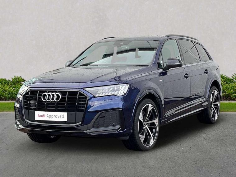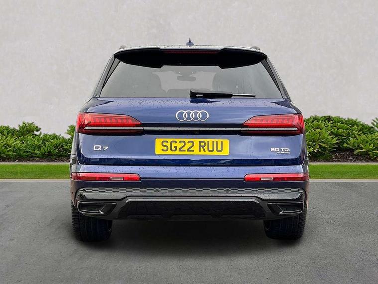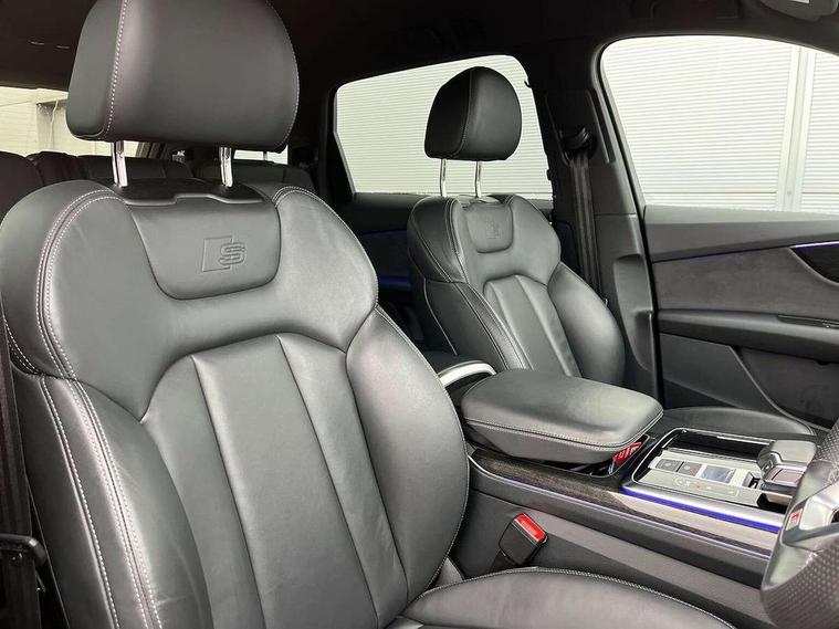 Audi connect safety and service (e-call), Audi connect with Amazon Alexa Integration, Audi drive select (Auto, Comfort, Dynamic, Efficiency, Individual, Off-road and All road), Bluetooth interface, Camera based traffic sign recognition, Electromechanical steering, MMI navigation plus with MMI touch screens includes 10.1" and 8.6" screens with haptic feedback, Natural voice recognition, Parking system plus with 360 degree display (front, rear and side sensors) - acoustic and visual park assist system, Power operated tailgate, Rear view camera, Smartphone interface includes wireless Apple carplay/Android Auto, Start/stop system, 48V Mild hybrid technology, Adaptive air sports suspension, Quattro all wheel drive with self locking centre differential, Audi music interface - front 2 USB-C ports with charger and data functions, Audi sound system with 6 channel amplifier, 180 watt amplifying capacity and 10 loudspeakers including subwoofer, DAB digital radio module, 3rd brake light, Auto dimming frameless rear view mirror, Black roof rails, Bumpers in contrast paint scandium grey finish includes door trim and wheel arch trim strips, inlays in door strip contain quattro embossing, Electrically adj heated/folding + automatically dimming exterior mirrors with memory + automatic kerb side function for passenger side exterior mirror, Heat insulating glass in windshield, Integrated LED indications in door mirrors, LED daytime running lights, LED headlights and high beam assist, LED rear tail lights, Privacy glass - dark tinted rear and rear side windows from B-pillar backwards, Rear side wing doors, Rear wiper, 2 seat bench in 3rd row, 3 seat bench in 2nd row, 4 zone deluxe automatic climate control, 7 seat layout with ISOFIX points for the front passenger seat and rear passenger seat, Black cloth headlining, Comfort front centre armrest, Electric adjustable front seat with 4 way lumbar support, driver memory functionality, Folding rear seats, Front head restraints, Front/rear floor mats, Heated front seats, Illuminated door sill trims with S logo, LED interior ambient lighting, Luggage compartment cover, Luggage compartment sill protection in stainless steel, Rear head restraints, Single front passenger seat, Stainless steel pedals, Sunvisors with illuminated vanity mirrors, Titanium black styling pack - Q7/SQ7, 3 point seatbelts on all rear seats, Audi pre sense front, Child locks on rear doors, Driver and front passenger, front side and curtain airbags, Electromechanical parking brake, Electronic Stabilisation Control (ESC) including ABS, ASR and EDL, Extended pedestrian protection measures, Hill hold assist, Seatbelt monitoring, Tyre pressure loss indicator, Warning triangle and first aid kit, Anti theft alarm, Anti-theft wheel bolts and wheel loosening detection, Keyless Go, Remote central locking, Polished oak trim with grey finish inlay, Tool kit, Tyre repair kit,
