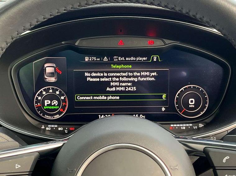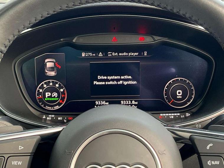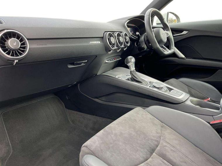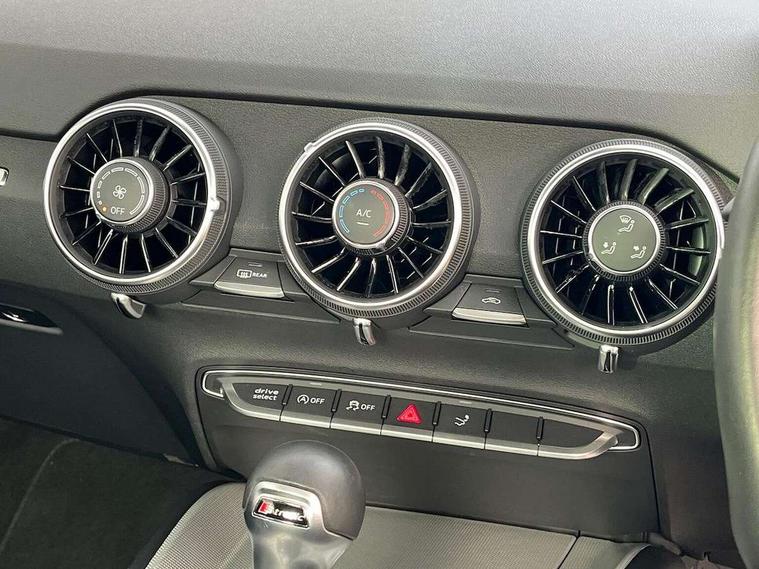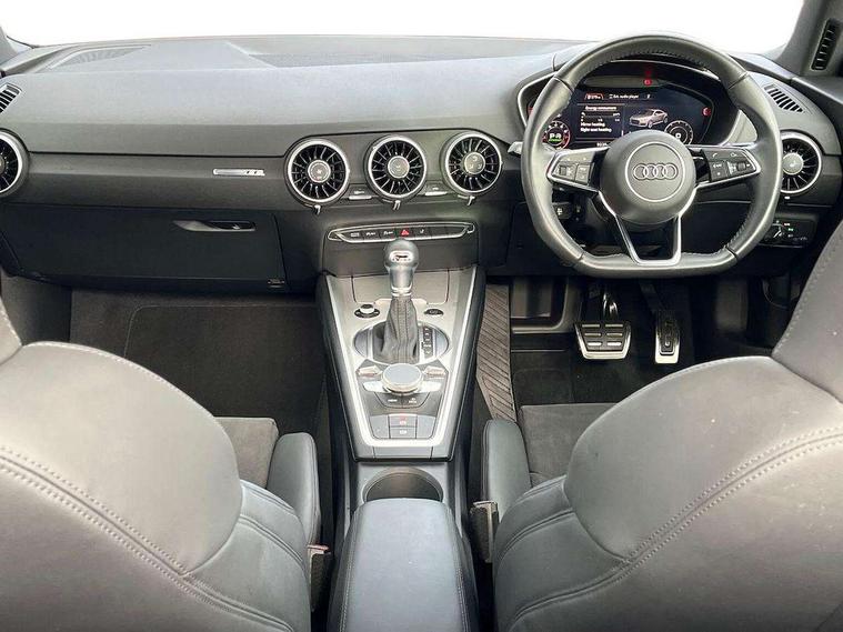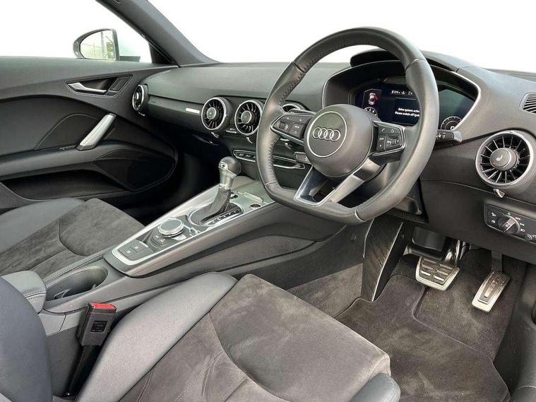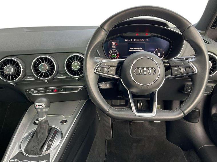 Audi drive select with 4 Pre configured modes, Audi smartphone interface, Audi virtual cockpit - 12.3" high-resolution LCD display with fully customisable instrument cluster, Cruise control + speed limiter, Emergency call service, MMI touch panel, Mobile phone preparation with bluetooth interface, Progressive power assisted steering, Service interval indicator, Start/Stop system with energy recuperation, TP memo, Sports suspension, AM/FM radio, Bluetooth audio streaming, DAB Digital radio, MMI Radio with CD player and SD/XC card slot, Auto dimming rear view mirror, Body colour bumpers, Body colour door mirrors, Electric folding door mirrors, Electric front windows, Electrically adjustable and heated door mirrors with integrated LED side indicators, Front fog lights, Green tinted heat insulating glass, LED 3rd brake light, Light and rain sensors, Rear boot, Retractable rear boot spoiler, Sunband for windscreen, Xenon headlights with LED daytime running lights with automatic headline range control + LED rear lights, brake lights and rear indicators, 12V socket, 2 rear seats, 3 spoke flat bottomed high multi-function leather sport steering wheel with gearshift paddles, Alcantara/Leather upholstery includes seat centre panels, door trim inserts in black Alcantara with side bolsters, head restraints in black leather, Aluminium door sill trims, Front centre armrest, Front passenger seat, Front sports seats, Heated front seats, Height/reach adjust steering wheel, Integrated head restraints, ISOFIX child seat mounting for front passenger seat with airbag deactivation, Manual adjustment of seat height, fore/aft position, seat angle, seat depth and backrest angle, Rear head restraints, Rear top tether child seat ISOFIX attachment, Split folding rear seat, Non smoking pack - TT/TT RS, 3 point front seat belts, ABS, ASR traction control, Curtain airbags, Driver and front passenger airbag with front passenger airbag deactivation, EDL traction control, Electromechanical parking brake, ESP, First aid kit, Front side airbags, Head airbags, Hill hold assist, Seatbelt warning, Tyre pressure loss indicator, Warning triangle, Anti theft alarm, Anti theft wheel bolts, Immobiliser, Keyless Go, Remote central locking, Aluminium design inlays, Tool kit, Tyre repair kit,