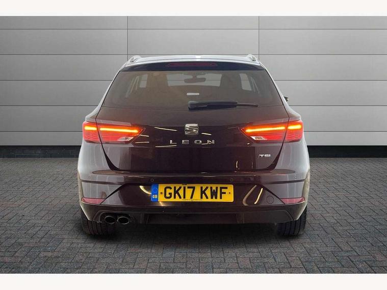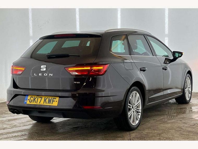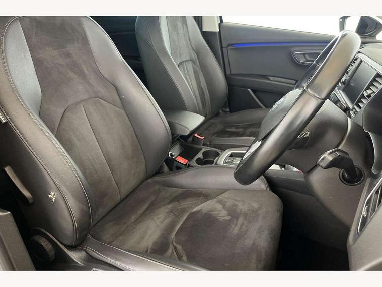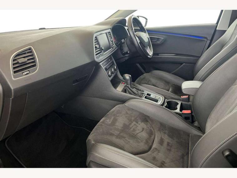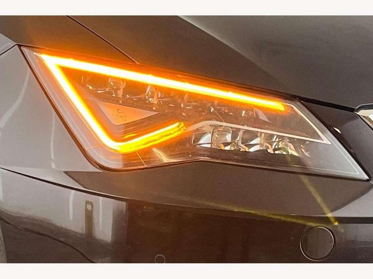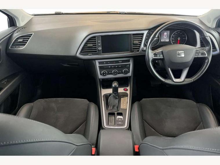 'Lights On' Reminder warning buzzer, 8" touch screen, Bluetooth Handsfree Phone Connection, Front parking sensors, Low fuel warning light, Outside temperature gauge, Rear parking sensors, Remote fuel flap release, SEAT logo boot release, Service interval indicator, Touch screen display, Trip computer, Voice control system, XDS electronic differential lock, 2 USB ports, 2x SD card slot, Auxiliary input socket, Bluetooth audio streaming, Connecting box + Keyless entry, DAB Digital radio, Radio/CD + MP3, Steering wheel mounted audio/phone controls, Aluminium front door sills, Body colour door handles, Body coloured bumpers, Body coloured door mirrors, Chrome window surround, Chromed centre radiator grille surround, Dark tinted rear windows, Electric adjustable/heated/folding door mirrors, Electric front/rear windows with one touch/auto up/down, Electric headlamp adjustment, High gloss black finish B and C pillars, LED indicators in door mirrors, Rear wash/wipe, Reverse activated kerb-view adjustment on passenger's door mirror, Twin exhaust pipes, 12v power point in centre console, 3 height adjustable rear headrests, 60/40 split folding rear seat, Active head restraints, Additional heating and ventilation outlet in rear of centre console, Ambient lighting, Boot net, Chrome loading sill, Driver seat lumbar adjustment, Driver/passenger sunvisors with illuminated vanity mirrors, Dual zone climate control, Dust/pollen filter, Front adjustable head restraints, Front armrest with storage box, Front cupholders x 2, Front seat and rear pockets, Front sports seats, Front/rear floor mats, Height/reach adjust steering wheel, Illuminated boot, Illuminated glovebox, Illuminated rear centre console, Instrument lighting with brightness control, Leather handbrake, Leather steering wheel and gear knob, LED reading lights, Luggage compartment cover, Luggage tie-down hooks, Passenger seat height adjuster, Passenger seat lumbar adjust, Rear top tether child seat ISOFIX attachment, Steering wheel gearshift paddles, Full LED headlight pack - Leon, 3 point seatbelts on all rear seats, ABS + traction control, Child proof door locks, Collision mitigation braking system, Curtain airbags, Driver/Front Passenger airbags, Drivers knee airbag, Electronic parking brake with auto hold, ESP+EBA, Front seatbelt pretensioners, Front Seatbelt warning, Front side airbags, Hill hold control, Passenger airbag deactivation system, Tyre pressure monitoring system, 2 folding remote keys with window open/close function, Engine immobiliser, Remote central locking + deadlocks, Volumetric alarm with back up horn, Chrome interior trim,