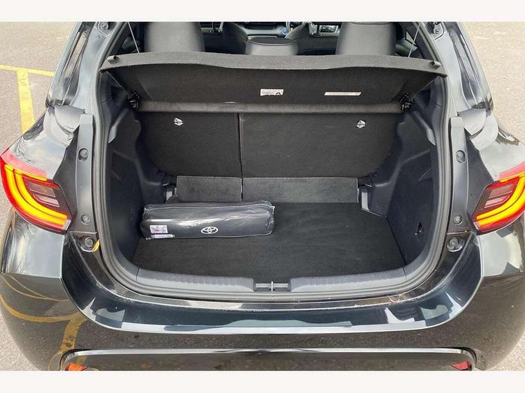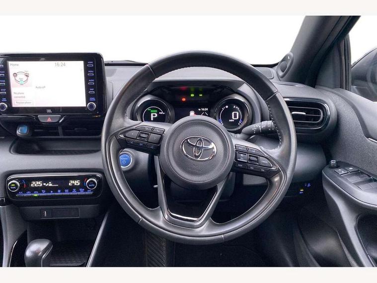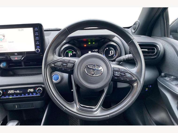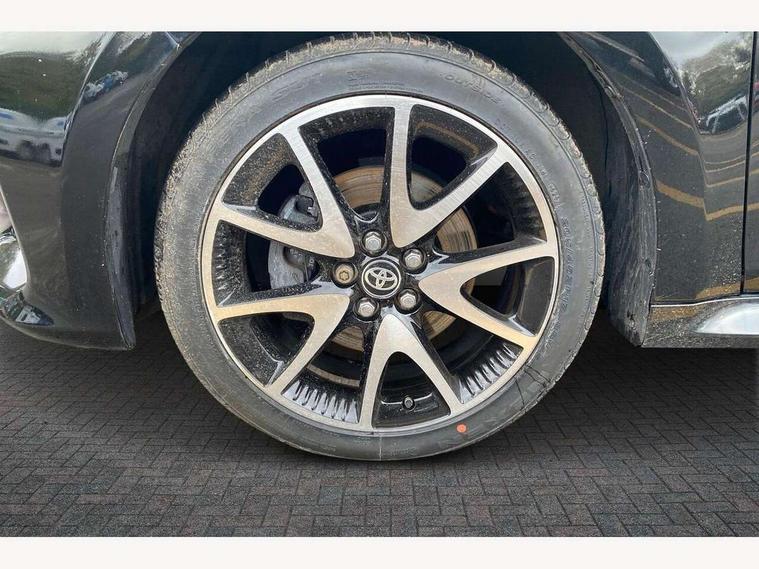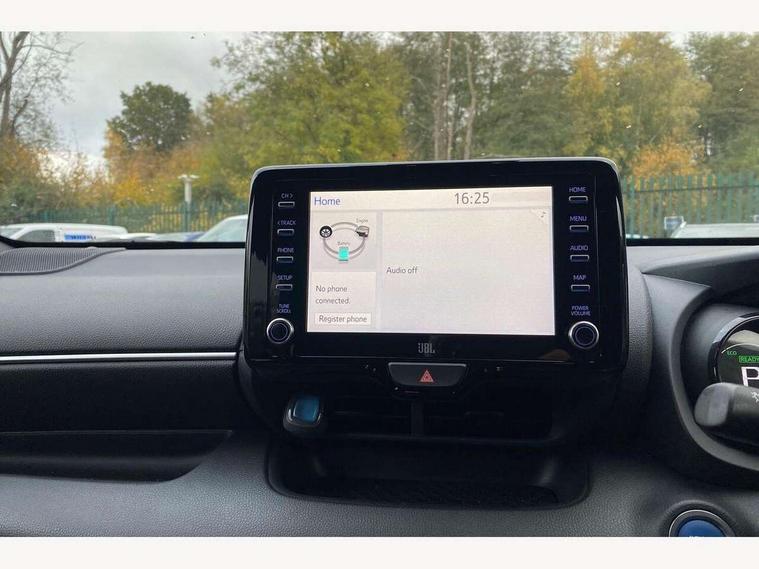 Adaptive cruise control, Adjustable speed limit with speed warning, Bluetooth connectivity, Colour binocular inspired displays with digital speedometer, E-call, Electric power steering, Hybrid energy display, Multi information display switches on steering wheel, Reversing camera, Smartphone integration with Apple CarPlay and Android auto, Vehicle Stability Control (VSC), 8" Multimedia display touch screen, JBL Premium sound system with 8 speakers, Toyota Touch 2 with DAB, USB connection, Acoustic windscreen glass, Auto windscreen wipers, Automatic headlights, Body coloured door mirrors, Electric adjustable heated door mirrors, Follow me home headlights, Front auto power windows with anti jam protection, Full LED rear lights, LED daytime running lights, LED front fog lights, LED Headlights, LED High mounted stop lamp, Painted front grille, Rear auto power windows with anti jam protection, Rear privacy glass, Rear spoiler, Shark fin antenna, Turning signal integrated indicators in door mirrors, 3 adjustable rear headrests, 3 spoke leather steering wheel, 60/40 split folding rear seat, Active headrests, Adjustable boot height, Coat hooks in rear grab handles, Cup holders (2 front & door), Data Communication Module (DCM) connected services, Dual zone automatic air conditioning, Fabric seat with partial synthetic leather upholstery, Front armrest, Front sport seats, Glovebox, Height adjustable driver's seat, Height adjustable passenger seat, Isofix seat fixing, Leather gearshift, Map pockets on the backs of the front seats, Pollen filter, Shopping bag hooks, Tilt/telescopic steering column, 3 point seatbelts on all rear seats, ABS+EBD+Brake assist, Electronic parking brake, Emergency brake light system (EBS), Front passenger airbag on/off switch, Front seatbelt reminder, Hill start assist control (HAC), Rear child proof door locks, Rear seat belt reminder, Supplemental Restraint System (SRS) 8 airbags: Driver & passenger's airbags, dual side curtain airbags, side impact airbags, front centre airbag, Toyota Safety Sense 2, Precollison + Night time Pedestrian & Cyclist Detection, Lane Trace Assist, Auto High Beam, Intelligent ACC & Road Sign Assist, Tyre pressure warning system, Alarm/immobiliser, Keyless smart entry with push button start, Remote powered central double locking doors, Piano black interior trim, Soft touch instrument panel, Space saver spare wheel,