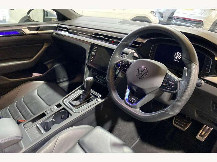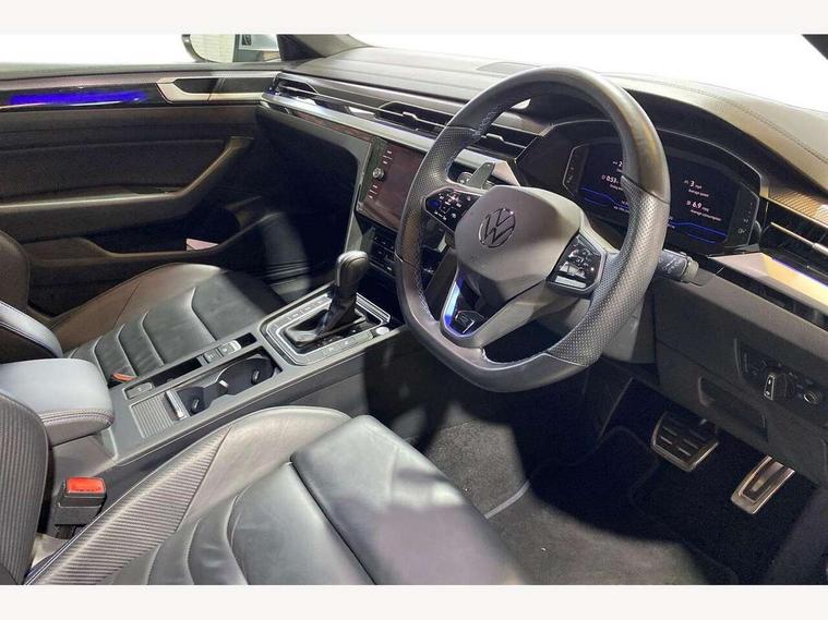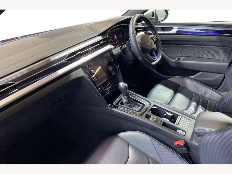 Adaptive cruise control (ACC) with speed limiter, front assist (reacting vehicles pedestrian and cyclists) and follow to stop, Advanced driver attention and drowsiness monitor, App connect including wireless Apple CarPlay, Camera for warning system, Digital cockpit with 10.25" high resolution TFT display screen with customisable menus and information, Driver profile selection including ECO function, Dynamic road sign display, eCall - Emergency call service for SOS calls to emergency response, Emergency assist, Hands free boot opening, Press and drive key, Progressive steering, R driving mode button on steering wheel, Side scan lane change assist including rear cross traffic alert, Speedo and rev counter, electronic odometer, trip, service interval display and exterior temperature gauge, Tailgate, Travel assist - Lane keeping assist and traffic jam assist, Voice activation for telephone and navigation, All wheel drive - 4Motion, Start/stop function with battery regeneration, XDS electronic differential lock, External, USB type C data sockets with increased charging performance front (45 Watt), Premium USB cable in choice of either Apple or Android smartphone compatibility, Auto dimming interior rear view mirror, Automatic coming/leaving home lighting function, Automatic headlights, Body colour door handles, Body colour side skirt, Body coloured top and matt black lower door mirrors with integrated indicators, Chrome side window surrounds, Dynamic headlight range control, Electric folding door mirror, adjustable, heated with front passenger exterior mirror lowering function, Front and rear electric windows, Front and rear stainless steel door sill protection, Front windscreen washers and wipers with 4x interval delay, Heat insulating side and rear windows, Heated rear windscreen, Heated windscreen washer jets, LED 3rd brake light, LED rear combination lamp with dynamic indicators, LED rear number plate lights, Left and right chrome effect twin trapezoid exhaust tailpipe surrounds, Panoramic sunroof with tilting and sliding including integrated roller blind, R Line design body coloured bumpers, R logo light projection, R logo on radiator grille, side panels and rear, R specific radiator grille, R specific rear bumper and R specific diffusor in black, Rain sensor, Rear fog lamp on one side and reversing lamp on both sides, Rear side wing doors, Rear tinted glass from B pillar backwards, approx 65% tinted, Rear windscreen washer and wiper with interval delay, Roof spoiler, 12V socket in front centre console, 12V socket on rear of front centre armrest, 14way electric adj front seats with lumbar + ergoComfort driver seat with memory/massage, comfort entry, integrated front headrest + door mirror memory, 3 rear head restraints, 3 seat bench in 2nd row, 30 colours options interior ambient lighting, 60:40 split folding rear seat backrests with centre armrest, Air care climatronic 3 Zone electronic air conditioning with automatic air recirculation, Chrome trim on upper and lower air vents extending across cockpit, Driver and front passenger sunvisor with vanity mirror, Front cupholders x 2, Front footwell illumination, Glovebox, Heated front seats, Height/reach adjust steering wheel, Isofix child seat preparation easy fit for two outer rear seats, Luggage compartment lighting, Nappa leather upholstery with side bolster and headrest, Pedals and footrest in stainless steel, Premium sports seats with R-logo, R performance leather wrapped heated multi-function sports steering wheel with touch controls and larger shifting paddles, blue stitching and R-logo, R specific floor mats with R-logo and stitching, Removable luggage compartment cover, Single front passenger seat, Split folding front seat backrest with front centre armrest, Titanium black roof lining, Two LED front reading light, 18" performance brakes, 3 rear three point seatbelts, ABS+EBD+Brake assist, Child locks on rear doors, Driver airbag and front passenger airbags with deactivation switch including driver knee airbags, Electronic parking brake, Electronic stability control (ESC) and Electromechanical brake booster, Front disc brakes, Front side airbags with curtain airbags, Hill start assist, Pro active occupant protection to detect critical situations with elevated accident potential from the front, R performance torque vectoring, R specific blue brake calipers, Rear disc brakes, Three point height adjust front seatbelts + pretensioners, Two tone horn, Tyre pressure monitor, Warning buzzer for seatbelts if unfastened, Warning triangle, Alarm with interior protection with deactivation via infotainment system, Electronic engine immobiliser, Keyless entry system including start/stop button on centre console, Remote central locking, Aluminium decorative inserts, Chrome trim on lower doors in front and rear, Leatherette insert on door and side trim panel in foam film, Piano black decorative inserts in centre console, R specific decor inlay aluminium black carbon,