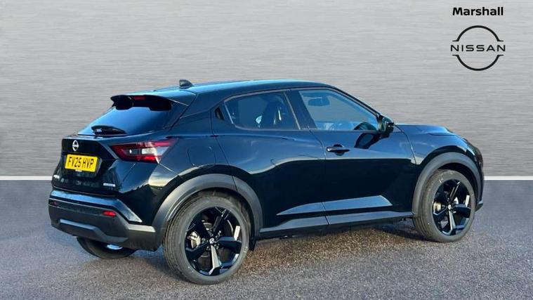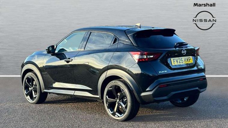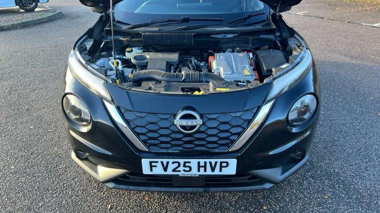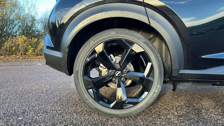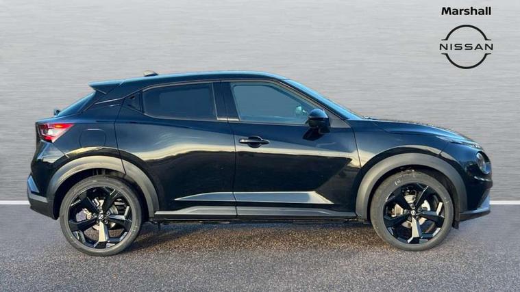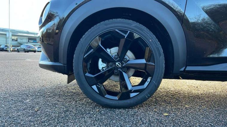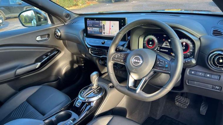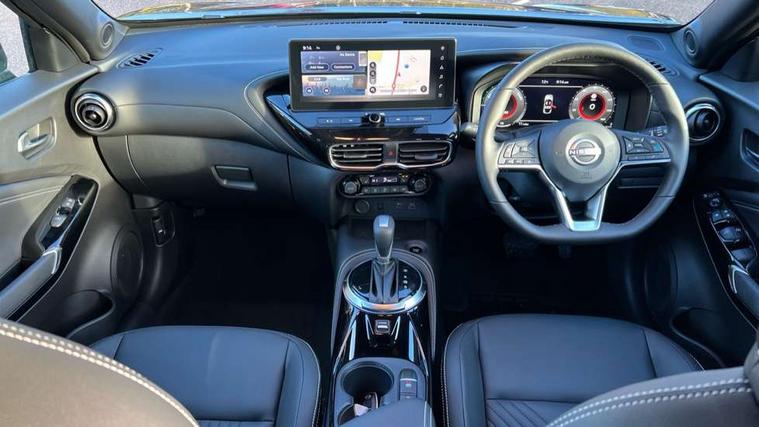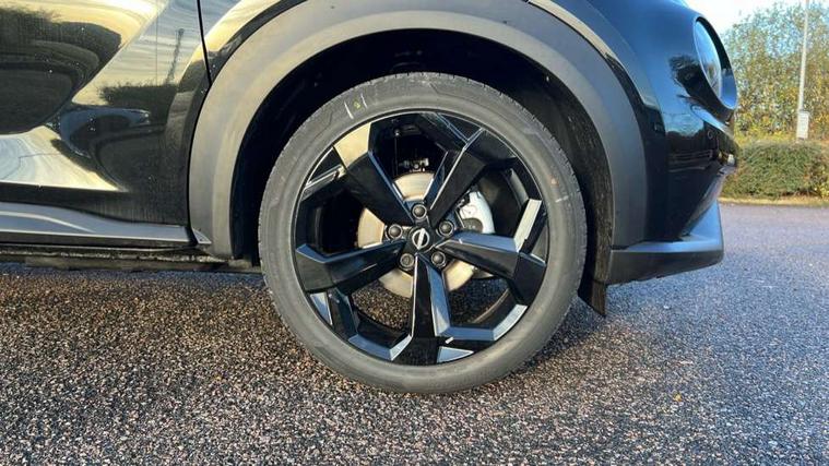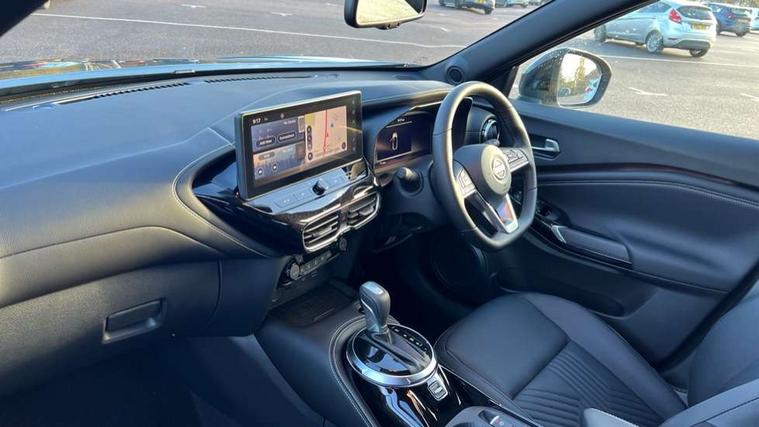 12.3" full colour TFT screen combimeter, Drive modes select (Eco, normal and sport), e-Pedal step, Emergency and breakdown call, EV mode switch, Front parking sensor, Intelligent driver alert system, Intelligent lane intervention, Lane departure warning system, Nissan connect 12.3" touch screen entertainment system, Nissan connect nav with TomTom traffic, Nissan connect services, Outside temperature sensor, Power Steering, Rear parking sensor, Stop/start button, Traffic sign recognition, Trip computer, Voice recognition, WiFi connectivity, Wireless Apple CarPlay and Google Android auto, Wireless Smartphone charger, 10 Bose speakers 8 speakers and 2 headrest speakers for driver/passenger seats, 2 X Rear console USB port, Bluetooth system, USB, Aux-in and 12V socket, Bose personal plus audio system, DAB Digital radio, Auto dimming frameless rear view mirror, Automatic hazard signal with emergency stop signal, Body colour door handles, Electrically adjustable door mirrors with integrated indicators, Follow me home headlights, Front and rear electric window with one touch driver window, High beam assist, LED 3rd brake light, LED daytime running lights, LED front fog lights, LED headlamps, LED rear fog lamp, LED rear lamps, One touch passenger window, Rear privacy glass, Rear side wing doors, Rear wiper, Roof spoiler, Shark fin roof antenna in solid Black, Solid black door mirrors, Three blink turn signal, 3 height adjustable rear headrests, 3 seat bench in 2nd row, 60/40 split folding rear seat, Card holder on driver sunvisor, Door ambient lighting, Driver seat back pocket, Driver side rear coat hanger, Driver/passenger sunvisors and vanity mirrors, Front and rear cabin lights, Front armrest, Front door pockets with bottle holders, Front head restraints, Front/rear passenger grab handles, Gear console ambient circle lighting, Height adjustable driver's seat, Internal chrome door handles, Luggage board, Luggage space lighting, Monoform sporty seats, Multifunction steering wheel, Passenger seat back pocket, Rear door bottle holders, Single front passenger seat, Smooth synthetic leather steering wheel, Synthetic leather kneepad, Synthetic leather shift knob, Synthetic leather upholstery, Telescopic steering wheel adjustment, Two cupholders in front centre console, Two rear isofix child seat anchorage points with top tether, Welcome light and console tray ambient lighting, Comfort pack - Juke, Heat pack with height adjustable passenger seats - Juke, ProPilot pack - Juke Auto, ABS with EBD and brake assist, Active ride control, Active Trace Control, Driver and passenger airbags, Driver and passenger side airbags, Electric handbrake with auto hold function, Electronic Stability Programme (ESP), Front and rear curtain airbags, Height adjustable seatbelts, Hill start assist, Intelligent emergency braking with pedestrian and cyclist recognition, Rear door child safety locks, Seatbelt reminder for driver/front passenger and rear seats, Three 3 point rear seatbelts, Traction control, Tyre pressure monitoring system, VDC Dynamic Vehicle Control, Alarm, Immobiliser, Intelligent key and start push button with walk away lock and approach unlock functions, Remote central locking, 19" Alloy wheels, Tyre puncture repair kit,