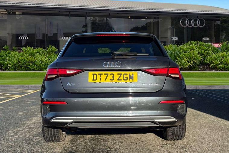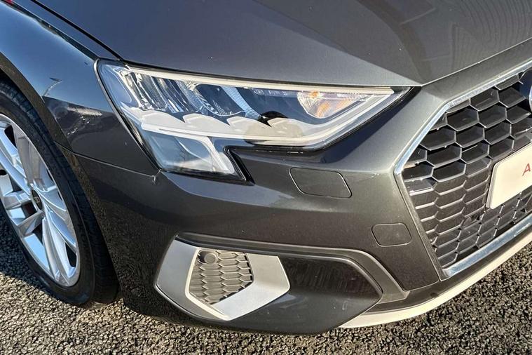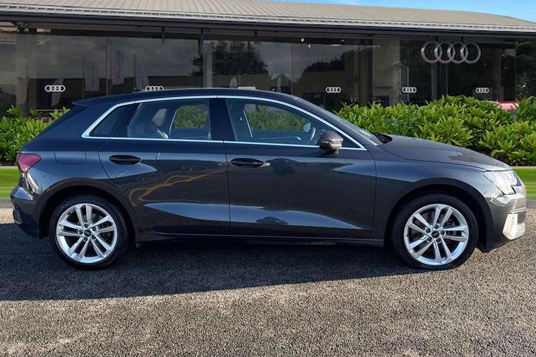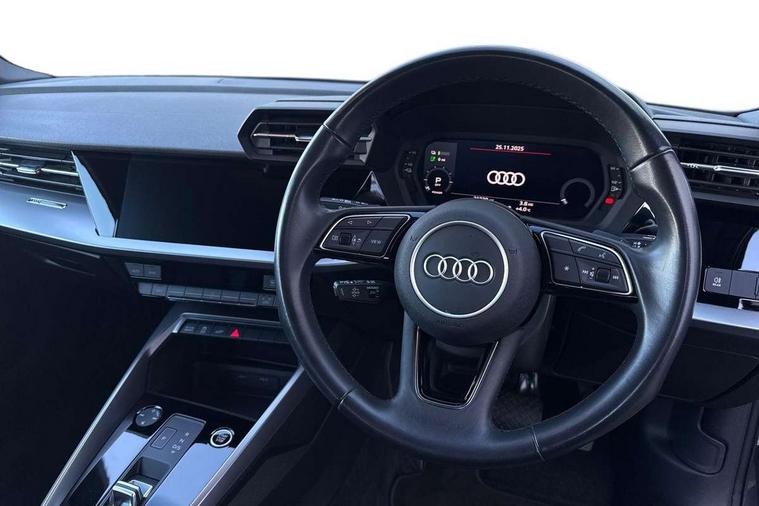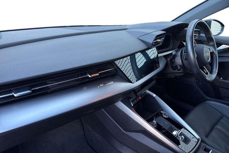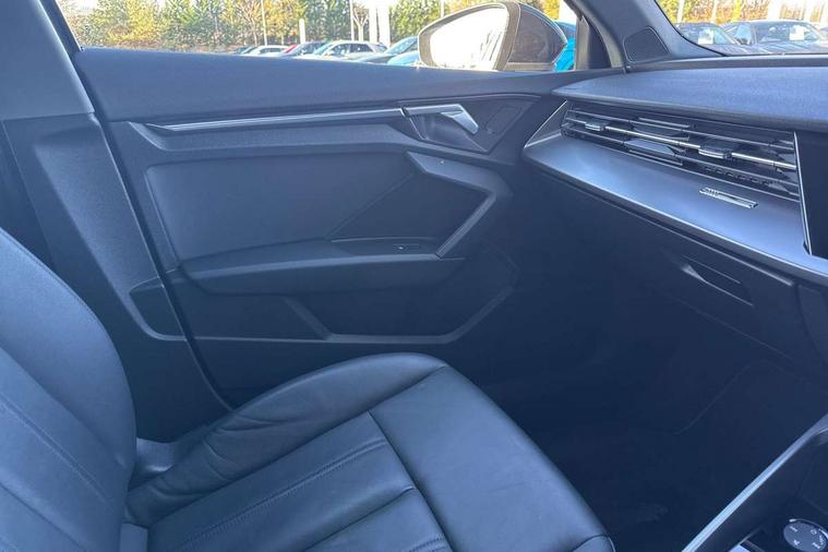 Audi drive select (Auto, Comfort, Dynamic, Efficiency and Individual), Audi smartphone interface, Audi Virtual Cockpit - 10.25" digital and colour instrument cluster, Automatic start/stop system with recuperation, Bluetooth interface, Camera based traffic sign recognition, Collision avoidance assistant, e-Call (emergency call), Electromechanical power speed sensitive steering, Lane departure warning system, MMI Navigation Plus with high resolution 10.1" colour touch screen display, Service indicator, Trip computer, Voice control system with natural language interaction, 3 pin 10 amp domestic charging cable, 3.6 kw On-board charger, Standard suspension, Type 2 mode 3 32 amp charging cable, Type 2 socket for AC charging, 2xUSB-C connection with data and charging functions, 6 passive loudspeakers, DAB Digital radio, 3rd brake light, Acoustic glass windscreen, Aluminium window trim, Auto dimming frameless rear view mirror, Body colour exterior mirrors, Body colour roof spoiler, Electrically adjustable/heated/folding/auto dimming door mirrors with integrated LED indications + kerb view function for passenger side, Front electric windows, LED daytime running lights, LED headlights and halogen rear lights, Light and rain sensors, Rear electric windows, Rear side wing doors, Rear window, rear door windows and rear side windows in clear glass, Rear wiper, 12V socket and storage compartment in front centre console, 3 seat bench in 2nd row, 3 spoke leather multifunction steering wheel with paddle shift, 4 way electrically adjustable lumbar support for driver and front passenger, 60/40 split folding rear seat bench, Dual zone electronic climate control, Front and rear headrests, Front centre armrest, Front door sill trims with aluminium inlay, Front/rear floor mats, Height and reach adjustable steering wheel, Interior lighting - Front and rear roof module including reading lights, glove compartment light and right hand side, Interior lighting - glove compartment light and right hand side, Luggage compartment floor covering, Manual boot compartment lid, Manually adjustable front seats, Routine cloth upholstery with front sports seats, Seat side bolsters, Single front passenger seat, Steel grey cloth headlining, Aluminium interior elements pack - A3 Sportback, LED interior lighting pack - A3 Sportback, Sport styling pack - A3 Sportback, 3x3 point rear seat belts, Driver and front passenger airbag with passenger airbag deactivation, Electronic Stabilisation Control (ESC) including ABS, ASR and EDL, First aid kit with warning triangle and 2 safety vests, Front side airbags with head airbags and interaction airbag, Pre-sense front with pedestrian and cyclist detection, Seatbelt monitoring, Tyre pressure loss indicator, Anti theft alarm, Anti-theft wheel bolts, Electronically operated child locks, Immobiliser, Remote control central locking, Inlays with silk effect paint in platinum grey, Tool kit, Tyre repair kit,