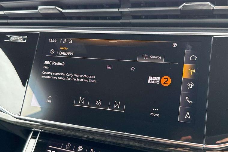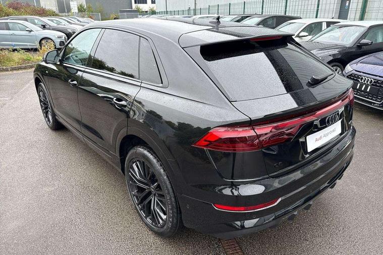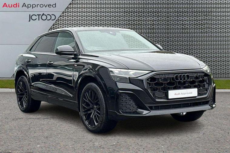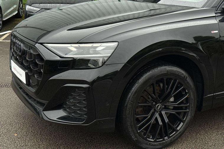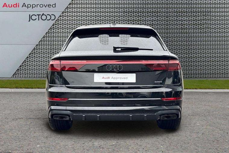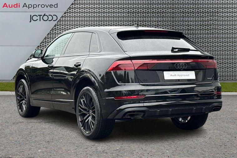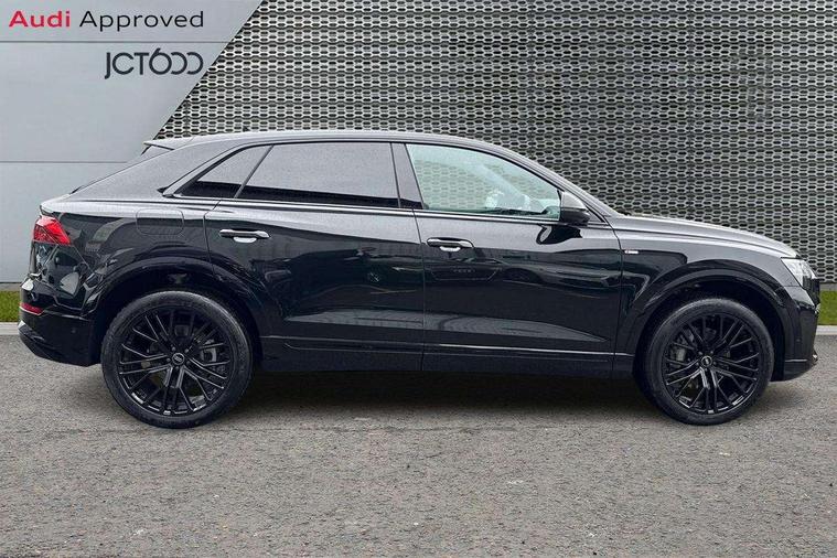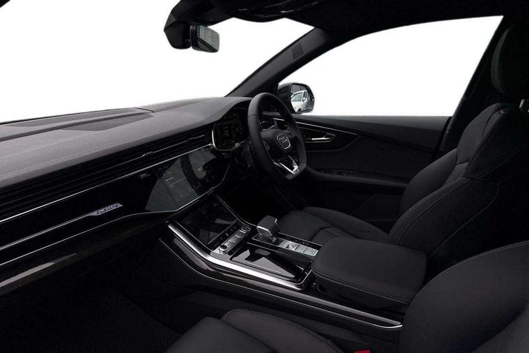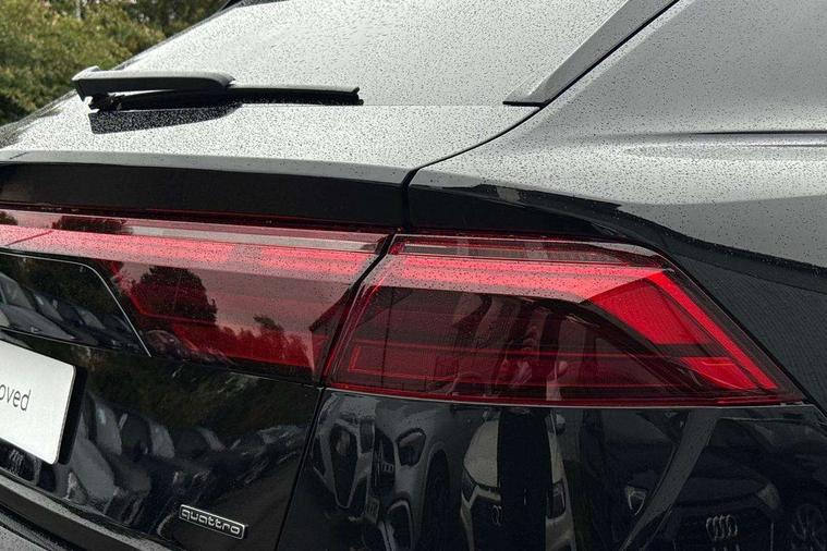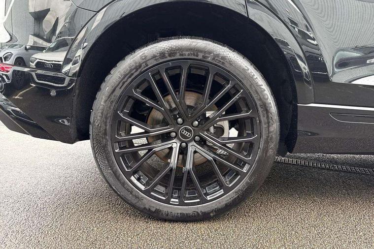10.1" and 8.6" Dual colour touchscreens, Audi application store, Audi connect safety and service (e-call), Audi connect with Amazon Alexa Integration, Audi drive select, Audi parking system plus includes 360 degree display with front and rear sensors, Audi phone box light with wireless charging, Audi virtual cockpit - 12.3" high resolution LCD display with fully customisable instrument cluster, Automatic start/stop system, Bluetooth, Electro-mechanical PAS, Low washer fluid indicator, MMI navigation plus with MMI touch, Natural voice recognition, On board computer, Operating buttons in black, glass look with haptic feedback, Power operated tailgate, Rear view camera, Service interval indicator, Smartphone interface includes wireless Apple carplay/Android Auto, 48V Mild hybrid technology, Adaptive sport air suspension, Diesel particulate filter, Quattro all wheel drive with self locking centre differential, Audi music interface with 2 USB ports with charge and data functions, Audi sound system with 6 channel amplifier, 180 watt amplifying capacity and 10 loudspeakers including subwoofer, Aux-in socket, DAB Digital radio, 3rd brake light, Audi beam, Auto dimming frameless rear view mirror, Black exhaust tailpipes, Black single frame mask, Coming/leaving home lighting function, Electric front+rear windows, Electrically folding auto dimming/adjustable/heated door mirrors with memory function, LED side indicators and kerb view function for passenger side, Headlight washers, Heat insulating glass in windshield, LED rear light plus, LED signature daytime running lights, Loading edge protection in stainless steel, Matrix LED headlights with dynamic front and rear indicators, Platinum grey front spoiler lip and diffuser insert with honeycomb grille in black, Privacy glass - dark tinted rear and rear side windows from B-pillar backwards, Rain and light sensors, Rear side wing doors, Rear wiper, Singleframe grille surround in matte platinum grey, 2 zone automatic climate control, 3 bench rear seats in 2nd row, 4-way lumbar support for front seats, 40:20:40 split folding rear bench seat, Black cloth headlining, Comfort front centre armrest, Driver seat memory function, Electrically adjustable front seats, Front head restraints, Front/rear floor mats, Heated front seats, ISOFIX child seat mounting for front passenger seat and 2 outer rear seats with top tether child seat mounting for all 3 rear seats, LED interior ambient lighting, Luggage compartment sill protection in stainless steel, Rear centre armrest with 2 cupholders, Rear headrests, Seat cushion displaceable by 100mm in the ratio 60:40, Single front passenger seat, Stainless steel pedals, Sunvisors with illuminated vanity mirrors, Black styling pack plus - Q8, 3 point seatbelts on all seats, Audi pre sense front, Convenience key with safelock, Driver and front passenger, front side and curtain airbags, Electromechanical parking brake, Electronic Stability Control (ESC) including ABS, ASR and EDL, Front passenger airbag deactivation, Hill descent control, Hill hold assist, Predictive pedestrian protection, Seatbelt monitoring, Traction control, Tyre pressure loss indicator, Warning triangle and first aid kit, Anti theft alarm with tow away protection, Anti-theft wheel bolts and wheel loosening detection, Electronically operated child lock, Immobiliser, Keyless go with remote central locking, Polished oak trim with grey finish inlay, Tool kit, Tyre repair kit,