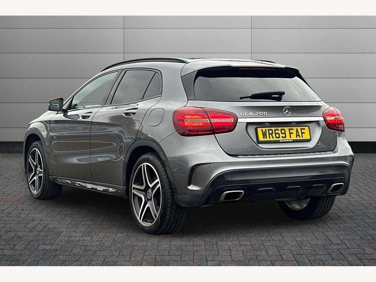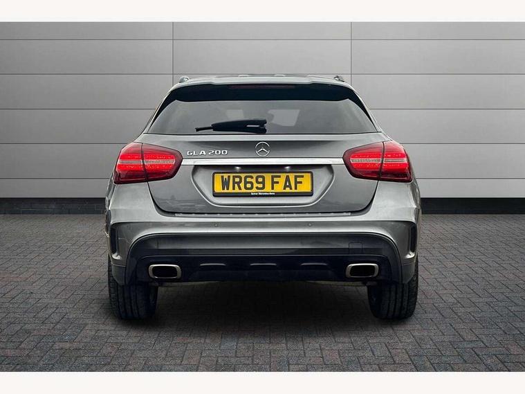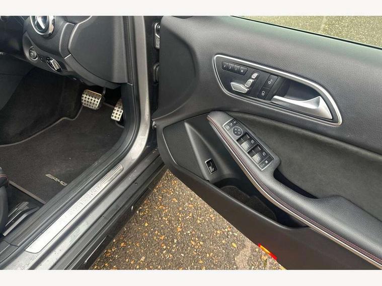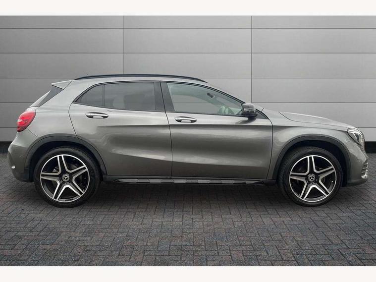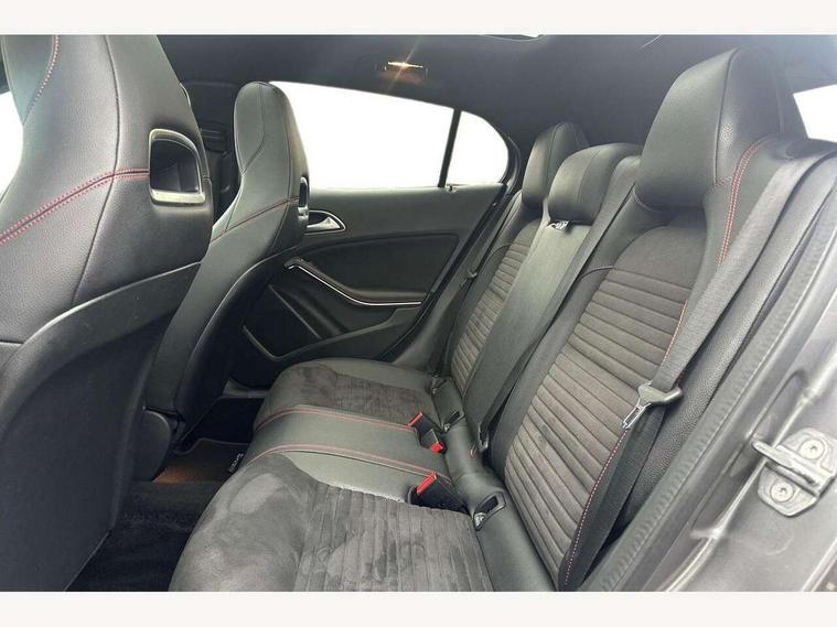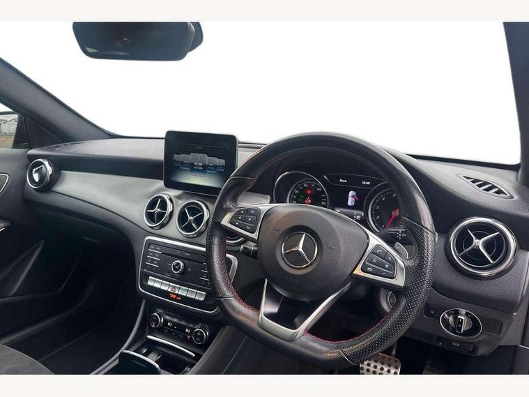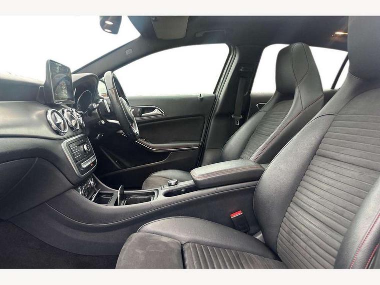 180 degree reversing camera with parking guidelines, 4 analogue dials and needles suspended in six o'clock position, Attention assist, DYNAMIC SELECT with a choice of driving modes (ECO, Comfort, Sport and Individual), Easy-pack tailgate - Powered opening/closing automatically, ECO start/stop function, Fluid level warning indicator for fuel, oil, coolant and washer fluid, Instrument cluster, Mercedes me connect including emergency call system, accident recovery, breakdown management and maintenance, Multi function trip computer, Outside temperature gauge, Parking pilot with front and rear parking sensor and steering assist, Service indicator (ASSYST), Smartphone integration with Apple CarPlay and Android auto, Sports speed sensitive direct steer system with servo assistance, Off road comfort suspension, 8" media display touchpad, Audio 20 radio/single CD/MP3, 6 speakers, telephone keypad, twin radio tuner, Bluetooth, 2 USB ports, SD card slot and Garmin Map pilot nav system, Media interface, Adaptive brake lights, Automatic headlamp activation, Body colour door handles with chrome inserts, Body coloured bumper with front and rear apron trim in matt titanium grey, Chrome beltline strips, Electric front windows, Electrically adjustable and heated door mirrors, Front door sills with Mercedes-Benz lettering, Front fog lights, Full LED tail lamps, Heat insulating dark tinted privacy glass from the B-pillar backwards, Heated glass rear windscreen + timer control, LED High performance headlamps with adaptive highbeam assist, LED third brake light, Panoramic sliding sunroof, Rain sensor windscreen wipers with two sensitivity stages, Rear windscreen intermittent wiper with automatic activation when reversing, Roof mounted radio aerial, Two pipe visible exhaust system with chrome tailpipe tips, 1/3 to 2/3 split folding rear seats, 12 colour Ambient lighting, 12V power socket in centre console, 12V socket in luggage compartment, 3 spoke and 12 button flattened bottom multifunction steering wheel trimmed in nappa leather with perforated leather grip area, Air conditioning - Two zone thermotronic luxury automatic climate control with display, Air vents with chrome surround and cruciform nozzles, Ambient lighting in front headrests, AMG brushed stainless steel sports pedals with rubber studs, AMG floor mats with AMG lettering and stiched edging, Artico man-made leather/Microfibre Dinamica upholstery with red contrast stitching, Auto Mercedes-Benz child seat recognition sensor, Black roof lining, Electrically adjustable front memory seats with four way lumbar support, Front centre armrest with stowage, Front footwell lights, Front seat cushion length adjustment, Gearshift paddles, Heated front seats, Illuminated door sills, Illuminated glove compartment stowage, Interior door handle illumination, Luggage compartment cover, Manually height and reach adjustable steering column, Rear footwell lights, Rear Reading Lamps, Sports seats with integrated head restraints, Stowage compartment beneath load compartment floor, Stowage compartment lighting, Sunvisors with illuminated vanity mirrors, Twin front cup holders, Two outer rear seat isofix and top tether child seat fixing points, White courtesy and red warning lights in front doors and boot lid, Comfort seat pack - GLA Class, Keyless go comfort pack - GLA Class, Mirror pack - GLA Class, 3 rear three point seatbelts, Active bonnet pedestrain safety measure which detects an impact and raises bonnet by 65mm, Active brake assist, Adaptive brake assist with hold function and hill start assist, Anti-lock braking system (ABS), Black seat belts, Childproof locks manually operated for rear doors and electrically operated for rear power windows, Crash responsive emergency lighting, Drivers knee airbag, Dual stage driver and front passenger airbags, Electronic parking brake, Electronic stability programme with acceleration skid control, Front and rear seatbelt reminder, Front passenger seat occupancy sensor, Front side airbags, Tyre pressure monitoring system, Warning triangle and first aid kit, Window airbags, Anti-theft alarm system/interior protection with tow-away protection and interior monitoring systems, Chrome surround electric key, Remote central locking, Light aluminium with longitudinal grain interior trim, Run flat tyres,
