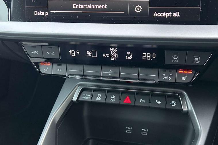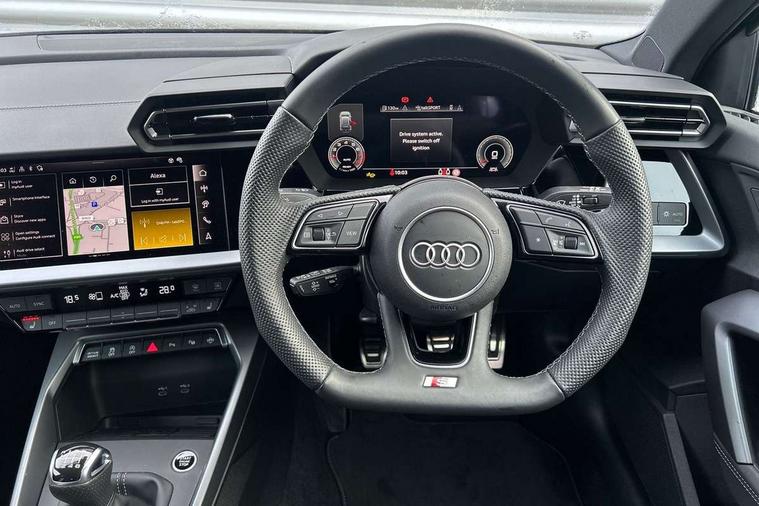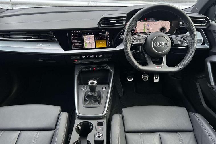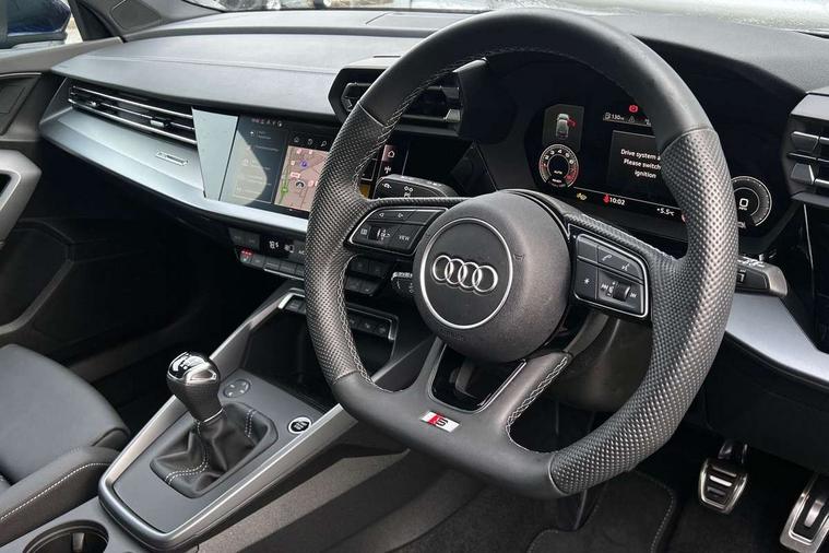 Adjustable speed limiter, Audi drive select, Audi smartphone interface with app store includes wireless Apple carplay, Android auto and Amazon alexa integration, Audi virtual cockpit plus - 12.3" full HD resolution dynamic digital instrument cluster, Automatic start/stop system with recuperation, Bluetooth interface, Camera based traffic sign recognition, Collision avoidance assistant, Cruise control, Distraction and Fatigue warning, e-Call (emergency call), Electromechanical power speed sensitive steering, Lane departure warning system, MMI Navigation Plus with high resolution 10.1" colour touch screen display, Park Assist with parking system Plus, Service indicator, Tailgate, Trip computer, Voice control system with natural language interaction, Sports suspension, Audi Phonebox light with wireless charging, Audi sound system - 10 loudspeakers including centre loudspeaker and subwoofer, DAB Digital radio, USB ports with charging function in the rear, Acoustic glass windscreen, All weather light, Aluminium window trim, Auto dimming frameless rear view mirror, Automatic dynamic range control, Body colour exterior mirrors, Chrome exhaust tailpipes, Dipped beam, main beam, position light and turning light, Electrically adjustable/heated/folding/auto dimming door mirrors with integrated LED indications + kerb view function for passenger side, Exterior model badging, Front and rear side air inlets in grained matt black with dark liquid chrome frame, Front electric windows, Front radiator grill in high gloss dark chrome, Heat insulating glass windscreen, Illuminated door sills with aluminium inserts at the front with S logo, Intersection light, LED 3rd brake light, LED brake lights, LED daytime running x3, LED headlights with LED rear lights and dynamic rear indicators, LED rear number plate lights, LED reverse light, LED tail lights, Light and rain sensors, Manoeuvring light, Motorway light, Privacy glass - dark tinted rear window, rear door and side windows, Rear diffuser and grill in grained matt black with inlay in dark liquid chrome, Rear electric windows, Rear side wing doors, Rear wiper, S line bumpers, S roof spoiler, Side S line emblems on front wings, Side sill trim in dark liquid chrome, Static Cornering lights, 12V socket and storage compartment in front centre console, 3 seat bench in 2nd row, 3 spoke flat bottomed multi-function leather sport steering wheel, 3-zone deluxe automatic air conditioning, 4 way electrically adjustable lumbar support for driver and front passenger, 40/20/40 split folding rear seat bench, Black cloth headlining, Black front and rear floor mats, Front and rear centre armrest in artificial leather with contrasting stitching on armrests and instrument panel, Front and rear headrests, Heated front seats, Height and reach adjustable steering wheel, Manual boot compartment lid, Manually adjustable front seats, Rear centre armrest with cupholder, S badging on the steering wheel, Seat side bolsters, Single front passenger seat, Stainless steel pedals and front footrest in black, Twin leather upholstery with front sports seats S embossed logo, Aluminium interior elements pack - A3, Multi-coloured LED interior lighting package with Multi-coloured contour lighting of instrument panel - A3, 3x3 point rear seat belts, Driver and front passenger airbag with passenger airbag deactivation, Electronic Stabilisation Control (ESC) including ABS, ASR and EDL, First aid kit with warning triangle and 2 safety vests, Front side airbags with head airbags and interaction airbag, Hill hold assist, Pre-sense front with pedestrian and cyclist detection, Seatbelt monitoring, Tyre pressure loss indicator, Anti theft alarm, Anti-theft wheel bolts, Electronically operated child locks, Immobiliser, Remote central locking with safelock, Black dashboard, Inlay in dark aluminium spectrum,