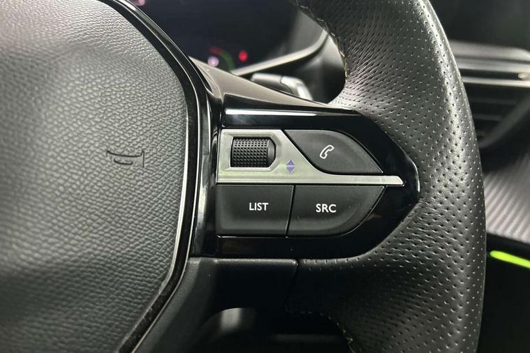 Blind spot monitoring, Bluetooth telephone facility, Connected 3D navigation, Driver attention warning, Exterior temperature indicator with ice warning, Front and rear parking sensors, Lane keep assist, Mirror screen with mirror link, apple carplay and android auto, Multi function trip computer, PEUGEOT i-Cockpit with 10" capacitive colour touchscreen, PEUGEOT i-Cockpit with compact steering wheel, PEUGEOT i-Cockpit with configurable 3D headup instrument panel, PEUGEOT SOS and assistance, Smart phone docking station, Smartphone charging plate, Speed limit recognition and recommendation, Visio Park 1 with 180 degree Colour reversing camera, 2 front USB socket with USB-C, 2 USB sockets in rear, DAB Radio (Digital Audio Broadcasting), Voice recognition for radio, navigation and telephony features, 2 X Rear number plate lights, Automatic front windscreen wipers, Automatic hazard light activation upon heavy brake application, Black diamond roof, Black front wing trim with gloss black detail and GT badging, Body coloured exterior door handles, Chrome Lion Badge front and rear, Dark tinted rear side and tailgate windows, Diamond black mirror shells, Diamond black rear spoiler (roof), Electric, heated, and power folding door mirrors, Frameless electrochrome interior rear view mirror, Front bumper - Silver lower trim, Full LED headlights with smartbeam assist, Gloss black finish on B pillar, Gloss black longitudinal roof rails, Gloss black rear cluster connecting strip, Gloss black roof bars, Gloss black window surround, GT model designation badging on tailgate, Headlights left on audible warning, LED daytime running lights with 3 claw headlight with distinctive tooth design, LED side indicator lights integrated into door mirrors, LED third brake light, Model designation badges front and rear, One touch electric front/rear windows with pinch protection, Radiator grille - Dark chrome chequered and gloss black edge trim, Radiator grille - gloss black top edge trim, Rear full LED 3D peugeot signature claw effect lights with daylight function, Rear reversing lights, Rear side wing doors, Rear windscreen wiper triggered automatically in reverse gear, Stainless steel door sill scuff plates, Tailgate with heated rear windscreen and wiper blade, Twin chromed exhaust pipes, Welcome lighting, Wheel arch extensions, 1/3 to 2/3 split folding rear seats, 12V socket, 3 seat bench in 2nd row, 8 Colour personalisable ambient lighting, Aluminium pedals, Automatic air conditioning with pollen and active carbon filter, Central front armrest with storage compartment, Cobra drive selector, Driver and front passenger sport seats, Electric power steering with reach and rake adjustable steering column, Front and rear carpet mats in black with lime green stitch detail, Front LED interior light with 2 reading spotlights and rear interior light with timer, Front passenger seat manual adjustment - height, longitudinal and back rest angle, Heated front seats, High centre console, ISOFIX child seat mounting points on passenger seat, Lime green contrast stitching to front centre console, door panels and dashboard facia, Mistral full-grain perforated leather steering wheel with Lime Green stitch detail and satin chrome 'GT' emblem, Modular boot floor, Piano keys: Gloss black and chrome toggle switches to access main functions of the vehicle and touchscreen functions, Roof lining - Mistral black, Seatbelt unfastened on the move audible and visual alert for front and rear seats, Single front passenger seat, Switch for Push Button Start finished in black with chrome surround, Visibility pack - 2008, 2x 2nd row ISOFIX child seat mountings, ABS (Anti-lock Braking System) with EBD (Electronic Brakeforce Distribution) and EBA (Emergency Braking Assistance), Acoustic vehicle alerting system, Active safety brake with night function/cyclists/pedestrians, Adaptive driver and front passenger airbags with passenger airbag deactivation function, Child locking functionality on rear doors, Driver/front passenger side airbags, Electric parking brake, ESP (Electronic Stability Program) + Hill Start Assist, Front and rear curtain airbags, Front and rear disc brakes, Front and rear three-point retractable seatbelts, with force limiters, Front optimised safety headrests and rear retractable headrests (x3), height adjustable, Tyre pressure sensor, Alarm system with anti-lift sensor, Automatic door locking when moving off, Deadlocks, Electronic code immobiliser, Exterior door lock x1 (Left-hand or passenger’s side), Carbon effect Dashboard, front and rear door panel finish, 17" Salamanca diamond cut alloy wheels,