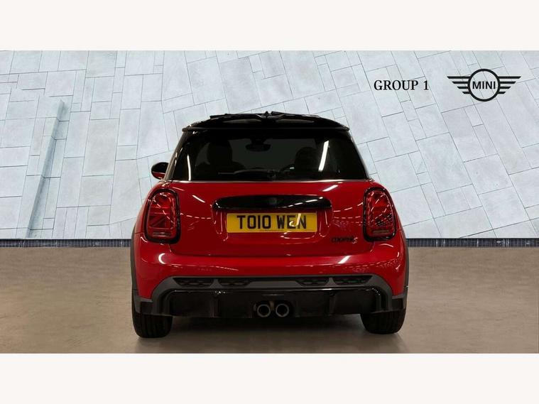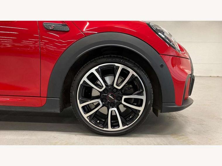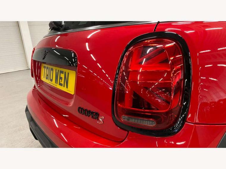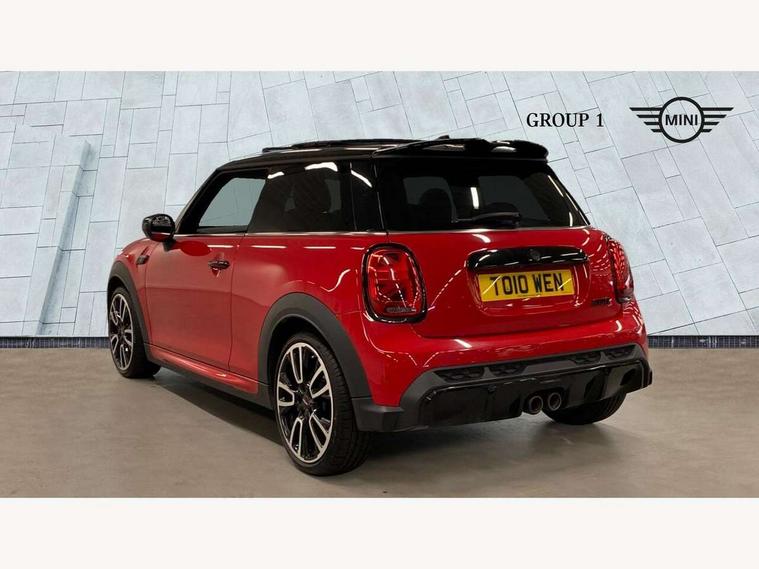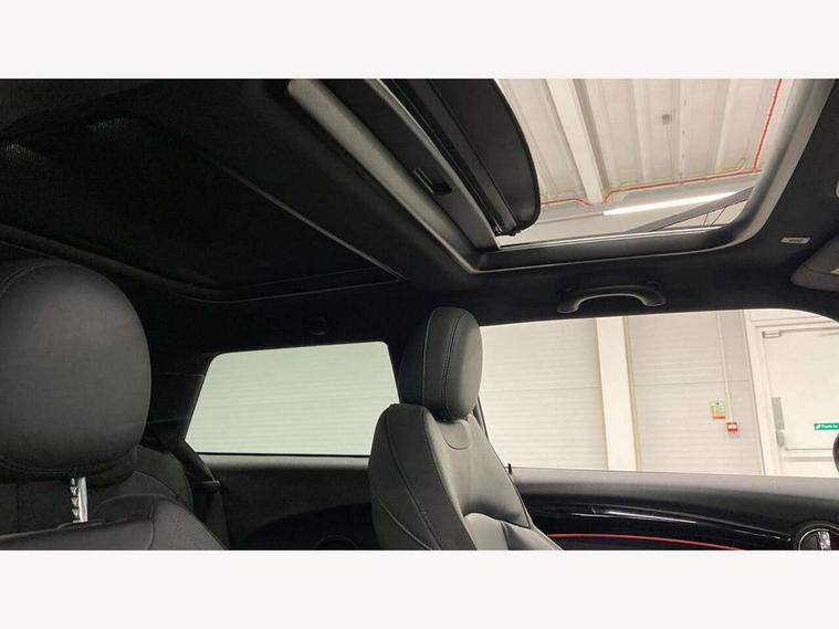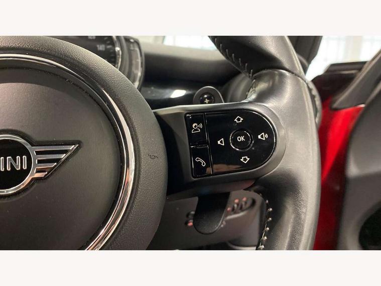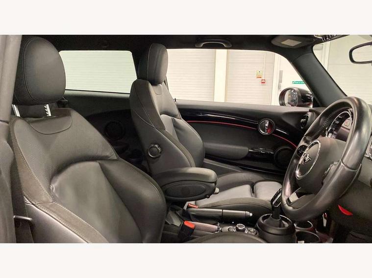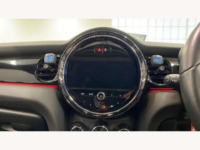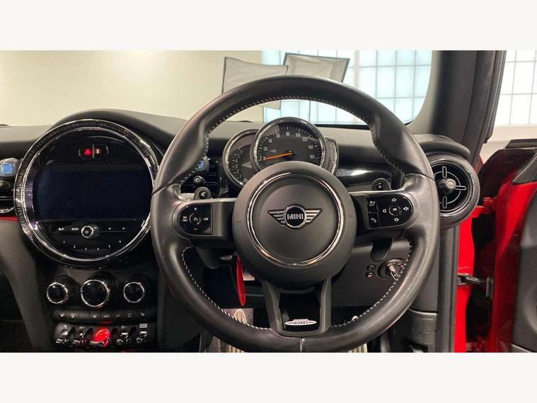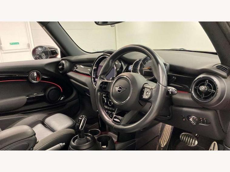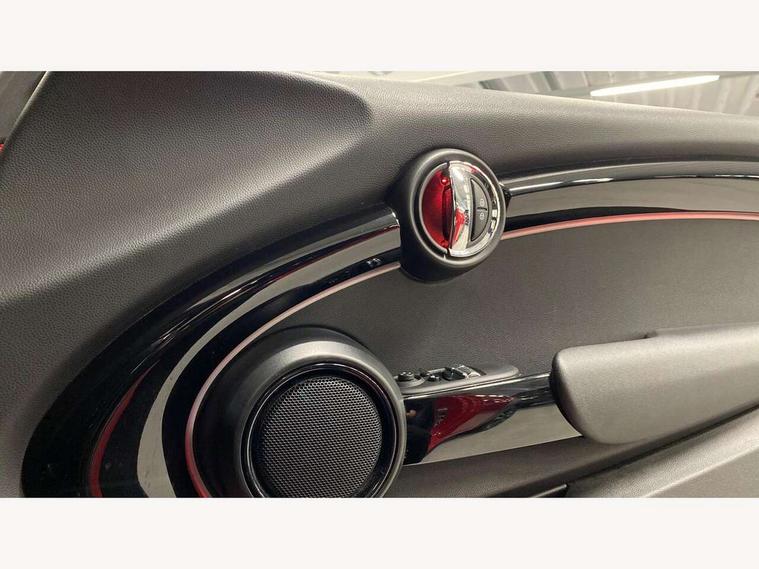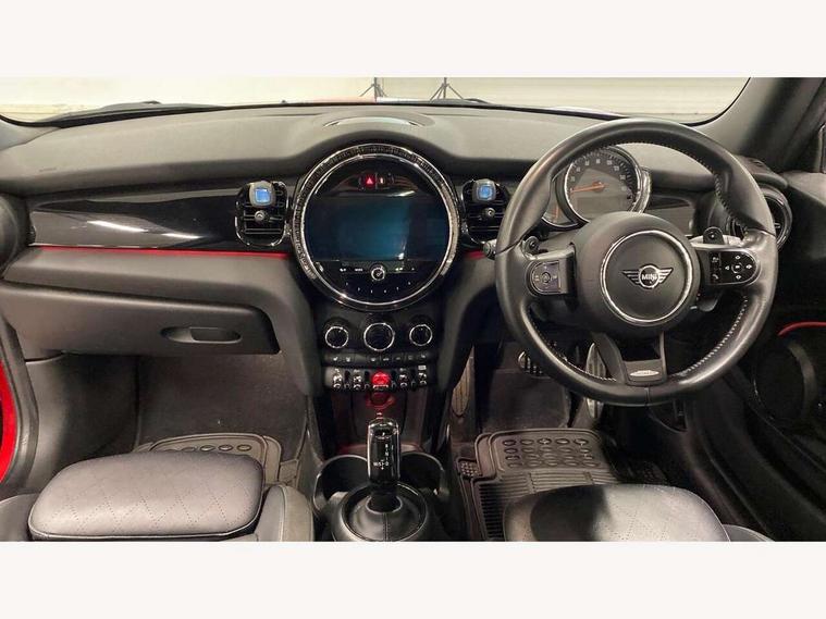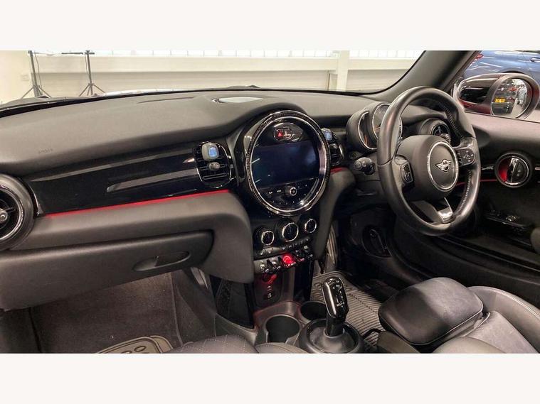 Apple CarPlay, Automatic start/stop function with brake energy recuperation, Compatible mobile phone bluetooth with audio streaming, Cruise control with brake assist, Electro-mechanical speed dependant steering assistance, Flexible car sharing preparation, Instrument cluster, MINI Driving Modes - centre toggle switch to control driving setting (sport, mid and green), Mini E-call, MINI TeleServices, On board computer, Rear park distance control, Service interval indicator, Double Vanos system, Fully variable valve control, High precision injection, Intelligent adaptive suspension, Performance Control, Steptronic sport transmission with double clutch and steering wheel paddles, 8.8" touchscreen with LED ring, FM tuner and DAB digital radio, 3rd brake light, Automatic headlight activation switch, Bonnet scoop, Dynamic brake lights, Electric front windows, Heated rear window, Heated windscreen washer jets, JCW Aerodynamic kit - Front and rear bumpers with sporty JCW styling and part-painted side sills with MINI John Cooper Works door sill finishers, John Cooper Works rear spoiler, LED headlight with closed ring and daytime driving lights, Metal door sill strips with Cooper S, Model logo Cooper S on right of tailgate, Radiator grille chrome border with honeycomb structure including S Badge, Rain sensor window wipers, Rear fog lights, Rear LED lights with union jack design, Rear window wiper, Side scuttle panel with integrated indicator, Sun/heat protection glass, Two central exhaust tailpipes with chrome finisher, White indicator lenses, 12V Accessory socket in centre console, 2 seat bench in 2nd row, 4 lashing eyes in luggage compartment, 60/40 split folding rear seat, Anthracite headliner including grab handles and clothes hooks, Carbon black colour line - Knee roll and door armrest, Chrome interior highlights, Cupholders, Front and rear isofix with front passenger airbag deactivation, Front floor mats in velour, Glove compartment, Height and length steering column adjustment, Interior lighting with 12 different colours across the dashboard, underneath door bezel with illuminated laser-engraved design on central display, JCW Sport seats with integrated headrests, adjustable thigh support and John Cooper Works logo, Leatherette gearshift lever and handbrake gaiters, LED reading lights, vanity mirror lights, front foot well light and spotlight on front seats, Manual air conditioning, Mechanical seat adjustment - forward/back & backrest for front seats and driver seat height adjust, Multifunction steering wheel, Passenger seat height adjuster, Single front passenger seat, Storage compartments in doors, Storage pocket on back of front seats, Sunvisors with vanity mirrors, Walknappa leather steering wheel with grey seam and John Cooper Works badge on Piano Black lower steering wheel spoke, Piano black exterior pack - Mini Hatchback Cooper S, 3 point seatbelts on all four seats, 6 Airbags - front, side, head and seat belt tensioners, Anti-lock braking system (ABS), DSC - Dynamic Stability Control, Front and rear disc brakes, Two tone horn, Tyre pressure monitoring system, Alarm system with tilt sensor, monitoring doors, bonnet interior and tailgate, Electronic vehicle immobiliser, Start/stop toggle with keyless go, Piano black interior trim, Tool kit,