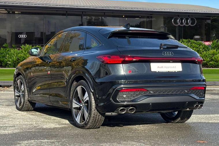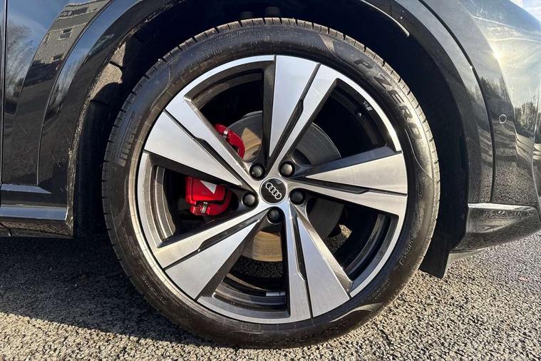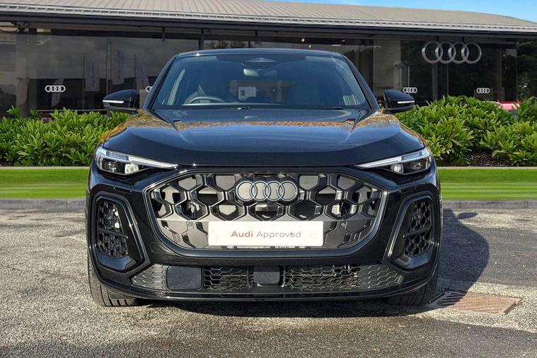 Adaptive cruise assist plus with steering intervention, Advanced driver attention alert, Audi application store, Audi connect emergency call and service, Audi digital key, Audi drive select, Audi smartphone interface, Audi virtual cockpit plus with 11.9" OLED colour display, Camera based traffic sign recognition, Fatigue monitor, Front cross traffic intersection assist, Garage door opener, Lane change assistant with exit warning system, rear cross traffic alert and rear turn assist, Lane departure warning with emergency assist, MMI 10.9" front passenger touch display, MMI navigation plus with high resolution 14.5" OLED touchscreen colour display, Park assist plus, Parking system plus with 360 display, PAS, Reversing camera, Swerve assist and turn assist, Top view camera, Traffic sign based speed limiter, S adaptive air suspension, 2 USB-C ports in both the front and rear, DAB Digital radio, Smartphone compartment with wireless charging, Acoustic glass for front door windows, Active digital light signatures - Six additional combinations of active daytime running light signature, Auto dimming rear view mirror, Black door mirrors, Black roof rails, Coming/leaving home lighting function, Contrast bumpers in mythos black metallic paint finish, Digital OLED tail lights including communication light, Electrically adjustable heated and folding + automatically dimming exterior mirrors, Entry LED with red and white rhombus S logo projection, Exhaust tailpipes in dark chrome, Front and rear electric windows, Front door sill trims with aluminium inlays, illuminated with 'S' logo, Headlight cleaning system, Heated rear window, High beam assist, High gloss window surrounds, Inlay and front air inlets in matt anthracite chrome, Logo projection light in exterior mirrors, Matrix LED headlights, Memory function for door mirrors, Privacy glass, Projection light for rear window, Radiator grille in phantom black, Rear and side windows with heat insulating glass, Rear honeycombe grille in matt black with inlay in matt anthracite chrome, Rear side wing doors, Rear wash/wipe, Red S rhombus badging with 'S' lettering on rear, S exterior styling, Towbar preparation, Windscreen with acoustic glazing, 3 rear head restraints, 3 seat bench in 2nd row, 3 spoke leather steering wheel with multi-function buttons with touch control, flattened on top and bottom, with S badging and contrast stitching, 40:20:40 split folding rear seat bench with centre armrest and cup holders, Comfort centre armrest, Deluxe 3 zone electronic climate control, Electric steering wheel adjustment, Electrically adjustable front seats with memory function for driver's side, Front and rear floor mats, Front seat ventilation, Front sport seats with integrated head reastrains, Headlining in black cloth, Heated front seats, Heated outer rear seats, Heated steering wheel, i-Size child seat mounting on the front passenger side and outer rear seats, i-Size and top tether on the outer rear seats, Interior trim in aluminium look, Luggage compartment lid, electrically opening and closing, Perforated fine nappa leather with diamond stitching incl. ventilation and massage function for front seats, Pneumatically adjustable lumbar support with massage function for front seats, Single front passenger seat, Softwrap in Dinamica, Stainless steel pedals and footrest, Steering wheel grips in perforated leather and shift paddles, Ambient lighting package plus - Q5, Black styling package plus - Q5, Sound and Vision pack - Q5, Storage and luggage compartment pack - Q5, Vanadium pack - Q5, 3x3 point rear seatbelts, ABS, Acoustic vehicle alerting system, Convenience key with safelock, Driver and front passenger airbag with passenger airbag deactivation, Electric child safety locks, First aid kit with warning triangle and high visibility vests, Front emergency brake assist, Front side airbags with head airbag system and front interaction airbag, Hill hold assist, Occupant detection in rear seat area, Proactive passenger protection system for front, sides and rear, Red brake calipers, Side airbags in front and rear with head airbag system and front interaction airbag, Tyre pressure loss indicator, Anti theft alarm, Anti-theft wheel bolts, Remote control key with SAFELOCK and keyless go, Black dashboard with contrast stitching, Carbon micro twill structure inlay, Steel grey seat stitching, Upper and lower interior elements in dinamica microfiber, 21" 5 arm slit black metallic, gloss turned finish Audi Sport alloy wheels, Tyre repair kit,