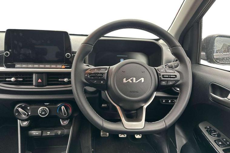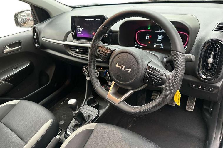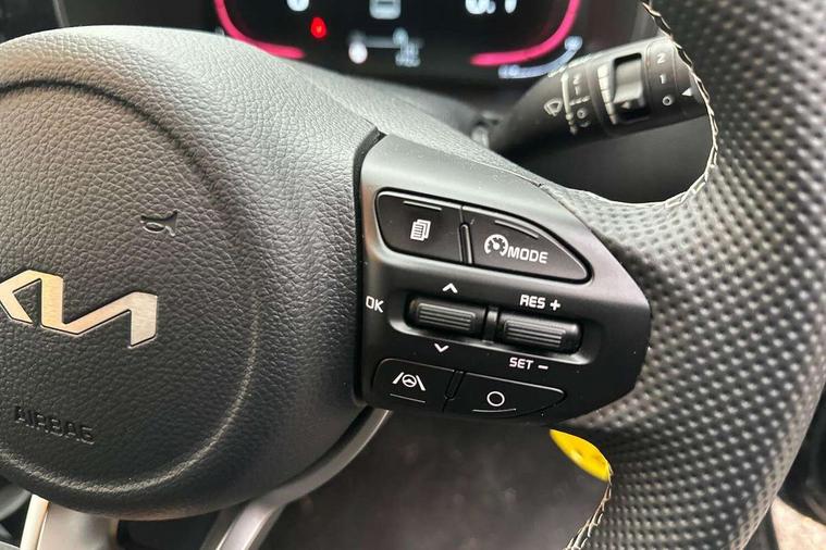 4.2" driver display screen, 8" touchscreen navigation, Apple car play/Android Auto with voice control, Cruise control + speed limiter, Emergency call service, Emergency stop signalling system, External temperature gauge, Forward Collision-Avoidance Assist (FCA) 1.0 - City/Pedestrian/Cyclist, Intelligent speed limit assist, Kia Connect (UVO), Lane Follow Assist 1.0, Lane keep assist, Motor driven power steering, Rear parking sensors, Reversing camera system, Tachometer, Trip computer, 4 speaker audio system, Bluetooth with music streaming, USB ports for connection of a media device, Automatic defog system, Automatic headlight control system, Body colour bumpers, Body colour side sill mouldings, Body coloured wheel arches, Electric adjustable/heated/folding door mirrors with LED indicators lights, Electric front and rear windows, Electric front touch drivers front window, Gloss black door mirrors, Gloss black radiator grille, GT-Line exterior styling, Headlamp levelling, Heated rear window, High mount brake light, LED daytime running lights, LED Headlights, LED rear lights, Privacy glass - Rear windows and tailgate, Rain sensor, Rear fog lights, Rear side wing doors, Rear wiper, Silver window surround, Speed variable front wipers, Tinted windshield glass, Visible VIN plate, 12V power point front, 3 seat bench in 2nd row, 60:40 Split folding rear seats, All round height adjustable headrests, Alloy pedals, Artificial leather steering wheel, Artificial leather upholstery, Centre console storage box, Driver and front passenger sunvisor with vanity mirror, Front and rear door storage, Front cabin lights, Front passenger USB-C charging port, Glovebox, Grey headlining, GT-Line Interior Styling, ISOFIX Child seat top tethers and anchor fixings, Luggage area light, Luggage area parcel shelf, Luggage board, Luggage net + hook, Manual adjust steering wheel, Manual adjustable driver and front passenger seat, Manual air conditioning, Rear cabin lights, Rear USB charging port, Single front passenger seat, All round 3-point seatbelts, Anti-lock braking system (ABS), Electronic stability control, Front + rear side airbags, Front airbags, Front passenger airbag cut-off switch, Front seatbelt height adjusters, Hill hold control, Hill start assist control (HAC), Rear airbags, Seatbelt warning, Side impact protection, Torque vectoring brake based and straight line stability (SLS), Traction control, Tyre pressure monitoring system, Vehicle stability management, Anti theft alarm, Engine immobiliser, Folding key, Locking wheel nuts, Manual child locks, Rear occupant alert, Remote central door locking, Thatcham category 2 security alarm and immobiliser, 16" alloy GT-Line wheels, Tyre mobility kit,