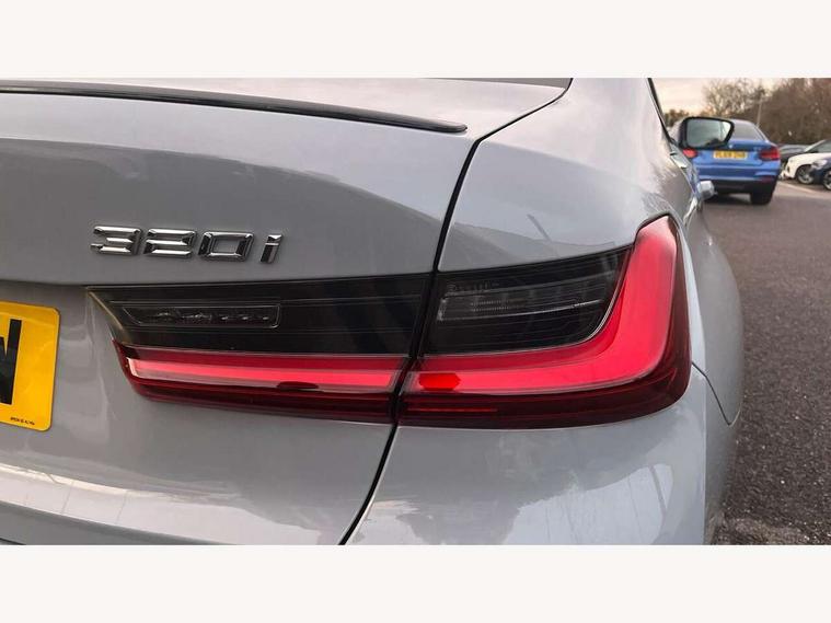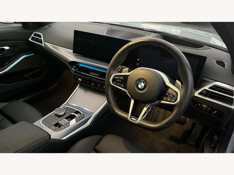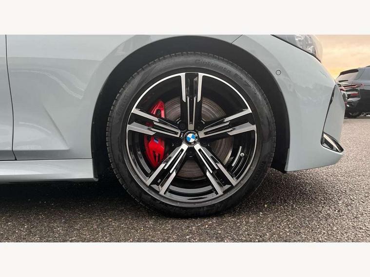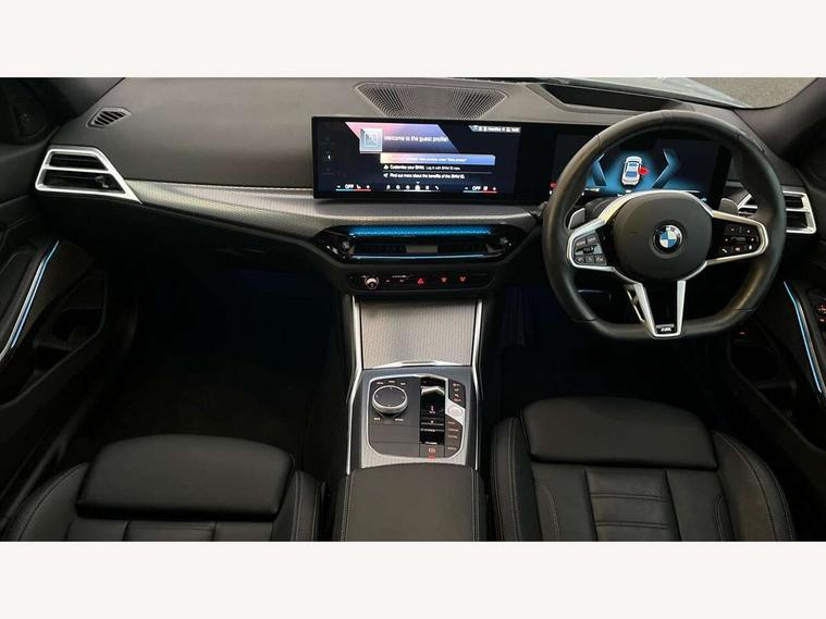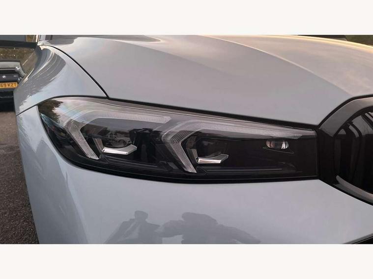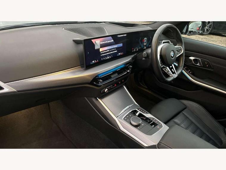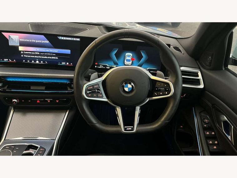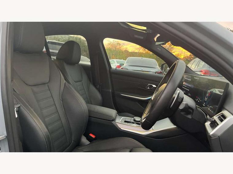 Active guard plus, Attentiveness assist, Automatic Start/stop button, Bluetooth Wi-Fi interface, BMW iDrive, BMW Teleservices, ConnectedDrive Services - last state call, Live cockpit plus with Navigation + 12.3" instrument display + 14.9" display, Intelligent voice assist, 2 USB, 4G LTE connect, Oil sensor for level and grade, Personal e-SIM, Shifting point display, Variable sport steering, Double joint spring strut front axle, Fuel tank breather system, Sport automatic transmission with steering-wheel mounted gearshift paddles and launch control, DAB tuner, 3rd brake light, Auto dimming rear view mirror, Automatic headlight beam throw control with load dependent regulating reaction, dynamic compensation of braking dive and acceleration squat, Bi-LED Low and high beam headlights, BMW emblem, engine compartment lid and tailgate, Body colour roof fin, Door sill strips, Electric windows - front and rear, with open/close fingertip control, anti-trap facility and comfort closing, Fading support, Follow me home headlight function, Front and rear bumper system with replaceable deformation elements, Front apron plastic in body colour, Fuel filler flap - right rear in body colour, Heat protection glazing on front windows and windscreen, Heated washer jets, High gloss chrome kidney frame with high gloss black kidney struts, LED daytime running lights, LED rear lights, LED turn indicator, Licence plate panel integrated into front bumper and tailgate, M high gloss shadow line exterior trim, Matt black B-pillar finsher, Matt black window recess cover, One piece front bumper cover including towing eye cover in body colour, Rain sensor with automatic headlight activation, Rear boot, Rear side wing doors, Reversing lights, Side frame decorative moulding black matt, Trailer stabilisation logic, Visible exhaust tailpipe finisher, Welcome lights in interior and door handle area, 12V power socket in front storage compartment, 2 front cupholder in centre console with clamping elements and matt black inlay, 3 seat bench in 2nd row, 3 spoke M Sport multifunction flat bottom leather steering wheel, 3 zone automatic air conditioning, 40:20:40 split folding rear seat with loading system, Anthracite headlining, Armrest integrated in front and rear door trim + front centre console armrest, BMW ID, Cruise control operation in steering wheel, Driving experience mode switch, Folding rear centre armrest with 2 cupholders, Front and rear headrests, Front and rear velour floor mats, Front footwell lighting, Front reading light, Heated front seats, Height adjustable mechanically and infinitely variable steering column, Illuminated armrest storage compartment, Illuminated glove compartment, Illuminated luggage compartment, Lashing eyelets in luggage compartment, Single front passenger seat, Sunvisors with illuminated vanity mirrors and ticket pocket, Toolkit located in luggage compartment, Connected pack professional - 3 Series Saloon/Touring, Interior and exterior mirror pack - 3 Series Touring/Saloon, M sport exterior styling pack - 3 Series Saloon/Touring, Parking assistant pack - 3 Series, 3x3 point rear seatbelts, BMW emergency call, Child locks on rear doors, Crash sensor activating of airbags, Unlocking doors, hazard warning lights, interior light, safety battery terminal, Drive-off assistant, Driver and front passenger with seat occupancy detection for driver's and passenger side, Driver and passenger side airbags, body protection at side and airbags deploy from seat backrests, Dry braking, Dynamic brake control, Dynamic stability control + (DSC+) - Anti-lock Braking System (ABS) with brake assist and cornering brake control + Automatic Stability Control (ASC), Dynamic Traction Control - DTC, Electric parking brake including automatic hold function and automatic release of the parking brake when driving off, Electronic differential lock control (EDLC), Front airbag deactivation, Front airbags for driver and front passenger, Head airbags in 1st and 2nd row, head protection at side, curtain airbags open from headliner above 1st and 2nd row, Plastic fuel tank, Side impact protection, Tyre pressure sensors, Ventilated front and rear disc brakes, Warning triangle and first aid kit, Alarm system, Centre lock switch, Closing system with central locking, Electronic vehicle immobiliser, Locking wheel bolts,