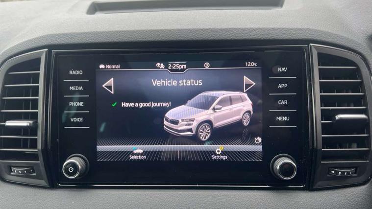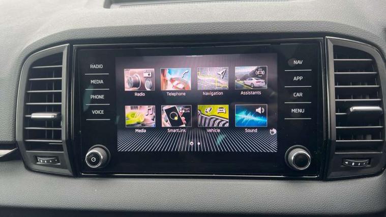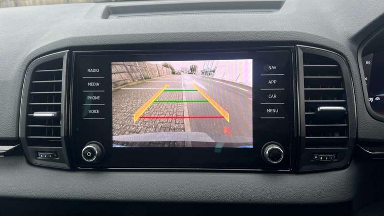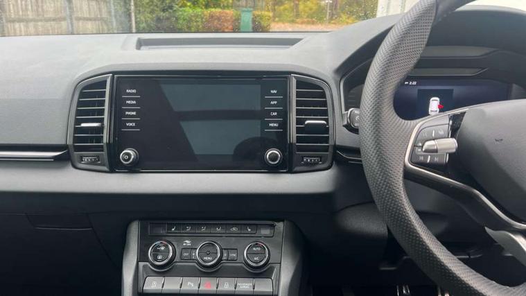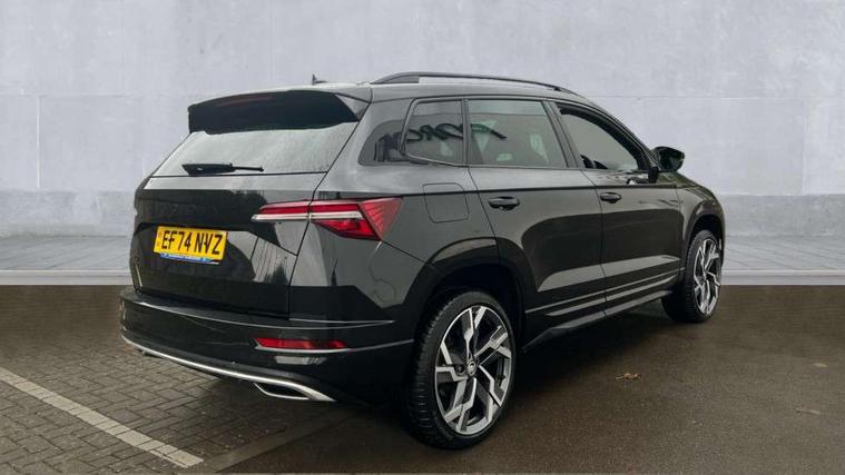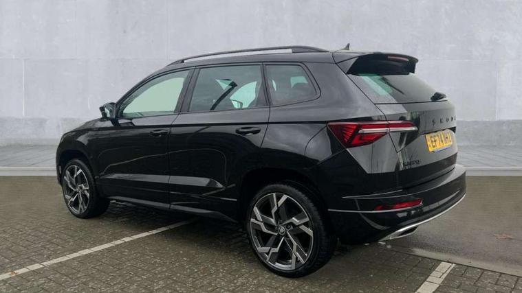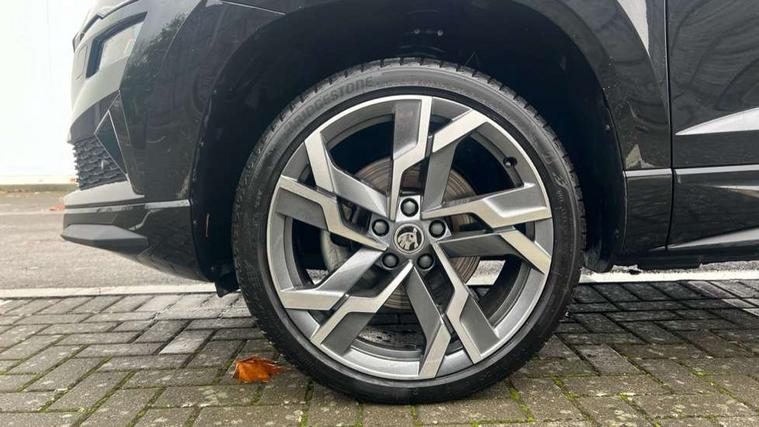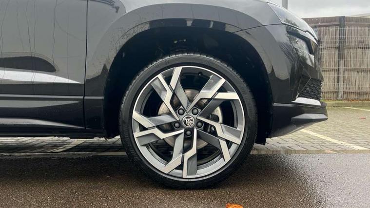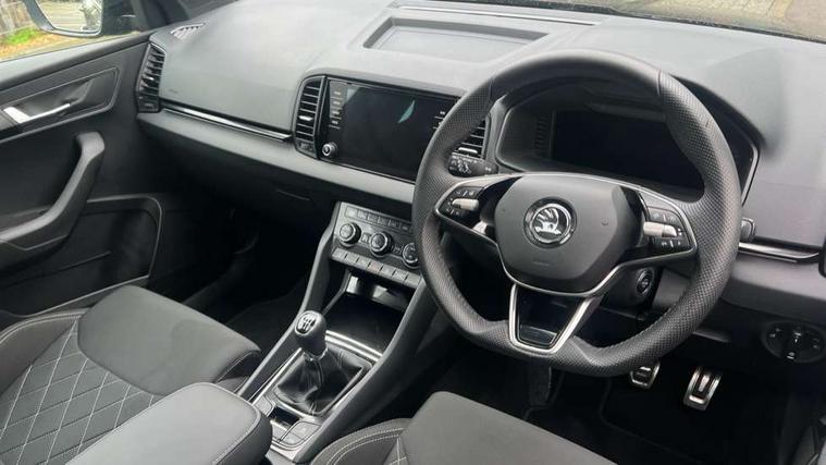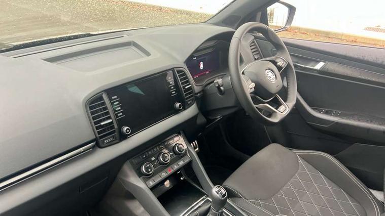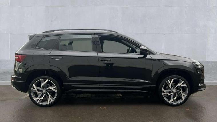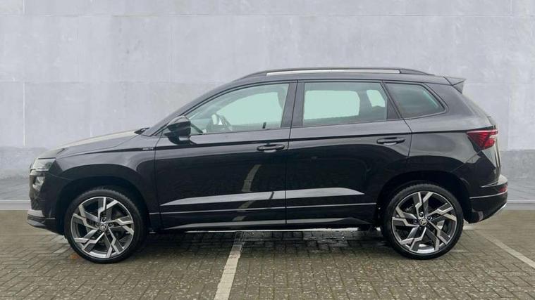 8" Digital display, Advanced driver attention and drowsiness monitor, Emergency services call system, Outside temperature gauge, Sensor for driver assistance systems, Service interval indicator, SmartLink wireless for Apple and wired for Android, Start/stop system with regenerative braking, USB C Port x 2 in front centre console, Virtual Cockpit - 10.25" digital display, Virtual pedal with electrically operated boot door, Wireless smartphone charging, DAB radio with Bluetooth, USB connection, Acoustic glass, Aero front windscreen wipers with intermittent function, Auto dimming rear view mirror with light and rain sensors, Black door mirrors, Black electric window control buttons, Black radiator grille, Black roof rails, Body colour door handles, Electric front and rear windows with child proof lock, Front door steps with SportLine logo, Heated rear windscreen, LED daytime running lights, LED rear lights with high functionality welcome effect and dynamic indicators, Light assistant (coming/leaving home/tunnel light), Panoramic sliding sunroof, Plastic scuff plates in door apertures, Privacy glass, Protective door side sills in body colour, Rear diffuser, Rear side wing doors, Rear spoiler, Rear window wiper with washer system and intermittent control, Safety reflectors on front doors, Skoda lettering on tailgate in black, Sportline badge on front fender, Sportline decorative inserts with badging, Sports front and rear bumpers, Third brake light, 1.5 litre bottle holders in driver and front passenger door panels, 12V socket in boot, 12v socket in front centre armrest with storage compartment and rear air vents, 2 x Tablet holder, 3 rear height adjustable headrests, 3 seat bench in 2nd row, 3 spoke sports leather heated multifunction steering wheel, 4 foldable roof handles with rear coat hooks, Black floor carpet, Black roof headlining, Chrome inner door handles, Foldable hooks in the boot, Front head restraints, Height adjustable front three point seats belts with tensioners, Height/reach adjust steering wheel, Ice scraper, Illuminated glovebox, Illuminated luggage compartment, Isofix child seat preparation for front passenger seat, Isofix child seat preparation outer rear, Manual lumbar support for front seats, Pen holder, Pollen filter, Rear boot cover, Rear reading lights, Rear seats fixed folding and divided 60:40, Rubbish bin door, Safety vest holder, Single front passenger seat, Storage box in upper central dashboard closed, Sunvisors with illuminated vanity mirrors, Textile floor mats, Ticket holder, Titan black interior ceiling, Umbrella under passenger seat, Under passenger seat storage compartment, LED Interior lighting pack with Skoda welcome logo - Karoq, Light Pack - Karoq, Non Smokers pack, Automatic door unlocking in case of crash, Automatic fuel cut off in case of crash, Driver airbag, Electronic parking brake with auto hold function, Emergency rear braking signal, ESC (incl. ABS+MSR+ASR+EDS+HBA+DSR+RBS+MKB), Front side airbags, Head airbags, Hill hold control, Knee airbags, Passenger airbag with switch-off function, Pedestrian monitor, Seatbelt reminder signalisation and pretensioner for all seats, Three point seatbelts rear, Two tone horn, Tyre pressure monitor, Alarm with interior monitoring, back up horn and tilt sensor with safe function, Electronic engine immobiliser, Keyless entry and start/stop, Remote central locking with 2 remote folding keys, Black air vent surround, Black centre console, carbon door decor, Satin black dashboard, Satin black door trim, 19" Sagittarius anthracite alloy wheels, Anti-theft wheel bolts protection, Breakdown and tool kit,