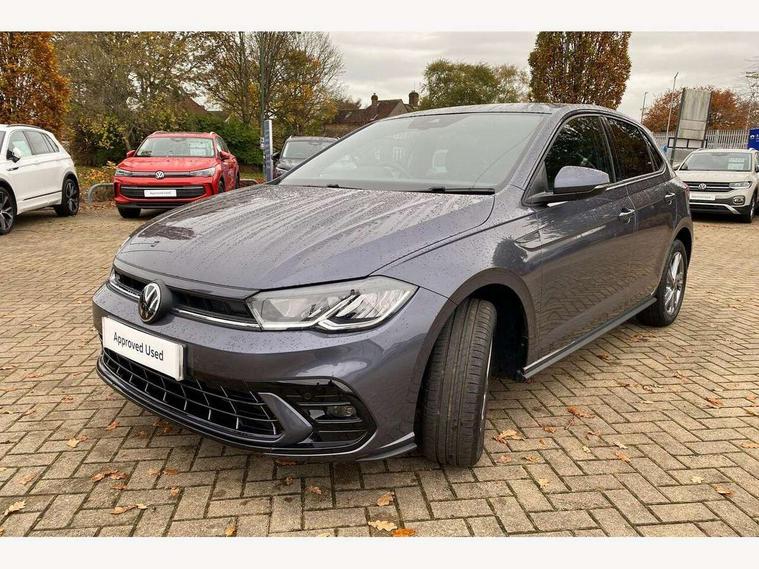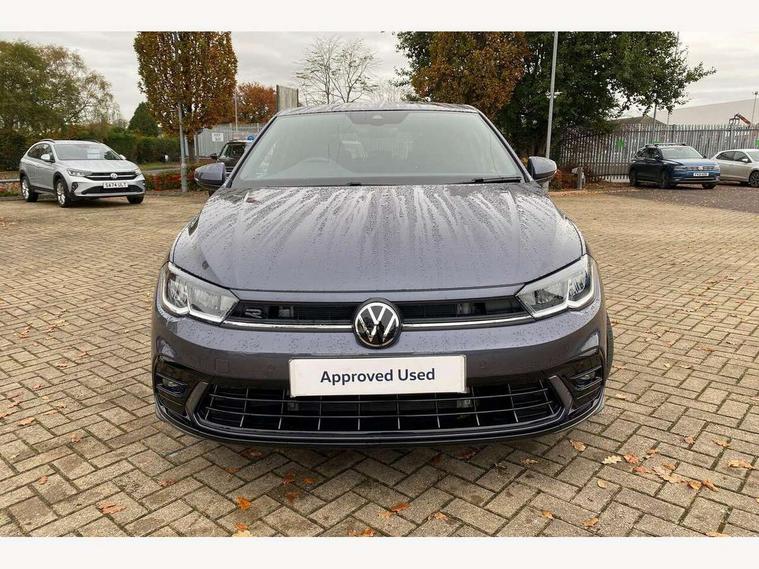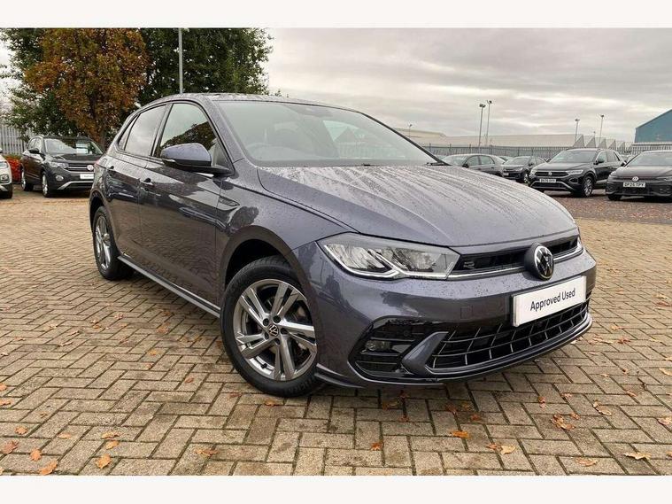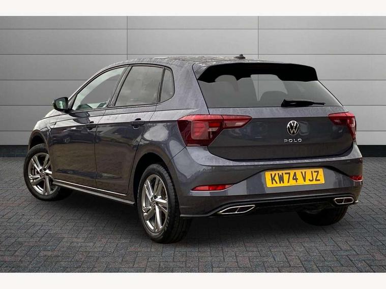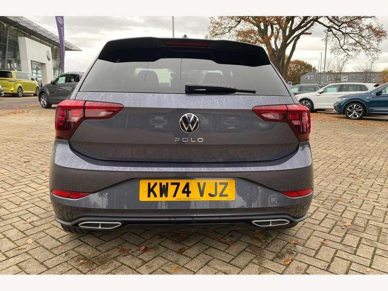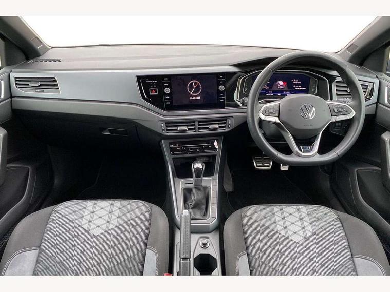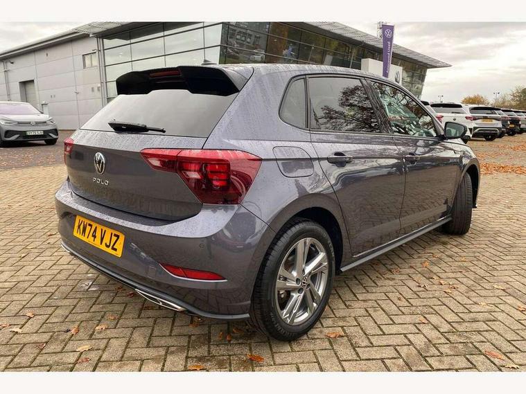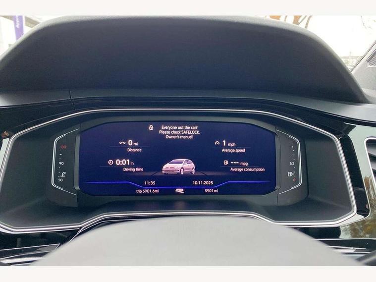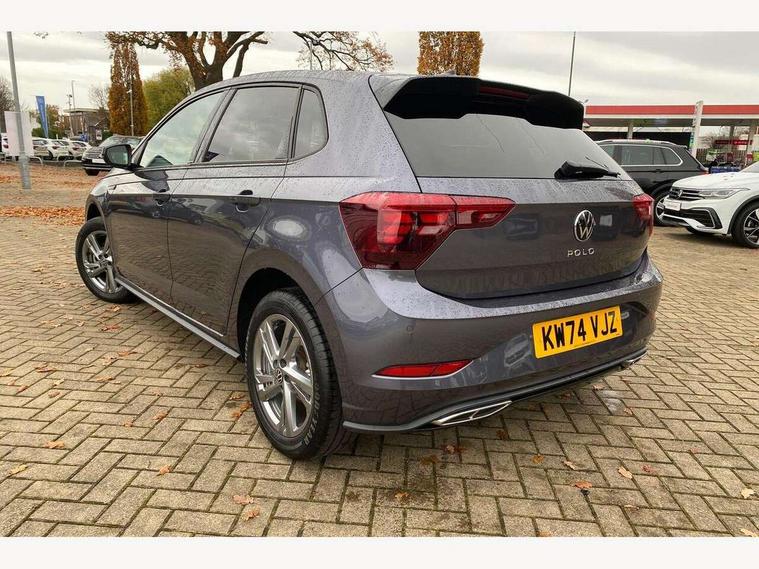 Adaptive cruise control with follow-to-stop and speed limiter, Advanced driver attention and drowsiness monitor, Bluetooth mobile phone interface, Digital Cockpit Pro with 10.25" Display, Dynamic road sign display, Emergency call service, Multifunction camera, Power assisted speed sensitive steering, Preparation for We connect and We connect plus, Speedo and rev counter, electronic odometer, trip, service interval display and fuel gauge, Standard rear axle, Travel Assist - Lane keeping system and traffic jam assist, Travel assist including emergency assist, Trip computer, Warning signal and warning light for front and rear seatbelts not fastened, Washer fluid level indicator, Wireless app connect, Front wheel drive, Rear shock absorpion, Start-stop system with battery regeneration (recuperation - energy recovery during braking), DAB Digital radio, Diversity antenna for FM reception, Front and rear 6 speakers, Body colour bumpers, Body colour door handles, Electric front windows, Front scuff plates with R-Line logo, Heat insulating glass windscreen, Power folding adjustable/heated exterior mirrors and front passenger exterior mirror lowering function, Rear electric windows, Rear fog light, Rear side wing doors, Rear windscreen washer and wiper with interval delay, Third brake light, 12V power socket in centre console, 2 USB-C ports in the front, 2 USB-C charging sockets on the center console in the rear, 3 rear head restraints, 60/40 split folding rear seat and rear seat bench not split, Air care climatronic air conditoning system with active combination filter and 2-zone temperature control, Black roof lining, Carpet mats, front and rear, Chrome plated radiator grille inserts, air vent surrounds and light switch surrounds, Door and side trim panel, Driver and front passenger seat height adjustment, Driver/passenger sunvisors with illuminated vanity mirrors, Front centre armrest, Front footwell illumination, Front seat backrest storage pockets, Front sports comfort seats, Handbrake lever handle in leather, Headliner in recycled material, Isofix child seat preparation easy-fit (for two outer rear seats, and front passenger seat) compatible with I-size, Karoso artvelours cloth upholstery, Leather trimmed gear knob, LED interior light with switch off delay and dimmer, 2 reading lights front and rear, Luggage compartment cover, Luggage compartment floor, Luggage compartment lighting, Lumbar adjustment for front seats, Single front passenger seat, Stainless steel pedals, Standard pedal cluster, Three spoke leather wrapped multifunction steering wheel with shifting paddles, Light and sight pack - Polo R-Line/Black Edition, 3 point height adj front seatbelts + pretensioners, 3x3 point rear seatbelts, ABS, Driver and front passenger airbag with front passenger airbag deactivation, Drivers and front passengers safety optimised head restraints, ESC (Electronic stability control) + EDL (Electronic Differntial lock) and ASR (Traction control), Extended and predictive pedestrian/ cyclist protection, Front curtain and side airbags with center airbag, Front/rear disc brakes, Hill hold control, Manual child lock in rear doors, Single tone horn, Tyre pressure loss indicator, Alarm with interior protection, Anti-theft alarm system with interior monitoring, backup horn, and towing protection, Anti-theft wheel bolts, Electronic engine immobiliser, Chrome applications on rotary light, mirror adjustment, window regulator switches, outlet with frame in black, Dark grey anodised matt decorative inserts in dash and front door panels, 16" Coventry alloy wheels, Low rolling resistance tyres,