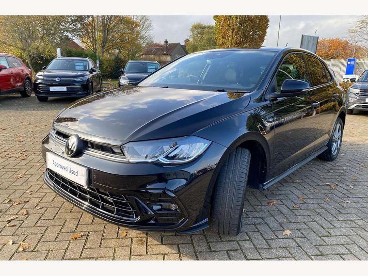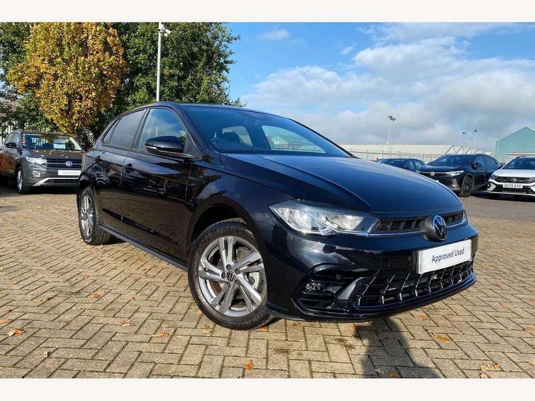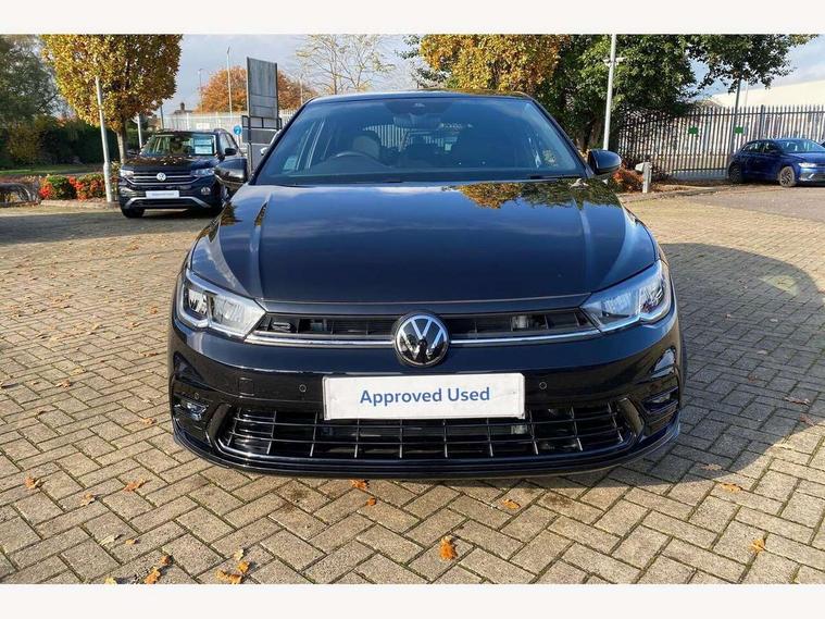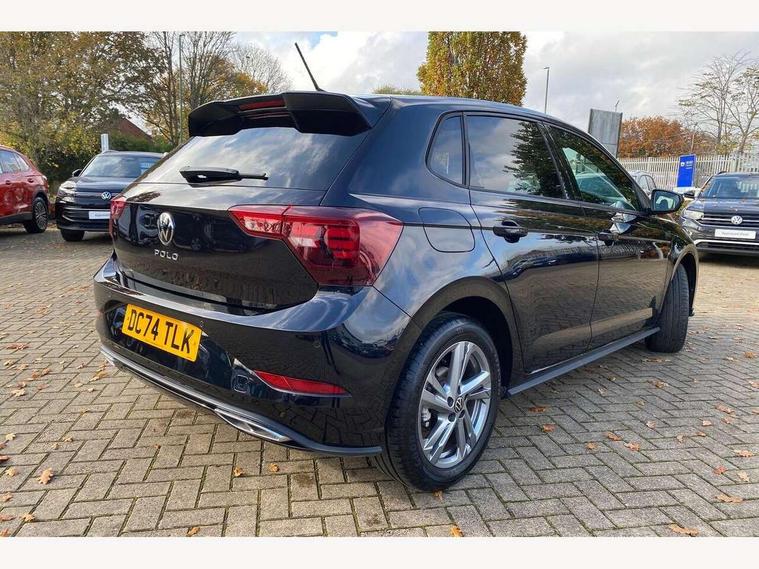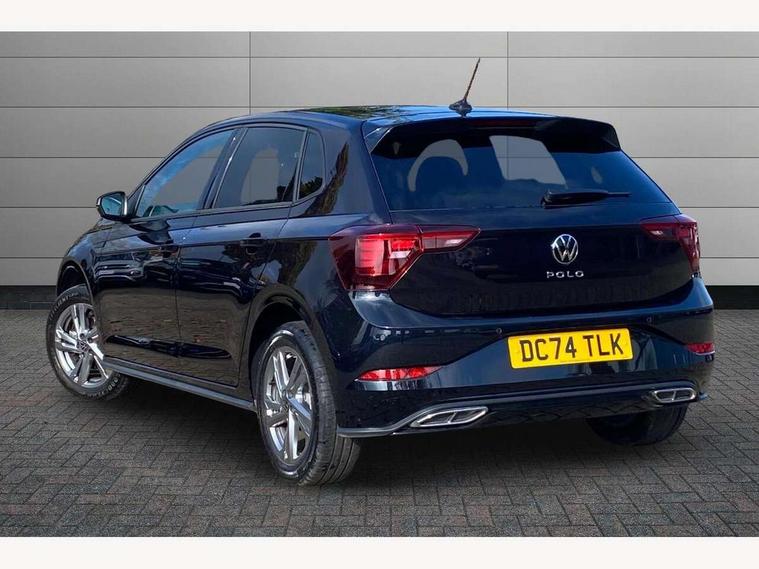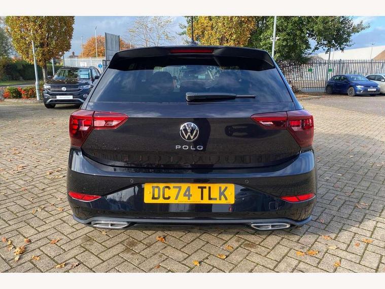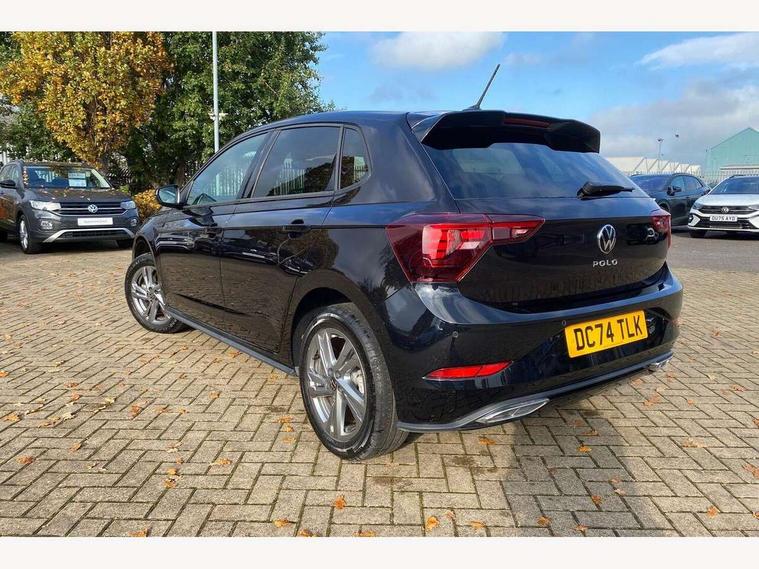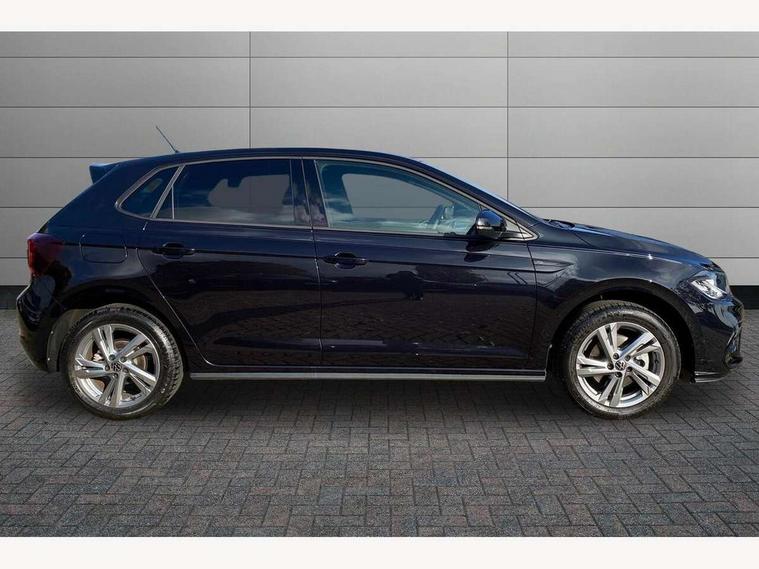 Adaptive cruise control with follow-to-stop and speed limiter, Advanced driver attention and drowsiness monitor, Bluetooth mobile phone interface, Digital Cockpit Pro with 10.25" Display, Dynamic road sign display, Emergency call service, Multifunction camera, Power assisted speed sensitive steering, Preparation for We connect and We connect plus, Speedo and rev counter, electronic odometer, trip, service interval display and fuel gauge, Standard rear axle, Travel Assist - Lane keeping system and traffic jam assist, Travel assist including emergency assist, Trip computer, Warning signal and warning light for front and rear seatbelts not fastened, Washer fluid level indicator, Wireless app connect, Front wheel drive, Rear shock absorpion, Start-stop system with battery regeneration (recuperation - energy recovery during braking), DAB Digital radio, Diversity antenna for FM reception, Front and rear 6 speakers, Body colour bumpers, Body colour door handles, Electric front windows, Front scuff plates with R-Line logo, Heat insulating glass windscreen, Power folding adjustable/heated exterior mirrors and front passenger exterior mirror lowering function, Rear electric windows, Rear fog light, Rear side wing doors, Rear windscreen washer and wiper with interval delay, Third brake light, 12V power socket in centre console, 2 USB-C ports in the front, 2 USB-C charging sockets on the center console in the rear, 3 rear head restraints, 60/40 split folding rear seat and rear seat bench not split, Air care climatronic air conditoning system with active combination filter and 2-zone temperature control, Black roof lining, Carpet mats, front and rear, Chrome plated radiator grille inserts, air vent surrounds and light switch surrounds, Door and side trim panel, Driver and front passenger seat height adjustment, Driver/passenger sunvisors with illuminated vanity mirrors, Front centre armrest, Front footwell illumination, Front seat backrest storage pockets, Front sports comfort seats, Handbrake lever handle in leather, Headliner in recycled material, Isofix child seat preparation easy-fit (for two outer rear seats, and front passenger seat) compatible with I-size, Karoso artvelours cloth upholstery, Leather trimmed gear knob, LED interior light with switch off delay and dimmer, 2 reading lights front and rear, Luggage compartment cover, Luggage compartment floor, Luggage compartment lighting, Lumbar adjustment for front seats, Single front passenger seat, Stainless steel pedals, Standard pedal cluster, Three spoke leather wrapped multifunction steering wheel with shifting paddles, Light and sight pack - Polo R-Line/Black Edition, 3 point height adj front seatbelts + pretensioners, 3x3 point rear seatbelts, ABS, Driver and front passenger airbag with front passenger airbag deactivation, Drivers and front passengers safety optimised head restraints, ESC (Electronic stability control) + EDL (Electronic Differntial lock) and ASR (Traction control), Extended and predictive pedestrian/ cyclist protection, Front curtain and side airbags with center airbag, Front/rear disc brakes, Hill hold control, Manual child lock in rear doors, Single tone horn, Tyre pressure loss indicator, Alarm with interior protection, Anti-theft alarm system with interior monitoring, backup horn, and towing protection, Anti-theft wheel bolts, Electronic engine immobiliser, Chrome applications on rotary light, mirror adjustment, window regulator switches, outlet with frame in black, Dark grey anodised matt decorative inserts in dash and front door panels, 16" Coventry alloy wheels, Low rolling resistance tyres,