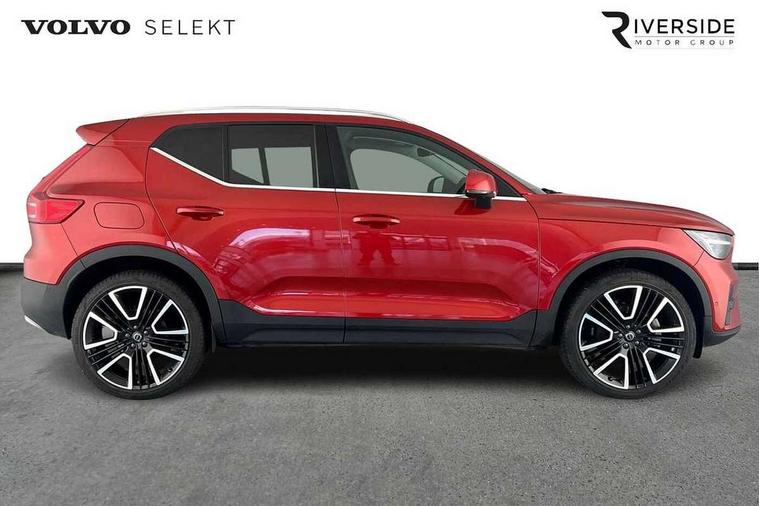 12.3" Progressive Driver Display, 360 degree surround view parking camera with side proximity sensors, 9" centre console portrait touch screen, Adjustable steering wheel force, Android auto (Wired), Apple carplay (wired), Bluetooth handsfree system, Driver alert control, Driver assistance (pilot assist and adaptive cruise control), Driver awareness - Blind spot information system with steer assist, cross traffic alert with autobrake and rear collision warning and mitigation, E-call, Front park assist, Google automotive services - Enabled entertainment apps, navigation with google maps, voice recognition with google assistant, Hands free power tailgate, Intelligent speed assistance, Lane keeping aid, Oncoming Lane Mitigation, Rear park assist, Speed sensitive steering, Volvo cars services with app - Driving journal, emergency and breakdown call, engine remote start, remote door locking/unlocking and vehicle dashboard, Wireless/Inductive Mobile Phone Charging, Automatic transmission with start/stop and manual change functions, Dynamic chassis, DAB Digital radio, Premium Sound by Harman Kardon, Dolby Pro Logic II Surround Sound, Dirac Unison, 12 speakers/600W and subwoofer, Steering wheel mounted remote controls, Active bending pixel LED headlights with adaptive shadow technology, Active high beam incorporating daytime running lights, Adaptive brake lights with high level LED brake lights, Auto dimming feature for exterior door mirrors, Auto dimming interior mirror, Automatic headlamp levelling, Dark tinted windows - rear side windows and rear screen, Front aluminium tread plates, Front and rear electric windows, Headlight cleaning system, High gloss black front and rear skid plate, High gloss black front bumper deco, High gloss black mesh front grille with high gloss black surround, High gloss black window trim, Home safe and approach lighting, Integrated roof rails in high gloss black, LED front fog lights with cornering function, Power glass tilt and slide panoramic sunroof with sun curtain, Puddle lights, Rain sensor with automatic windscreen wiper activation, Rear side wing doors, Rear wiper, Roof antenna, Roof spoiler, Visible VIN plate, 12V socket in front tunnel console and luggage compartment, 2-Zone electronic climate control with CleanZone air quality system and pollen filter, 3 seat bench in 2nd row, 3 Spoke tailored steering wheel with chrome trim, 60/40 versatile split folding rear seat, Centre console cupholders and storage, Flexible load floor and grocery bag holder, Floor mats, Front cabin courtesy lights, Front door pocket, front cupholder, ambient front door, rear reading, rear courtesy, instrument panel and tailgate lighting, Front footwell illumination, Front headrests, Front reading lights, Front seat cushion extensions, Front side step illumination (under door), Glovebox bag hook, Heated front seats, Height/reach adjustable steering column, High gloss centre tunnel deco, Illuminated glovebox, Illuminated luggage compartment, Illuminated vanity mirrors + ticket holder, Integrated waste bin, Isofix attachments on outer rear seats, Load cover, Load protection net, Multi directional lumbar support for driver and passenger seat, Power driver seat with memory + exterior mirrors memory, Power folding rear headrests, Power passenger seat, Rear armrest with cupholders, Single front passenger seat, Underfloor cargo storage, Climate pack without heated front seats - XC40, 3x3 point rear seatbelts, City safety with steering support with Pedestrian + cyclist + front collision warning with full auto brake and rear auto brake, Driver and passenger airbags, Drivers knee airbag, Electronic parking brake with auto hold, First aid kit, Front and outer rear seatbelt reminder and pretensioners, Front seats SIPS airbags, Hill descent control, Hill start assist, Inflatable curtain, Passenger airbag cut-off device, Power child locks on rear doors, Road sign information display, Run off Road Protection, SIPS (Side Impact Protection System), Slippery road and hazard light alert, Stability and Traction Control with Spin control, Engine Drag Control and Corner Traction Control, Tyre pressure monitoring system, Vehicle deceleration control with Anti-lock Brake System, Electronic Brake Distribution and Emergency Brake Assist, Warning triangle, WHIPS whiplash protection system - front, 2 x Key integrated remote control central locking including with deadlocking system and auto open/close windows and sunroof, Anti-theft alarm including immobiliser/volume sensor + level sensor, Keyless drive includes keyless entry and keyless start, Locking wheel nuts,