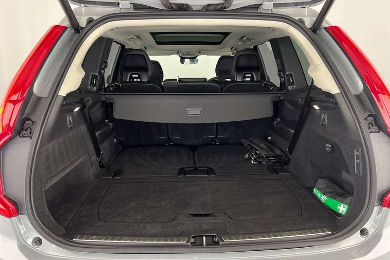 12.3" Progressive Driver Display, 360 degree surround view parking camera with side proximity sensors, 9" centre console portrait touch screen, Adjustable steering wheel force, Bluetooth hands free telephone connection, Driver alert control with lane keeping aid, Driver assistance (pilot assist and adaptive cruise control), Driver awareness - Blind spot information system with steer assist, cross traffic alert with autobrake and rear collision warning and mitigation, Emergency call service, Front and rear park assist, Google Automotive Services - Navigation with Voice recoginition and google assistant, Handsfree power tailgate opening and closing, Oncoming Lane Mitigation, Power operated tailgate, Service interval indicator, Speed limiter, Speed sensitive steering, Trip computer, Volvo on call, Wireless Mobile Phone Charger, 8 speed automatic transmission with start/stop + manual change functions, Active four C chassis - four corner adaptive dampers with electronic air suspension, DAB Radio (Digital Audio Broadcasting), Premium Sound by Bowers and Wilkins, dirac live, dolby pro logic II surround sound, 18 speakers/1400W output and fresh air subwoofer, Steering wheel remote infotainment controls, Active bending headlights with adaptive shadow technology, Adaptive brake lights with high level LED brake lights, Auto dimming interior + exterior mirrors, Auto folding and heated power door mirrors, Automatic headlight levelling system, Automatic LED Headlights + Active high beam incorporating daytime running lights, Body colour bumpers, Dark tinted windows - rear side windows and rear screen, Front and rear power windows, Headlight cleaning system, High gloss black door mirrors and window surround, High gloss black front and rear bumper deco, High gloss black mesh front grille with surround, Home safe and approach lighting, Integrated roof rails in high gloss black, LED front fog lights with cornering light function, Power glass tilt and slide panoramic sunroof with sun curtain, Puddle lights, Rain sensor with automatic windscreen wiper activation, Rear side wing doors, Rear wash/wipe with intermittent wipe setting, Roof antenna, Roof spoiler, Visible VIN plate, 12V socket front tunnel console, rear passenger compartment and cargo area, 2 seat bench in 3rd row, 2nd Row centre armrest with and cupholders, 3 seat bench in 2nd row, 4 zone electronic climate control with Clean zone air quality system + pollen filter, A-pillar parking ticket holder, Advanced interior air cleaner PM2.5, Air conditioning for 3rd row of seats, Ambient door and instrument panel lighting, B Pillar ventilation, Bright metal luggage threshold, Centre console cupholders and storage, Floor mats, Front and rear door pocket and front cupholder illumination, Front and rear reading lights, Theatre lighting and centre armrest storage illumination, Front footwell and side step illumination, Front headrests, Front seat cushion extensions, Heated front seats, Heated rear seats, Heated steering wheel, Height/reach adjustable steering column, Illuminated front and rear tread plates, Illuminated luggage compartment, Illuminated tailgate, Illuminated vanity mirrors + ticket holder, Illumination lockable glovebox compartment, Integrated sun curtains in rear doors, Isofix outer rear child seat preparation in 2nd row, Load protection net, Luggage compartment divider with grocery bag holder, Outboard armrest with cupholder and storage for third row passengers, Power driver seat with multi directional lumbar support and memory for seat and exterior mirrors, Power folding 2nd row headrests, Power passenger seat with multi directional lumbar support and memory, Rear footwell and side step illumination, Rear headrests, Semi automatic load cover, Single front passenger seat, Underfloor luggage compartment storage, 7 three point seatbelts, City safety with steering support includes pedestrian, cyclist and large animal detection and front collision warning with full auto brake, Drivers knee airbag, Dual stage driver/passenger airbags, First aid kit, Front seats SIPS airbags, Hill descent control - off drive mode, Hill start assist, IC (Inflatable Curtains) - Full Length, Passenger airbag cut-off switch, Power child locks on rear doors, Power parking brake with auto hold function, Road sign information display, Run off Road Mitigation, Run off Road Protection, Seatbelt reminder and pretensioners for all seats, SIPS (Side Impact Protection System), Slippery road and hazard light alert, Stability and Traction Control with Spin control, Engine Drag Control and Corner Traction Control, Tyre pressure monitoring system, Vehicle deceleration control with Anti-lock Brake System, Electronic Brake Distribution and Emergency Brake Assist, Warning triangle, WHIPS whiplash protection system - front, Anti-theft alarm including immobiliser/volume sensor + level sensor, Care key with user defined top speed, Key integrated remote control central locking + fuel flap with deadlocking system and auto open/close power windows, Keyless drive includes keyless entry and keyless start, Locking wheel nuts, Private locking for glovebox and tailgate, Tailored Instrument Panel and Door Tops with Contrast Stitching, Tempa spare wheel and jack,