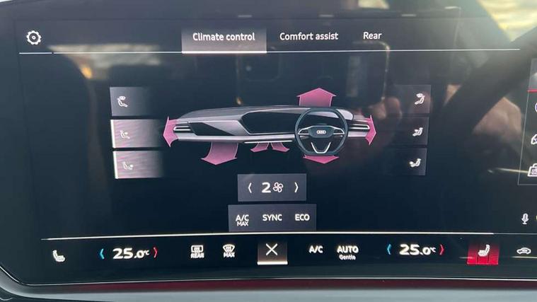 Adaptive cruise control, Advanced driver attention and fatigue montior, Audi application store, Audi assistant, Audi connect emergency call and service, Audi drive select, Audi smartphone interface, Audi virtual cockpit plus with 11.9" OLED colour display, Automatic start/stop system with coasting functionality, Camera based traffic sign recognition, Intersection assist, Lane departure warning, MMI navigation plus with high resolution 14.5" OLED touchscreen colour display, Park assist plus, Parking system plus with 360 display, Progressive steering with servotronic, Rear view camera, Swerve assist and turn assist, Traffic sign based speed limiter, Comfort suspension, 2 USB-C ports in both the front and rear, Audi sound system impressive sound with 10 loudspeakers including centre speaker and subwoofer, 6-channel amplifier with a total output of 180 watts, DAB digital radio reception, Smartphone compartment with wireless charging, Aluminium roof rails, Aluminium window trims, Auto dimming rear view mirror, Body colour door mirrors, Door mirrors - electrically adjustable, heated, folding and auto dimming on both sides, Front and rear electric windows, Front door sill trims with aluminium inlays, illuminated, High beam assist, LED headlights Plus incl. digital daytime running lights, turning light, all-weather light, motorway light, manouevring light and intersection light, LED rear lights pro incl. dynamic rear indicators and illuminated light strip with animated coming and leaving home function, LED third brake light, Rear and side windows with heat insulating glass, Rear side wing doors, Rear wash/wipe, Sport bumpers, radiator grille and diffuser in scandium grey and diffuser insert in matt selenite silver, White rhombus logo projection light in exterior mirrors, Windscreen with acoustic glazing, 3 rear headrests, 3 seat rear bench, 3-zone automatic climate control, 40:20:40 split folding rear seat bench with centre armrest and cup holders, Comfort front centre armrest, Front and rear floor mats, Front seats with manual adjustment for position and 4-way electric lumbar support, Front sport seats with integrated head reastrains, Heated front seats, i-Size child seat mounting on the front passenger side and outer rear seats, i-Size and top tether on the outer rear seats, Luggage compartment lid, electrically opening and closing, Manual steering column height and depth adjustment, Rock grey cloth headlining, Single front passenger seat, Twin leather upholstery, Twin spoke leather steering wheel with multi-function buttons with touch control, shift paddles and trim in chrome look, Ambient lighting package plus - A5, 3x3 point rear seat belts, Driver airbag, Electric child safety locks, First aid kit with warning triangle and vests, Front emergency brake assist, Front passenger airbag, Front passenger airbag deactivation, Front side airbags with head airbag system and front interaction airbag, Hill hold assist, Seat belt monitoring with rear seat occupant reminder, Tyre pressure loss indicator, Anti theft alarm, Anti-theft wheel bolts, Keyless Go, Accent surfaces and control buttons in gloss black, Black dashboard with contrast stitching, Inlays in matt brushed aluminium, silver, Softwrap in leatherette with contrast stitching, Upper and lower interior elements in leatherette, Tyre repair kit,