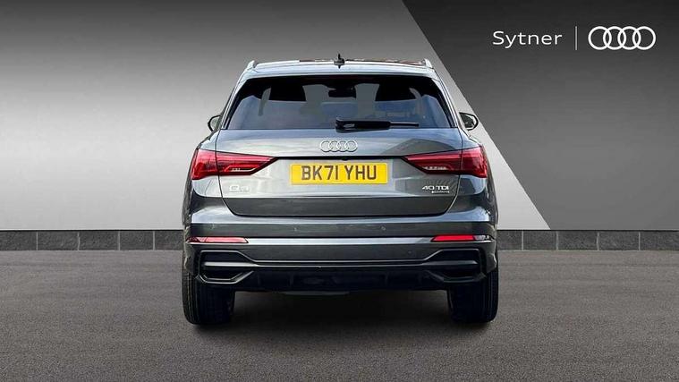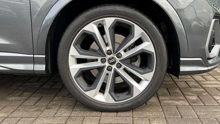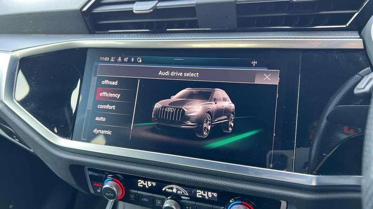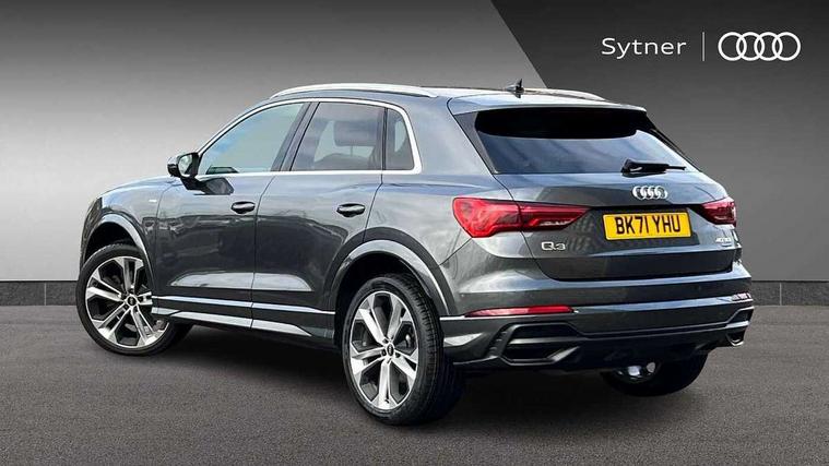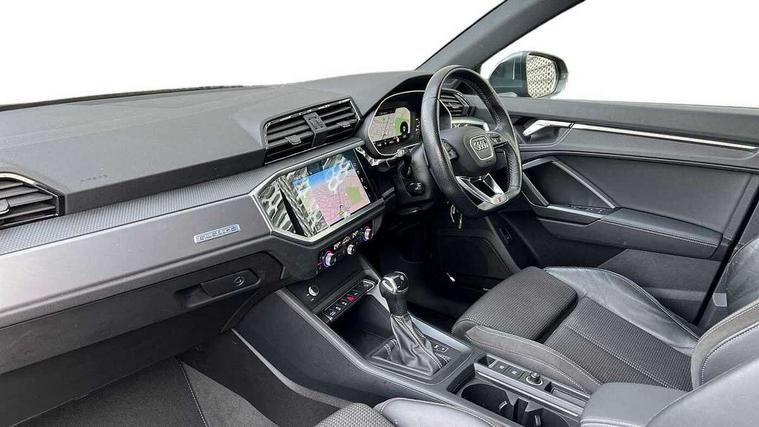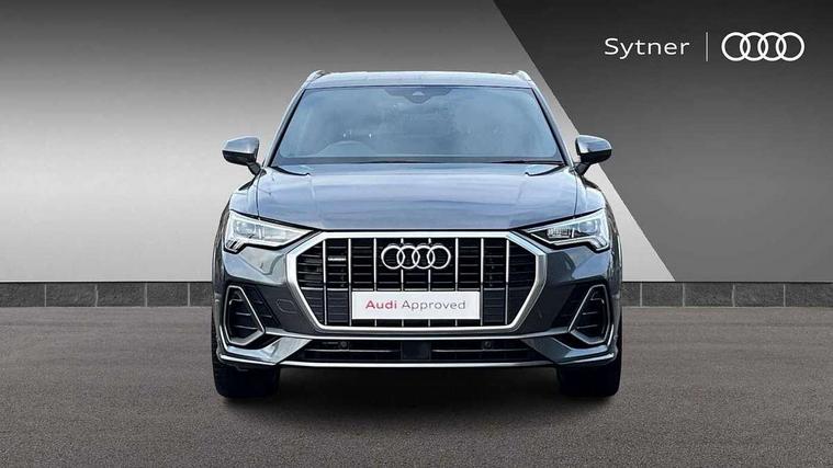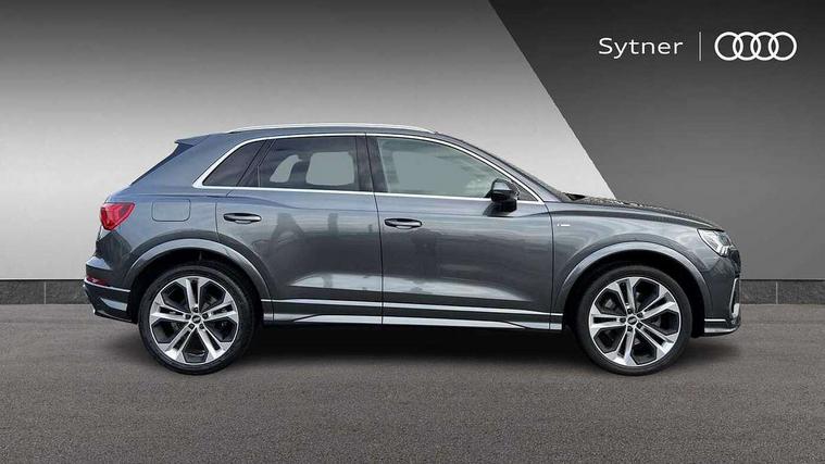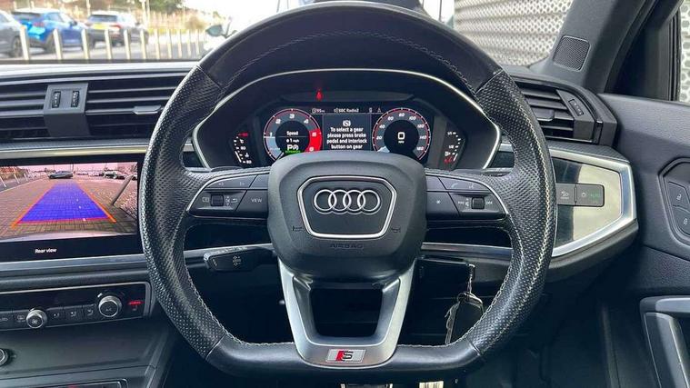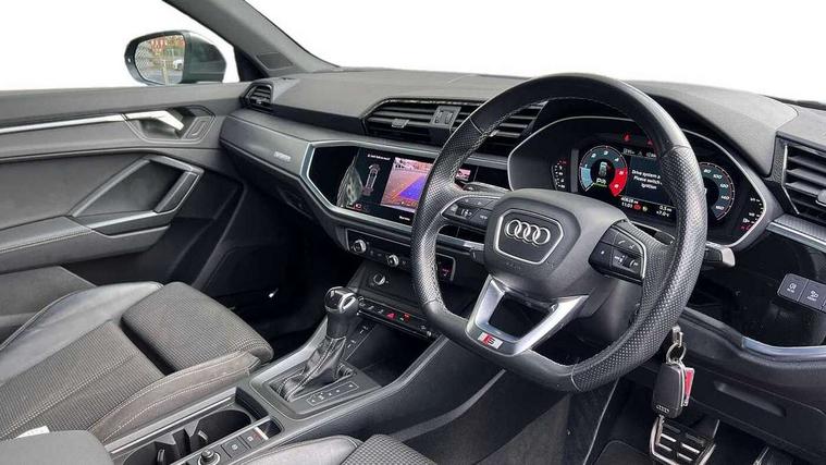 Amazon alexa Integration, Audi connect safety and service (e-call), Audi drive select, Audi lane departure warning, Audi smartphone interface includes wireless Apple carplay/Android Auto, Audi Virtual Cockpit - 10.25" display, Bluetooth interface, Camera based traffic sign recognition, MMI Navigation Plus with high resolution 10.1 inch touchscreen colour display, Power operated tailgate, Progressive steering, Service interval indicator, Start stop system with recuperation, Voice control system with natural language interaction, Diesel particulate filter, Sports suspension, 2 USB-C ports with charge and data functions, 6 passive loudspeakers, DAB digital radio module, Acoustic windscreen, Aluminium roof rails, Aluminium window trim, Auto dimming frameless rear view mirror, Body coloured bumpers, Electrically folding, adjustable and heated door mirrors with integrated LED side indicators and kerb view function for passenger side, Front and rear electric windows, Front fog lights, Front side air inlets in matt platinum grey, Front spoiler blade in matt platinum grey, Grille vertical bars in aluminium silver/Matt, High gloss black finish B and C pillars, LED headlights with LED daytime running lights and dynamic rear indicator, LED rear lights, Privacy glass dark tinted rear and rear-side windows (from B-pillar backwards), Rain and light sensors, Rear diffuser strip in matt titanium black, S line badges on front wings, S Line front and rear bumpers, Side skirt insert in matt Platinium grey, Silver chrome grille surround, Titanium black radiator grille, 12V socket in rear centre console, 40:20:40 folding with manual adjustment for 60:40 forwards/backwards position and backrest angle, Adjustable rear seat bench/backrest with centre armrest and cupholder, Black cloth headlining, Dual zone electronic climate control, Front and rear black floor mats with contrast stitching in rock grey, Front and rear headrests, Front and rear roof module including reading lights, Front centre armrest, Glove compartment lighting, Height and reach adjustable steering wheel, Illuminated door sill trims with S logo, ISOFIX child seat mounting for front passenger with airbag deactivation and outer rear seat including top tether attachment point for outer rear seats, Luggage compartment light, Manual front seats with height adjustment, Perforated leather gearknob, Stainless steel luggage compartment sill finisher, Stainless steel pedals, Non smoking pack - Q3, 3x3 point rear seatbelts, 6 airbags - Driver, front passenger, curtain and side windows, Audi pre-sense front with pedestrain and cyclist recognition, Electrically operated child locks on rear doors, Electromechanical parking brake, Electronic stabilisation control including ABS, ASR and EDL, Hill descent control, Hill hold assist, Pre sense basic, Seatbelt monitoring, Tyre pressure warning, Warning triangle and first aid kit, Anti theft alarm, Anti theft wheel bolts, Remote central locking, Dark matt brushed aluminium inlay, Detail dashboard around MMI touch colour display in glass look, black with surround in aluminium look, Leatherette door armrest,