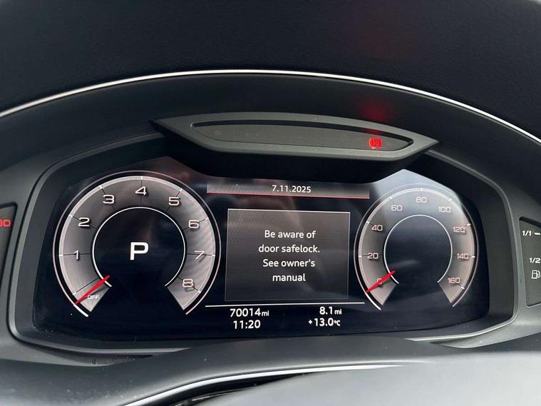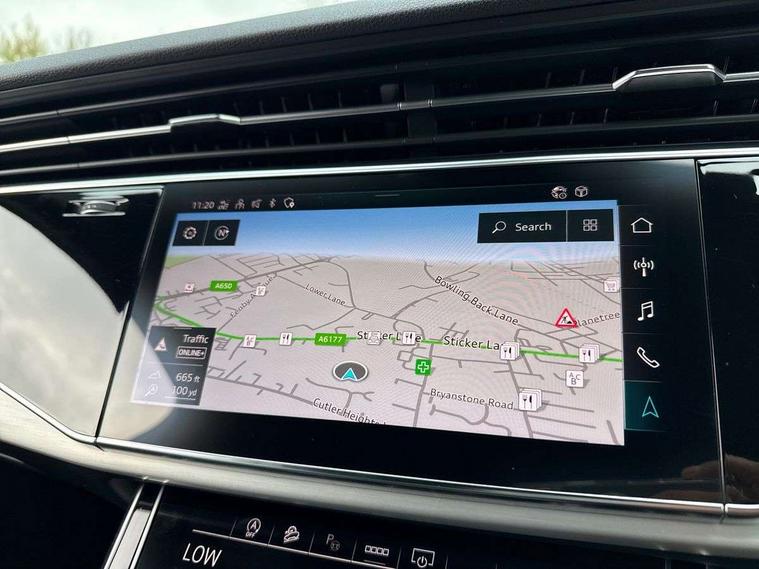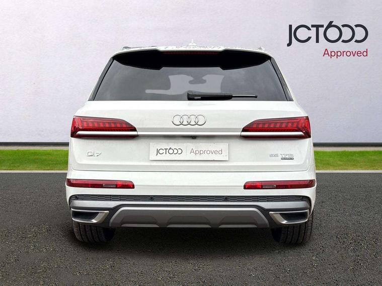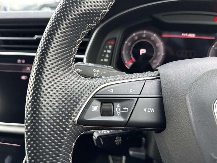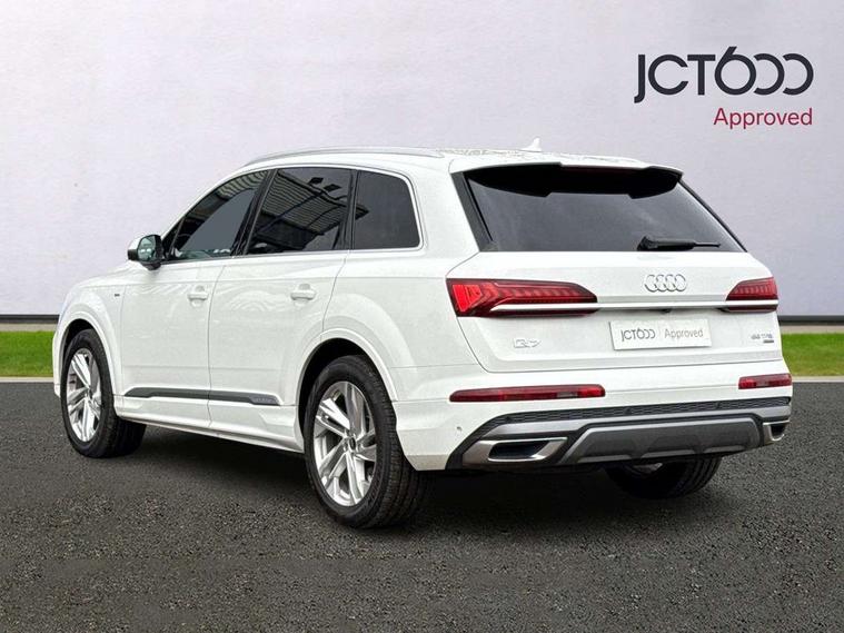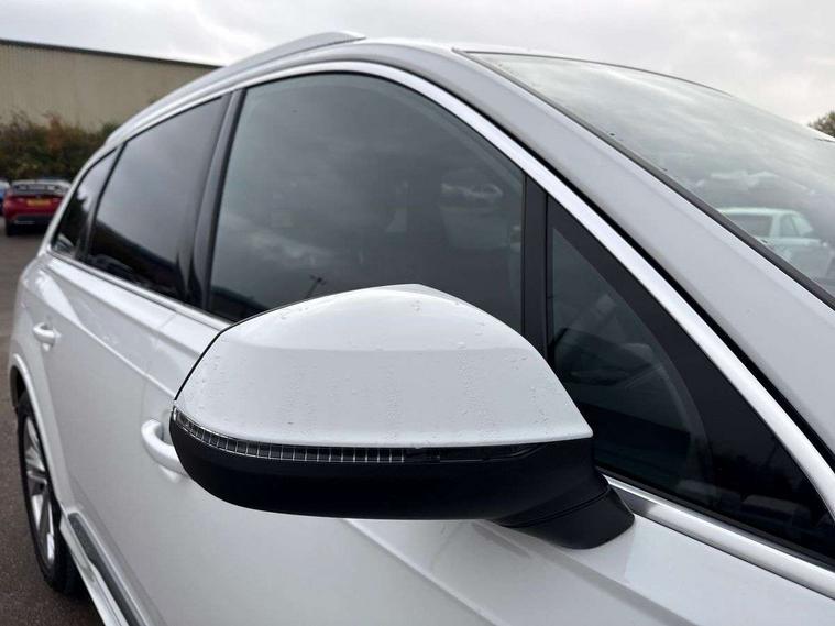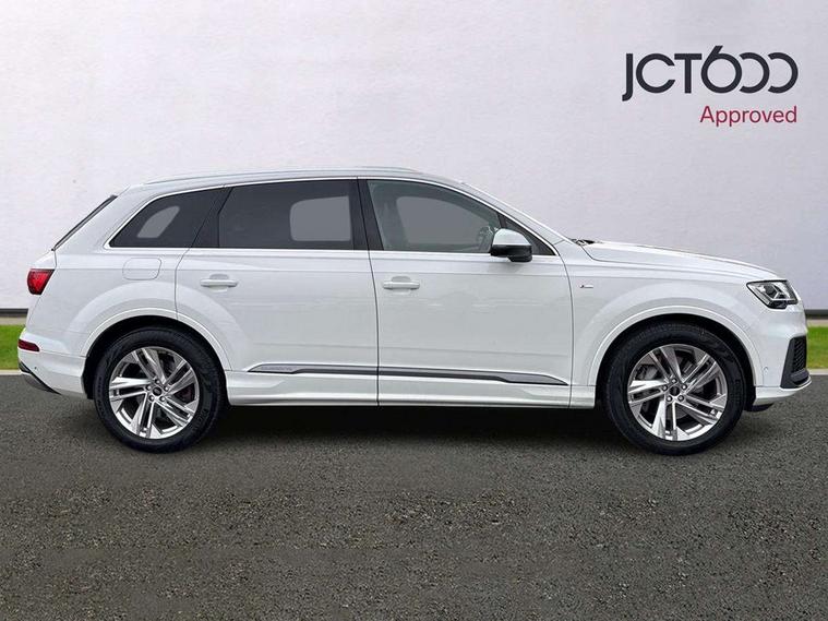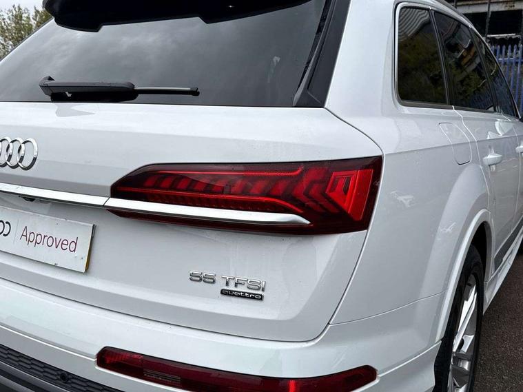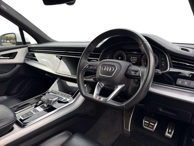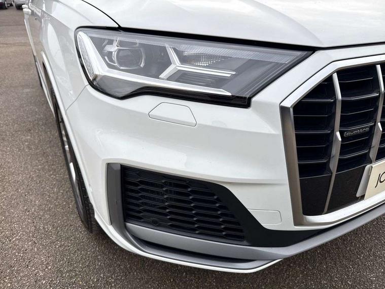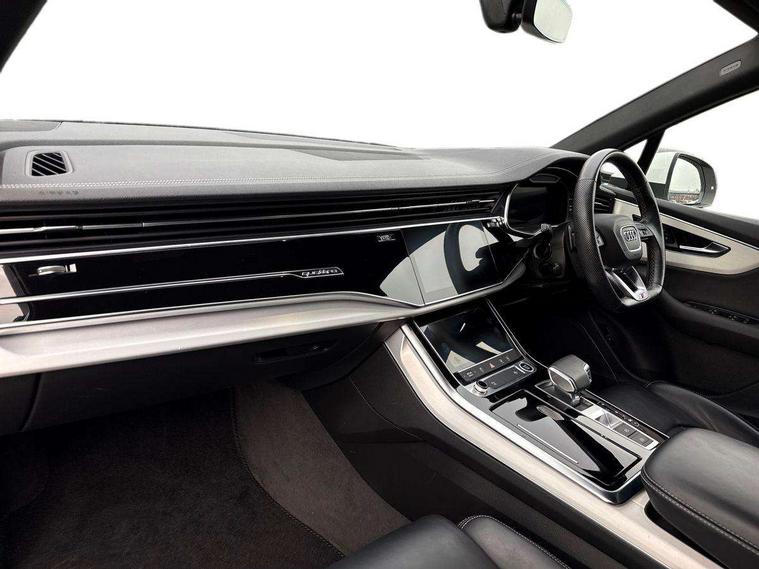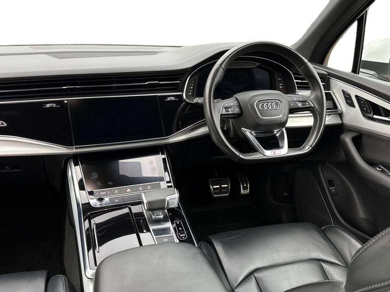 Audi connect safety and service (e-call), Audi connect with Amazon Alexa Integration, Audi drive select (Auto, Comfort, Dynamic, Efficiency, Individual, Off-road and All road), Bluetooth interface, Camera based traffic sign recognition, Electromechanical steering, MMI navigation plus with MMI touch screens includes 10.1" and 8.6" screens with haptic feedback, Natural voice recognition, Parking system plus with 360 degree display (front, rear and side sensors) - acoustic and visual park assist system, Power operated tailgate, Rear view camera, Smartphone interface includes wireless Apple carplay/Android Auto, Start/stop system, 48V Mild hybrid technology, 85 litre fuel tank, Adaptive air suspension, Quattro all wheel drive with self locking centre differential, Audi music interface - front 2 USB-C ports with charger and data functions, Audi sound system with 6 channel amplifier, 180 watt amplifying capacity and 10 loudspeakers including subwoofer, DAB digital radio module, 3rd brake light, Aluminium roof rails, Aluminium window trim, Audi matrix LED headlights with dynamic front and rear indicators, Auto dimming frameless rear view mirror, Body coloured door mirrors, Electrically adj heated/folding + automatically dimming exterior mirrors with memory + automatic kerb side function for passenger side exterior mirror, Heat insulating glass in windshield, Integrated LED indications in door mirrors, LED daytime running lights, LED rear tail lights, Privacy glass - dark tinted rear and rear side windows from B-pillar backwards, Rear side wing doors, Rear wiper, S Line badge on wings, S line bumpers in full body colour paint finish, S line roof spoiler, S line styling side ventilation grilles and side skirts, 2 seat bench in 3rd row, 2 zone automatic climate control, 3 seat bench in 2nd row, 7 seat layout with ISOFIX points for the front passenger seat and rear passenger seat, Black cloth headlining, Comfort front centre armrest, Electric adjustable front seat with 4 way lumbar support, driver memory functionality, Folding rear seats, Front head restraints, Front/rear floor mats, Heated front seats, Illuminated door sill trims with S logo, LED interior ambient lighting, Luggage compartment cover, Luggage compartment sill protection in stainless steel, Rear head restraints, Single front passenger seat, Stainless steel pedals, Sunvisors with illuminated vanity mirrors, 3 point seatbelts on all rear seats, Audi pre sense front, Child locks on rear doors, Driver and front passenger, front side and curtain airbags, Electromechanical parking brake, Electronic Stabilisation Control (ESC) including ABS, ASR and EDL, Extended pedestrian protection measures, Hill hold assist, Seatbelt monitoring, Tyre pressure loss indicator, Warning triangle and first aid kit, Anti theft alarm, Anti-theft wheel bolts and wheel loosening detection, Keyless Go, Remote central locking, Darkened matt brushed aluminium inlays, Tool kit, Tyre repair kit,