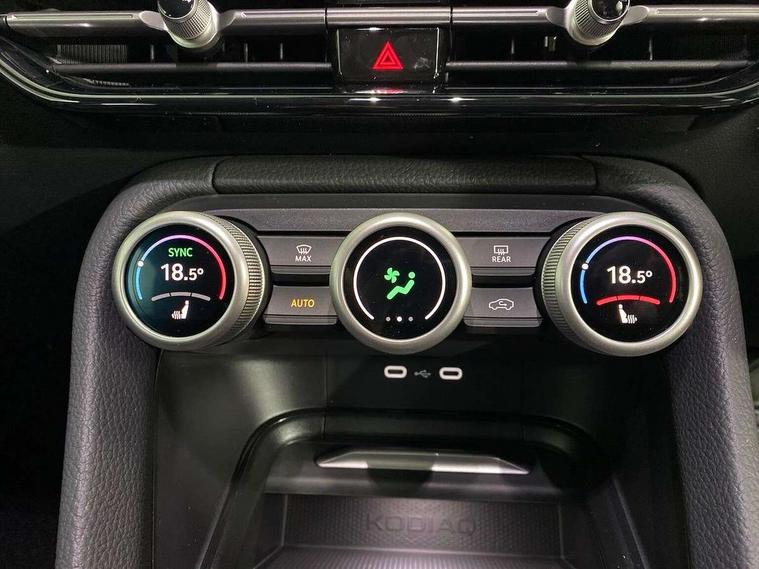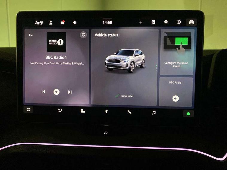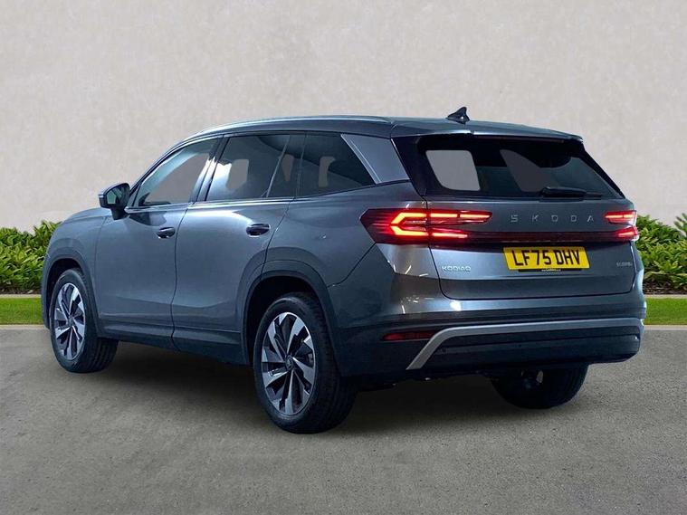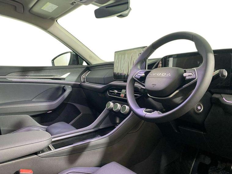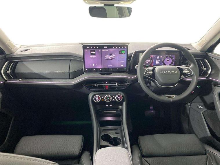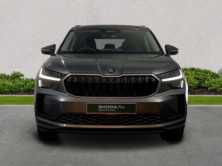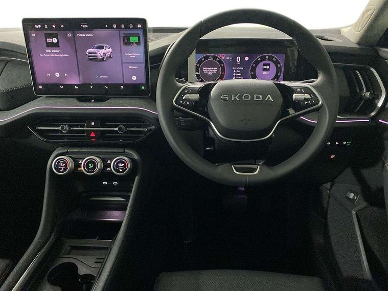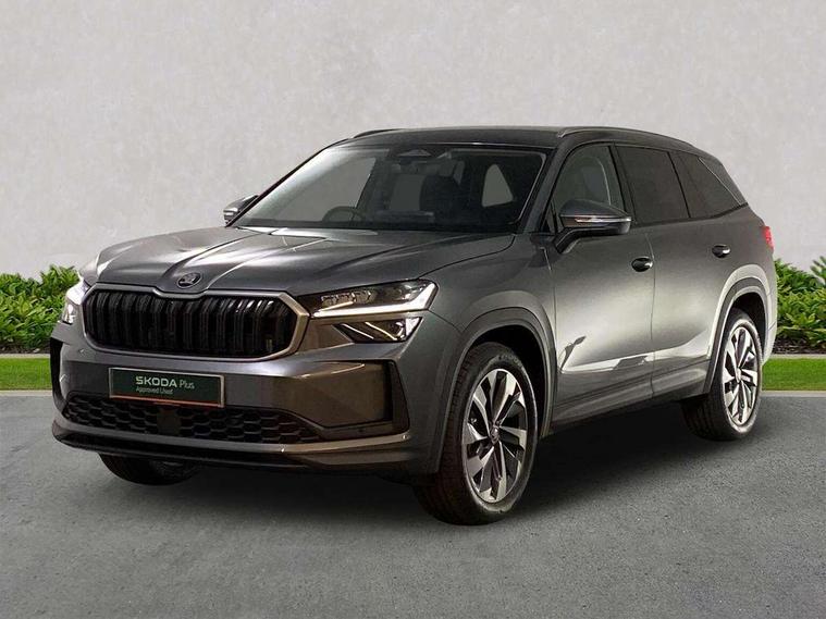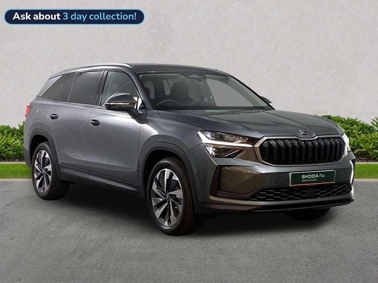13" satellite navigation touchscreen display, Blind spot detection with door exit warning, Bluetooth system, ChatGPT functionality, Driver alert - Fatigue and drowsiness monitor, Dry display cleaner, Emergency call, Front and rear parking sensors, Front cross traffic assist, Lane assist, PAS, Rear traffic assist, Tailgate unlocking from outside, Traffic sign recognition, USB C Port x 2 in front centre console, Virtual Cockpit - 10.25" digital display, Voice control system, Wireless charging for two smartphones (15W) with cooling function, Wireless SmartLink for Apple CarPlay and Android Auto, Stop/start function, 2x USB-C in the rear, DAB Digital radio, Aero front windscreen wipers with intermittent function, Auto dimming rear view mirror, AWL (all weather lighting) and all weather light with cornering function, Black wheel arch surrounds, Body colour bumpers, Body colour door mirrors and handles, Cornering light and poor weather light, Electric folding /adjustable/separted heated/folding door mirrors, auto dimming with boarding sports and memory function, Electric front and rear windows, Exterior black decorative trims, Front grille with horizontal light strip, Heat insulating glass in windshield, Heated rear window, Ice scraper in fuel tank cap, Invisible tailpipe, LED daytime running lights, LED matrix headlights with AFS and LED fog lights, LED rear light with welcome effect and dynamic turn signals, LED third brake light in rear spoiler, Light assistant with automatic headlight control and coming home feature, Logo projection in door mirrors, Multiple matrix beam, Privacy glass, Rear roof spoiler, Rear side wing doors, Rear window wiper, Red decorative strip between rear LED lights, Safety reflectors on front and rear doors, Unique dark chrome design logo on alloy wheels, Window control switches with black trim, Windscreen wipers with rain sensor, Without engine designation, 1.5l bottle holder points in all door, 1x centre rear reading light, 2 seat bench in 3rd row, 2 spoke multi-function leather heated steering wheel with paddle shift, 3 configurable smart dials with 32mm coloured display, 3 seat bench in 2nd row, 4 foldable roof handles with rear coat hooks, Ambient interior lighting - Dashboard, front-door stowage compartments, front and rear door panels and footwell lighting, Automatic gear selector on steering column, Chrome interior door handles, Driver/front passenger reading lights, Fabric headlining, Fixed bench 40:60:40 split folding backrests, Front and rear floor mats, Front centre armrest with jumbo box storage compartment, cup holder and 12V socket, Height adjustable front headrests, Isofix child seat fittings in outer middle row rear seats and front passenger with top tether, Manually adjustable steering column, Pollen filter, Rear centre armrest with cupholders, Rear seat boot backrest release, Single front passenger seat, Skoda lettering on steering wheel, Storage pocket including mobile phone pockets on the backs of the front seats, Sunvisors with illuminated vanity mirrors, Three rear height adjustable headrests, Ticket holder on A Pillar, Tri zone climate control, Umbrella in door panel x1 made from sustainable materials, Upper and lower glovebox with card holder and coin compartment, USB C port by rear view mirror for charging only (15W), Exterior styling pack - Kodiaq, Auto door release and activation of warning lights in the event of an accident, Driver and front passenger airbag with knee airbag and front passenger airbag deactivation, Electric child locks, Electronic parking brake, ESC (incl. ABS+EMD+MSR+ASR+EDL+HBA+DSR+RBS+ESBS+MCB+TSA+XDS), Front assist with braking reaction to vehicles, pedestrians and cyclists, Front disc brakes, Fuel cut off safety device, Height adjustable front 3 point seatbelts + pretensioners, Hill hold assist, Junction assist with automatic emergency braking, Rear disc brakes, Safety vest holder in door, Seat belt reminder for all seats, Three point rear seat belts, Two tone horn, Tyre pressure monitor, Anti-theft wheel bolts, Immobiliser, Remote central locking with 2 keys,