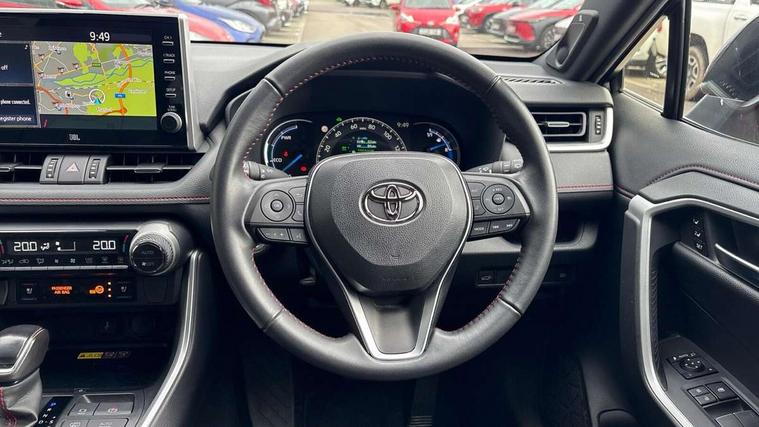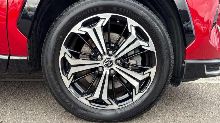 7" Coloured TFT multi informational display, Analog tachometer, Apple car play and Android auto, Blind spot monitoring with rear cross traffic alert, Bluetooth system, Cyclist Detection, Day and night time pedestrian detection, Digital speedometer, Drive mode selector, Driver attention alert system, eCall emergency call system, ECO-driving indicator, Electric power steering, EV audible alert, Front parking sensors, Head up Display, Hybrid system indicator, Intelligent adaptive cruise control, Lane departure alert with steering control, Lane trace assist, Lights on warning, Memory on adjustable speed limiter, MirrorLink, My T Connected services, Power boot opening and closing, Push button start, Rear parking camera, Rear parking sensors, Remote boot door release in cabin, Remote boot door release in key, Road sign assist - RSA, Smartphone integration, Touch 2 Go navigation system, Traffic sign recognition, Trip computer, Voice control system, Wireless Mobile Phone Charger, 6.6 kw fast charger, 7.5m cable with home charging plug, Vehicle Stability Control (VSC), 2x USB sockets in front armrest, 2x USB sockets in rear, 9" Multimedia display, Auxiliary socket for external MP3 player, DAB audio, JBL premium sound system with 9 speakers, Toyota touch 2 multimedia system, USB in front centre console, Anti-jam protection on panoramic roof, Anti-jam protection on power windows, Auto high beam, Auto up and down function on all power windows, Automatic headlamp levelling, Automatic headlights, Automatic wipers, Automatically retractable door mirrors, Bi-tone black roof, Black door mirrors, Black door moulding, Black front bumper, Black front grille, Black front under-run, Black rear bumper, Black rear spoiler, Black rear under-run, Black roof rails, Black Shark-fin antenna, Body colour door handles, Chrome window surround, Door mirror puddle lights, Dual exhaust pipes, Electric adjustable door mirrors, Emergency brake-light signal (EBS), Follow me home headlights, Framed electrochromatic rear view mirror, Front fog lights, Front wipers with variable intermittent facility, Heated door mirrors, Honeycomb upper front grille, LED daytime running lights, LED dual beam projector headlights, LED front light guide, LED High mounted stop lamp, LED rear lights, Power front windows, Power rear windows, Privacy glass, Rear side wing doors, Rear windscreen defogger, Rear wiper, Skyview electric opening panoramic sunroof, Trailer sway control, Turning signal integrated indicators in door mirrors, 1.5L front and rear bottle holder, 12V socket in boot, 12V socket in front, 220v power socket in boot, 2x Rear coat hooks, 3 rear headrests, 3 seat bench in 2nd row, 60/40 split fold rear seat back with toyota easy flat system, Adjustable speed limiter switch on steering wheel, Black roof lining, Blue ambient lighting on front cupholders and open tray on passenger dashboard, Boot light, Boot liner, C-box microphone, Clean air filter, Cool box in the centre console, Driver and front passenger air ventilated seats, Driver and front passenger personal light, Driver and front passenger Whiplash Injury Lessening seats, Driver and passenger seatback pockets, Driver and passenger sunvisors with illuminated vanity mirrors, Driver seat memory function, Dual sided deck board in boot, Floor mats, Folding rear centre armrest, Front centre armrest, Front cupholders, Front footwell lights, Front headrests, Front passenger seat, Front/rear roof mounted assist grips, Heated driver and front passenger seats, Heated rear seats, Illuminated entry system, Isofix child seat preparation, Leather gearshift, Leather upholstery, Lockable glovebox, Luggage area tonneau cover, Manual telescopic and tilt 3-spoke nappa leather steering wheel, Multimedia switches on steering wheel, Pollen filter, Power height-adjustable sliding reclining and lumbar support for driver seat, Power reclining and sliding front passenger seat, Rear console box, Rear door armrests with cupholder, Rear passenger air vents, Rear view display in display audio screen with dynamic guide lines, Reclining rear seats, Remote dual zone automatic air conditioning, Retractable tonneau cover, Satin chrome interior door handles, Silver gear shift surround on centre console, Telephone and voice recognition switches on steering wheel, Under floor storage in luggage area, 3x3 point rear seatbelts, ABS/EBD, Acoustic vehicle alerting system, Adjustable front driver and passenger seat belt extender, Brake assist function, Brake hold function, Child proof door locks, Collision mitigation braking system, Driver/Front Passenger airbags, Driver/front passenger side airbags, Drivers knee airbag, Electronic parking brake, Electronic Stability Programme (ESP), Front and rear curtain airbags, Front and rear seatbelt reminder, Front passenger airbag detector, Hill start assist, Passenger airbag cut-off device, Pedestrian detection, Pre collision system, Seatbelt pretensioners with load limiters, Toyota safety sense, Traction control, Tyre pressure warning, Glass-breaking alarm sensors, Immobiliser, Intrusion alarm, Light - on and Key in reminder, Motion sensor alarm, Remote central locking, Smart entry + Smart start, Speed sensitive auto door locking, Tilt detection sensors, Black centre air vent surround, Black centre console, Soft-touch black upper dashboard with silver insert, Soft-touch texture on lower dashboard, 19" 5 spoke black machined face alloy wheels, Tyre repair kit,