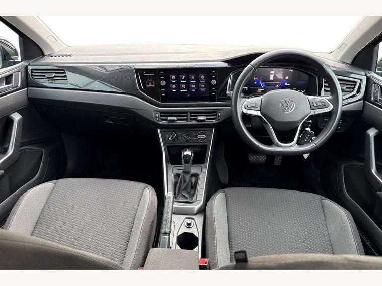 Adaptive cruise control with follow-to-stop and speed limiter, Advanced driver attention and drowsiness monitor, Bluetooth mobile phone interface, Dynamic road sign display, Emergency call service, Power assisted speed sensitive steering, Preparation for navigation system with media and internet package, Preparation for We connect and We connect plus, Speedo and rev counter, electronic odometer, trip, service interval display and exterior temperature gauge, Standard rear axle, Travel Assist - Lane keeping system and traffic jam assist, Travel assist including emergency assist, Trip computer, Warning signal and warning light for front and rear seatbelts not fastened, Washer fluid level indicator, Wireless app connect, Front wheel drive, Rear shock absorpion, Start-stop system with battery regeneration (recuperation - energy recovery during braking), DAB Digital radio, Diversity antenna for FM reception, Automatic dimming interior rear view mirror, Automatic headlight control with LED separate daytime running lights with coming/leaving home function, Body colour bumpers with chrome inserts, Body colour door handles, Body colour door mirrors, Electric front windows, Engine badge deletion, Headlight range adjustment, Heat insulating and laminated safety glass windshield, Heat insulating darkened glass in side and rear windows, Heat insulating glass windscreen, LED Headlights, LED rear combination lamps, Power folding adjustable/heated exterior mirrors and front passenger exterior mirror lowering function, Rain sensor, Rear electric windows, Rear fog light, Rear side wing doors, Rear windscreen washer and wiper with interval delay, Third brake light, 12V power socket in centre console, 2 front and 2 rear reading lights with switch off delay and dimmer, 2 USB-C ports in the front, 2 USB-C charging sockets on the center console in the rear, 3 rear head restraints, 60/40 split folding rear seat and rear seat bench not split, Ceramique roof lining, Chrome plated radiator grille inserts, air vent surrounds and light switch surrounds, Door and side trim panel, Driver and front passenger seat height adjustment, Driver/passenger sunvisors with illuminated vanity mirrors, Front centre armrest, Front seat backrest storage pockets, Front standard seats, Handbrake lever handle in leather, Hartley/Thomas cloth upholstery, Headliner in recycled material, Isofix child seat preparation easy-fit (for two outer rear seats, and front passenger seat) compatible with I-size, Leather trimmed gear knob, Luggage compartment cover, Luggage compartment lighting, Removable luggage compartment floor, Single front passenger seat, Standard climatic zones, Standard pedal cluster, Three spoke leather wrapped multifunction steering wheel with shifting paddles, Light and vision pack - Polo, 3 point height adj front seatbelts + pretensioners, 3x3 point rear seatbelts, ABS, Driver and front passenger airbag with front passenger airbag deactivation, Drivers and front passengers safety optimised head restraints, ESC (Electronic stability control) + EDL (Electronic Differntial lock) and ASR (Traction control), Extended and predictive pedestrian/ cyclist protection, Front assist with autonomous emergency braking (for Adaptive Cruise Control ACC up to 130 mph), Front curtain and side airbags with center airbag, Front disc brakes, Hill hold control, Manual child lock in rear doors, Rear drum brakes, Single tone horn, Tyre pressure loss indicator, Alarm with interior protection, Anti-theft alarm system with interior monitoring, backup horn, and towing protection, Anti-theft wheel bolts, Electronic engine immobiliser, Lava stone black gloss/matt decorative inserts in dash and front door panels, Low rolling resistance tyres,