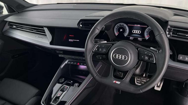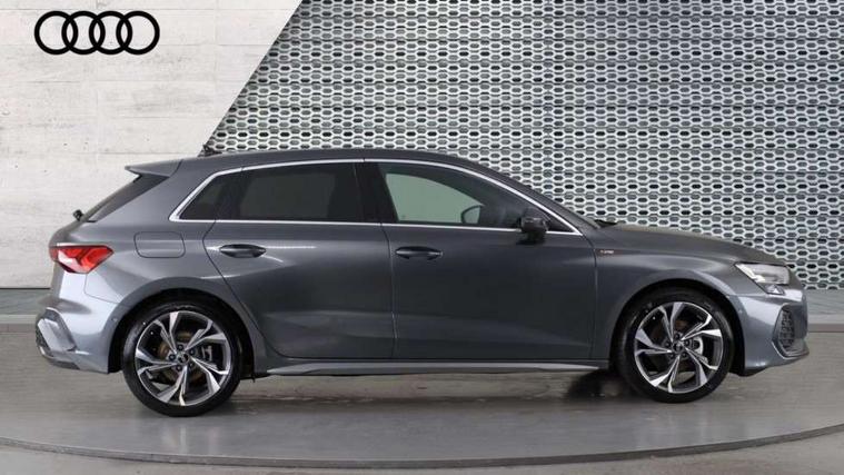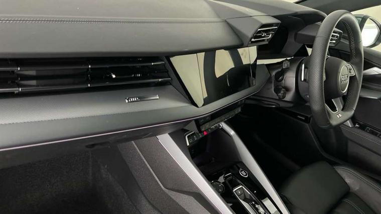 Adjustable speed limiter, Audi drive select, Audi smartphone interface with app store includes wireless Apple carplay, Android auto and Amazon alexa integration, Audi virtual cockpit plus - 12.3" full HD resolution dynamic digital instrument cluster, Automatic start/stop system with recuperation, Bluetooth interface, Camera based traffic sign recognition, Collision avoidance assistant, Cruise control, Distraction and Fatigue warning, e-Call (emergency call), Electromechanical power speed sensitive steering, Emergency assist, Lane departure warning system, MMI Navigation Plus with high resolution 10.1" colour touch screen display, Park Assist with parking system Plus, Service indicator, Tailgate, Trip computer, Voice control system with natural language interaction, Sports suspension, Audi Phonebox light with wireless charging, Audi sound system - 10 loudspeakers including centre loudspeaker and subwoofer, DAB Digital radio, USB ports with charging function in the rear, Acoustic glass windscreen, All weather light, Aluminium window trim, Auto dimming frameless rear view mirror, Automatic dynamic range control, Body colour exterior mirrors, Chrome exhaust tailpipes, Dipped beam, main beam, position light and turning light, Electrically adjustable/heated/folding/auto dimming door mirrors with integrated LED indications + kerb view function for passenger side, Exterior model badging, Front and rear side air inlets in grained matt black with dark liquid chrome frame, Front electric windows, Front radiator grill in high gloss dark chrome, Heat insulating glass windscreen, Illuminated door sills with aluminium inserts at the front with S logo, Intersection light, LED 3rd brake light, LED brake lights, LED daytime running x3, LED headlights with LED rear lights and dynamic rear indicators, LED rear number plate lights, LED reverse light, LED tail lights, Light and rain sensors, Manoeuvring light, Motorway light, Privacy glass - dark tinted rear window, rear door and side windows, Rear diffuser and grill in grained matt black with inlay in dark liquid chrome, Rear electric windows, Rear side wing doors, Rear wiper, S line bumpers, S roof spoiler, Side S line emblems on front wings, Side sill trim in dark liquid chrome, Static Cornering lights, 12V socket and storage compartment in front centre console, 3 seat bench in 2nd row, 3 spoke flat bottomed leather multifunction sport steering wheel with gear shift paddles, 3-zone deluxe automatic air conditioning, 4 way electrically adjustable lumbar support for driver and front passenger, 40/20/40 split folding rear seat bench, Black cloth headlining, Black front and rear floor mats, Front and rear centre armrest in artificial leather with contrasting stitching on armrests and instrument panel, Front and rear headrests, Heated front seats, Height and reach adjustable steering wheel, Manual boot compartment lid, Manually adjustable front seats, Rear centre armrest with cupholder, S badging on the steering wheel, Seat side bolsters, Single front passenger seat, Stainless steel pedals and front footrest in black, Twin leather upholstery with front sports seats S embossed logo, Aluminium interior elements pack - A3, Multi-coloured LED interior lighting package with Multi-coloured contour lighting of instrument panel - A3, 3x3 point rear seat belts, Driver and front passenger airbag with passenger airbag deactivation, Electronic Stabilisation Control (ESC) including ABS, ASR and EDL, First aid kit with warning triangle and 2 safety vests, Front side airbags with head airbags and interaction airbag, Hill hold assist, Pre-sense front with pedestrian and cyclist detection, Seatbelt monitoring, Tyre pressure loss indicator, Anti theft alarm, Anti-theft wheel bolts, Electronically operated child locks, Immobiliser, Remote central locking with safelock, Black dashboard, Inlay in dark aluminium spectrum,