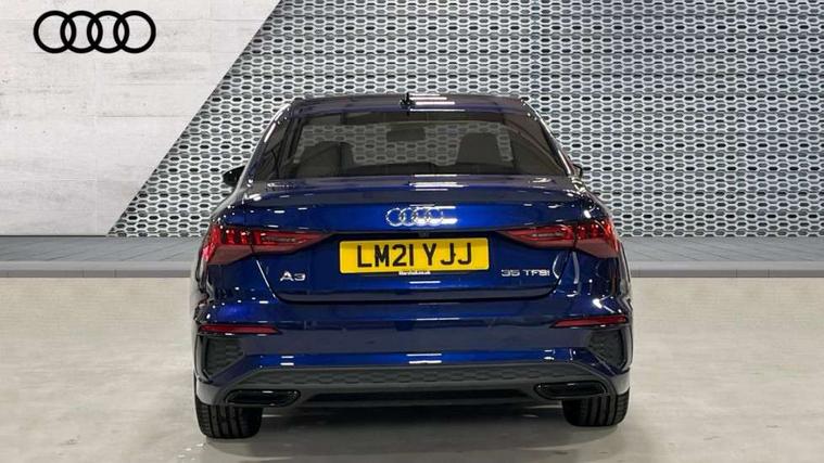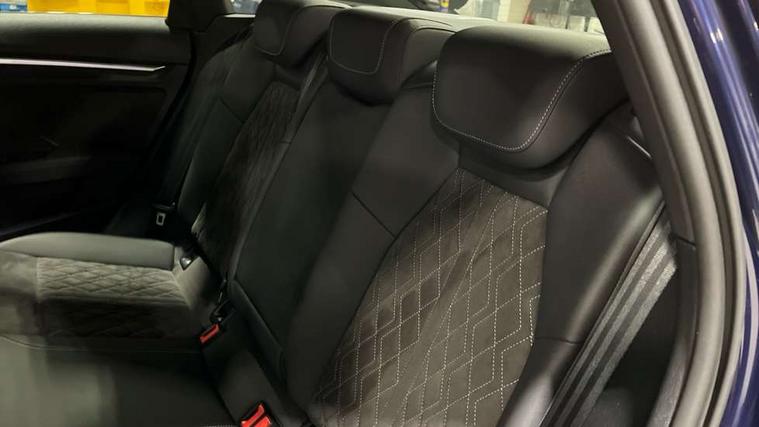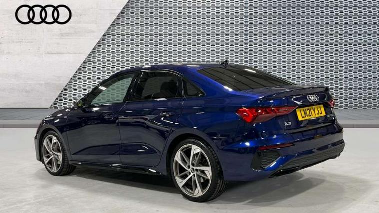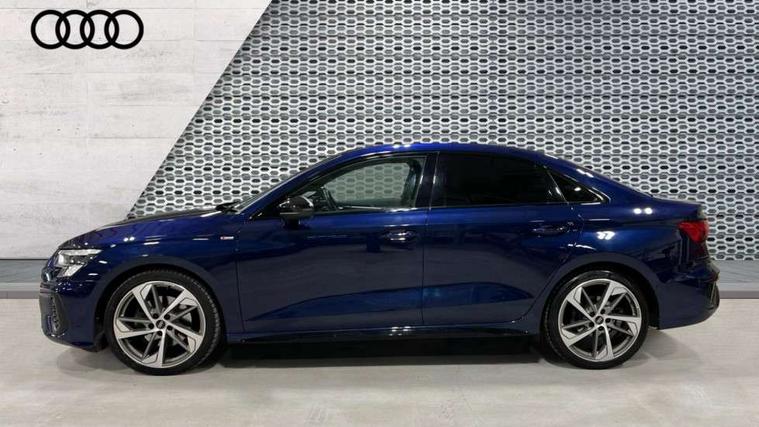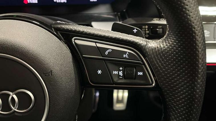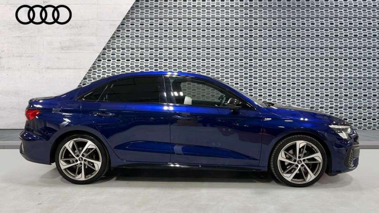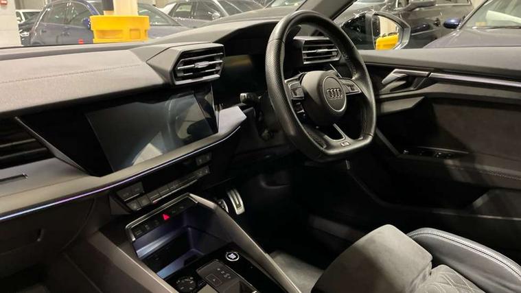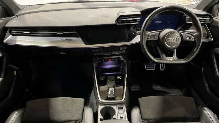 Audi connect emergency call and service, Audi drive select (Auto, Comfort, Dynamic, Efficiency and Individual), Audi smartphone interface, Audi virtual cockpit plus - 12.3" dynamic digital instrument cluster, Automatic start/stop system with recuperation, Bluetooth interface, Collision avoidance assistant, Cruise control + speed limiter, Electromechanical power speed sensitive steering, Lane departure warning system, MMI Navigation Plus with high resolution 10.1" colour touch screen display, Rear parking sensors, Service indicator, Voice control system with natural language interaction, Sports suspension, 2x USB Type C ports (for charging and data transfer), 6 passive loudspeakers, CD player, DAB Digital radio, Acoustic glass windscreen, Audi matrix LED headlights with LED rear lights + dynamic front and rear indicators, Auto dimming frameless rear view mirror, Electrically adj heated/folding + automatically dimming exterior mirrors + automatic kerb side function for passenger side exterior mirror, Front electric windows, Headlight washers, Illuminated door sills with aluminium inserts at the front with S logo, Integrated LED indicators in door mirrors, LED daytime running lights, Light and rain sensors, Model and engine designation badges at rear, Privacy glass - dark tinted rear window, rear door and side windows, Rear electric windows, S roof spoiler, 12V socket and storage compartment in front centre console, 3 spoke flat bottomed multifunction plus sports contour leather wrapped steering wheel with shift paddles, 4 way electrically adjustable lumbar support for driver and front passenger, 40/20/40 split folding rear seat bench with cupholder, Alcantara/twin leather upholstery with front sports seats S embossed logo, Black cloth headlining, Dual zone electronic climate control, Electrically adjustable front seats, Front and rear centre armrest in leather, Front and rear headrests, Front/rear floor mats, Heated front seats, Height and reach adjustable steering wheel, Interior lighting - glove compartment light and right hand side, Luggage compartment floor covering, Manual boot compartment lid, Seat side bolsters, Stainless steel pedals and front footrest, Aluminium interior elements pack - A3 Saloon, Black styling pack - A3/S3, Extended ambient lighting pack - A3/S3 Saloon, LED interior lighting pack - A3 Saloon Edition 1/Vorsprung, 3x3 point rear seat belts, Driver and front passenger airbag with passenger airbag deactivation, Electronic Stabilisation Control (ESC) including ABS, ASR and EDL, First aid kit with warning triangle and 2 safety vests, Front side airbags with head airbags and interaction airbag, Hill hold assist, Pre-sense front with pedestrian and cyclist detection, Seatbelt monitoring, Tyre pressure loss indicator, Anti theft alarm, Anti-theft wheel bolts, Electronically operated child lock, Immobiliser, Remote control central locking, Aluminium air vent surrounds, Aluminium trim elements, Dark spectrum aluminium inlays, accent surfaces in the dashboard and centre console in platinum grey silk effect paint finish, 19" 5 arm trapezoid design alloy wheels in titanium matt grey with diamond cut finish,