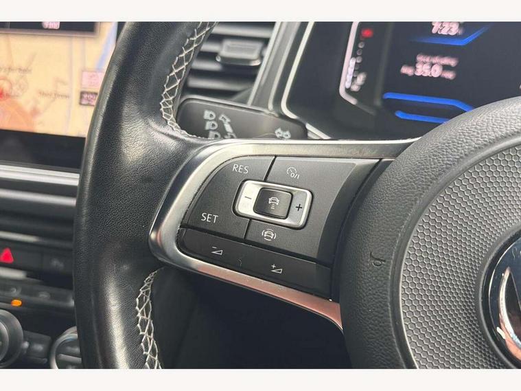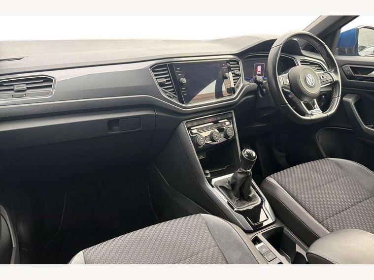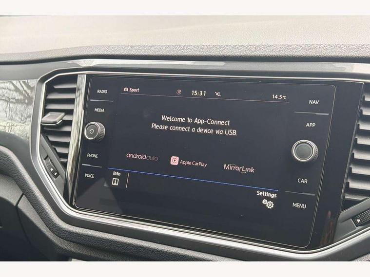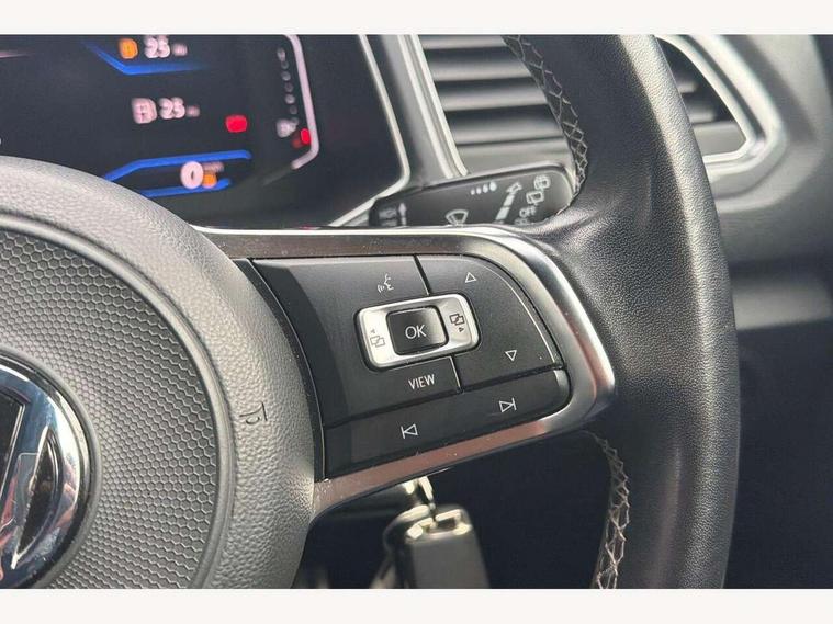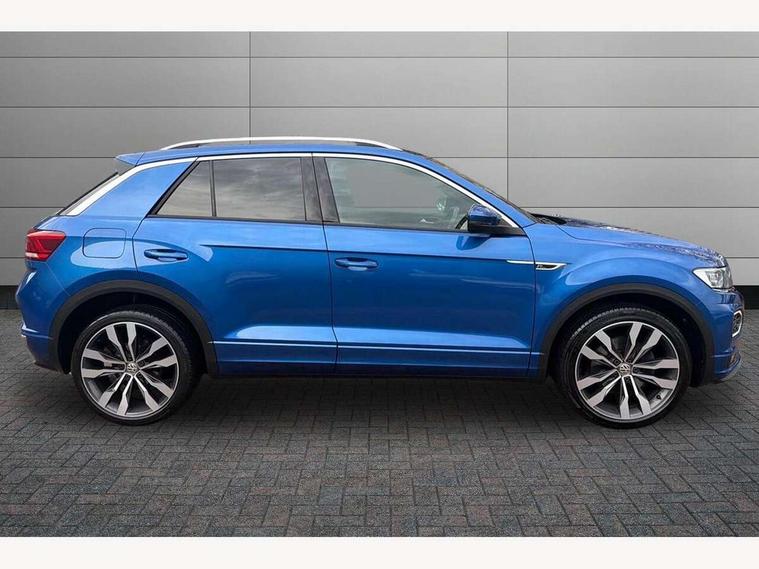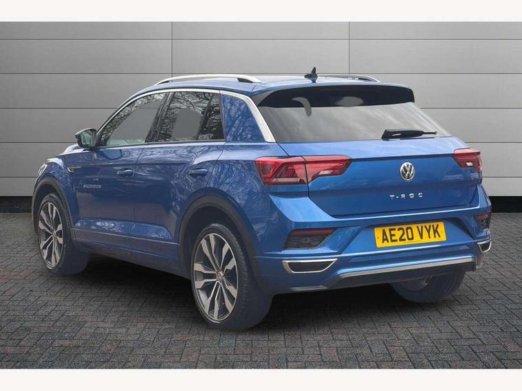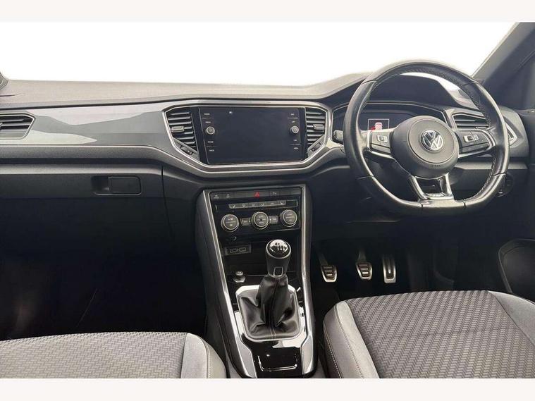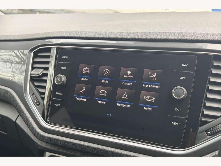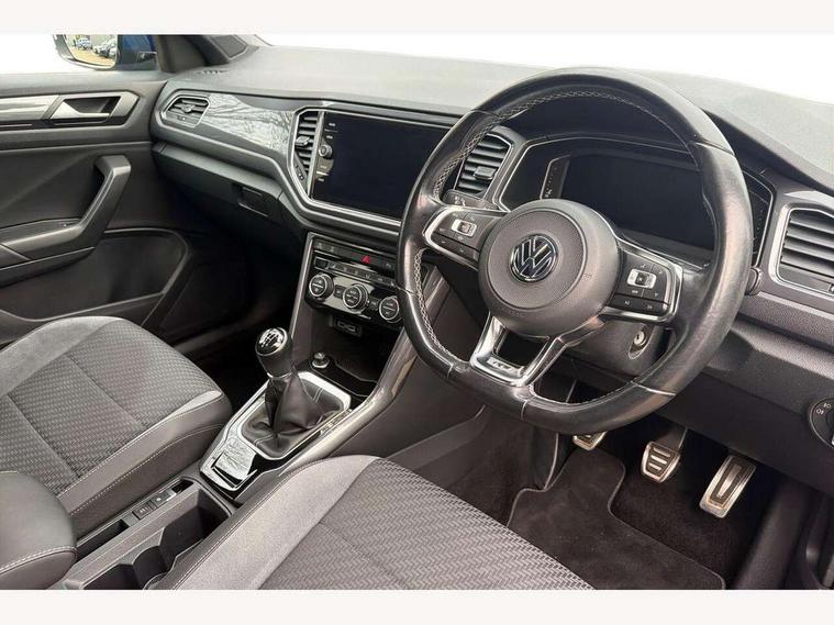 App-Connect, 'Lights On' Reminder warning buzzer, 2 USB connection charging sockets, Active Info Display, 10.3" high resolution TFT dash display screen with customised information, Adaptive cruise control with front assist, radar sensor controlled distance monitoring, city emergency braking, Automatic start/stop system, Bluetooth telephone and audio connection for compatible devices, Car information display, Car-Net Security and Service, Discover navigation, 8" touch screen navigation/infotainment system with Car-Net, European map, CD/radio, 2D/3D map and speed limiter, Driver alert system with audible and visual fatigue detection system, Driver tips and journey analysis, Driving profile selection - Eco, normal, sport or individual modes with Individual mode allows for steering, drive and air conditioning settings, Dusk sensor, Lane assist, Multifunction computer with visual gear change recommendation for fuel consumption, Service interval indicator, Think blue trainer driver tips and journey analysis, Voice activation, Warning sound and light for doors and tailgate open, Warning sound and light for front seatbelts unfastened, Battery regeneration during braking, DAB Digital radio, Dynamic navigation based on TMC+, Multi device interface (MDI) with USB connection, Music playback - MP3, WMA and AAC files, Premium USB cable in choice of either Apple or Android smartphone compatibility, SD card slot, Simultaneous pairing of 2 compatible mobile devices, SMS functionality - read, compose and send SMS messages using touch-screen display, Three route options - Fast, Short, Eco, Title and cover art display, Auto dimming interior rear view mirror, Automatic hazard lights activation under emergency braking, Black grained lower door protectors, Body colour door handles, Body colour rear roof spoiler, Chrome effect left and right trapezoid exhaust tailpipe fascia surround, Chrome trim on upper and lower radiator grille, Electrically foldable, adjustable and heated door mirrors with puddle lights and reverse activated kerb-view adjustment on passenger's door mirror, Front and rear electric windows, Front fog lights with static cornering function, Front windscreen wiper with intermittent wipe and 4 position delay, Fully galvanised body, Heated rear window, High level 3rd brake light, LED darkened rear light clusters, LED dipped and main beam headlights with automatic range adjustment including signature LED daytime running lights, LED rear number plate lights, Manual coming/automatic leaving home lighting function, Rain sensor, Rear tinted glass from B-pillar backwards approx 65% tinted, Rear wash/wipe with intermittent wipe setting, 12V socket in centre console storage area, 2 Front and rear reading lights incorporating LED technology, 3 rear head restraints, 4 load lashing points in luggage compartment, Aluminium pedals, Ambient lighting in front footwell and light strips below trim in front doors, Black roof lining and sun visors, Branded points of interest, Carbon flag cloth upholstery, Climate control - 2 zone electronic air conditioning with automatic air recirculation and allergy filter, Drawer under drivers seat, Front and rear carpet mats with contrast stitching, Front centre armrest with storage compartment, longitudinal and height adjustable and two rear air vents, Front cupholders x 2, Front footwell illumination, Front seat back storage pockets, Front sports seats with R-Line logo on seat backrest, Glovebox, Height adjustable front seats, Height/reach adjust steering wheel, Illuminated vanity mirrors, Instrument lighting, white adjustable panel illumination, Interior light delay, Isofix easy fit child seat preparation for 2 outer rear seats, Load through provision with single cup holder when folded down, Luggage compartment cover, removable, Luggage compartment lighting, R Line badge, Split folding rear seat backrests with centre armrest, Storage compartment in left and right luggage area, Storage compartment in rear doors, Storage compartments in driver and front passenger doors, Three spoke multi function leather trimmed steering wheel including gear knob with contrast stitching and aluminium inserts and R Line logo, Unique R Line door sill protectors, R line styling pack - T-Roc, Winter pack - T-Roc, 3 rear three point seatbelts, ABS, Curtain airbags, Driver and front passenger safety-optimised head restraints, Drivers and front passengers airbags with passengers deactivation switch, Electronic parking brake with auto hold, Electronic stability control (ESC) includes ASR, EDL, EDTC and trailer stabilisation function, Front seat side impact airbags, Predictive pedestrian protection, Rigid safety cell with front and rear crumple zones, Three point height adjust front seatbelts + pretensioners, Tyre pressure loss indicator, Ventilated front and rear disc brakes, Volkswagen roadside assistance, Alarm with interior protection and deactivation via infotainment system, Electronic engine immobiliser, Remote central locking with 2 remote folding keys, Shadow steel decorative inserts in dash and door panel, 19" Suzuka alloy wheels with low rolling resistance tyres and anti wheel bolts, Space and weight saver spare wheel,