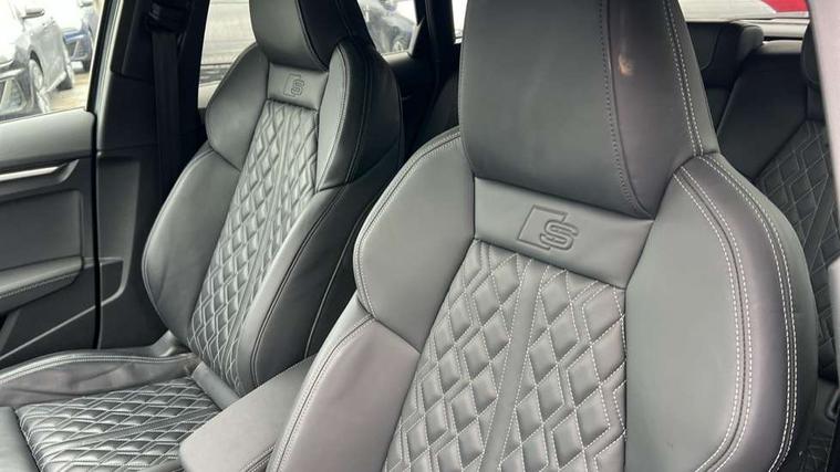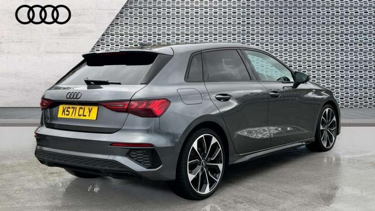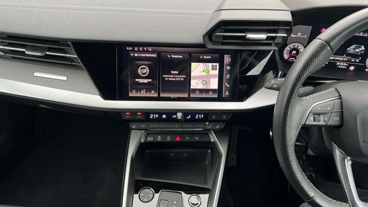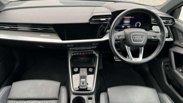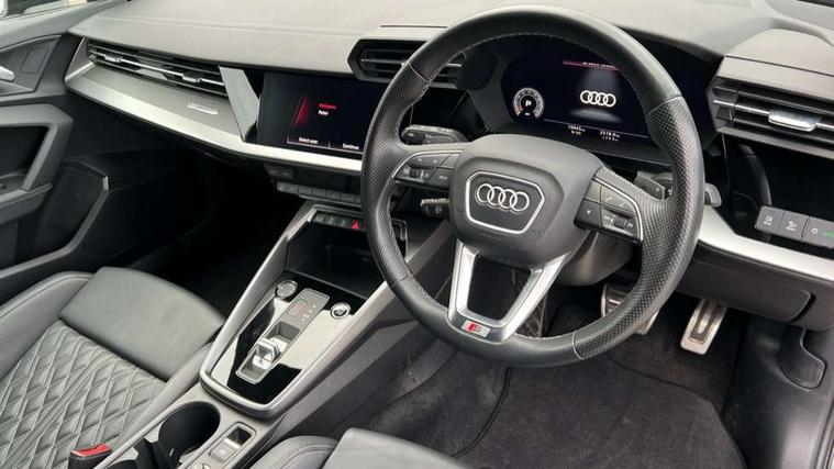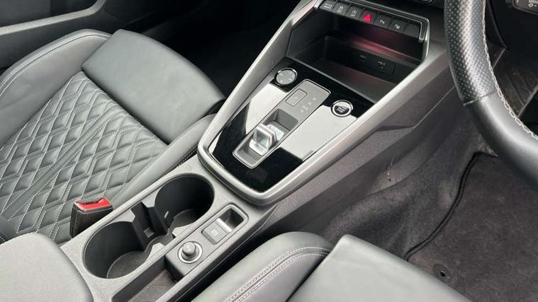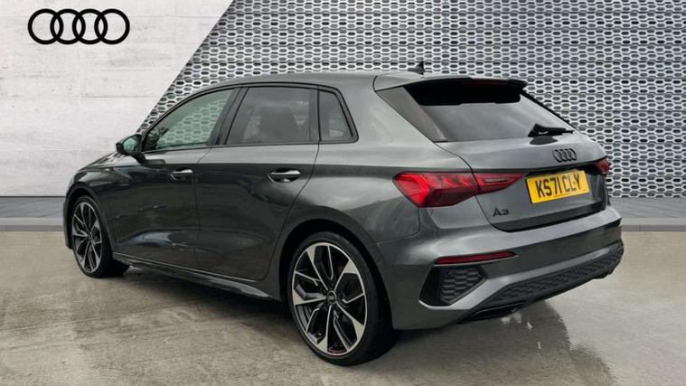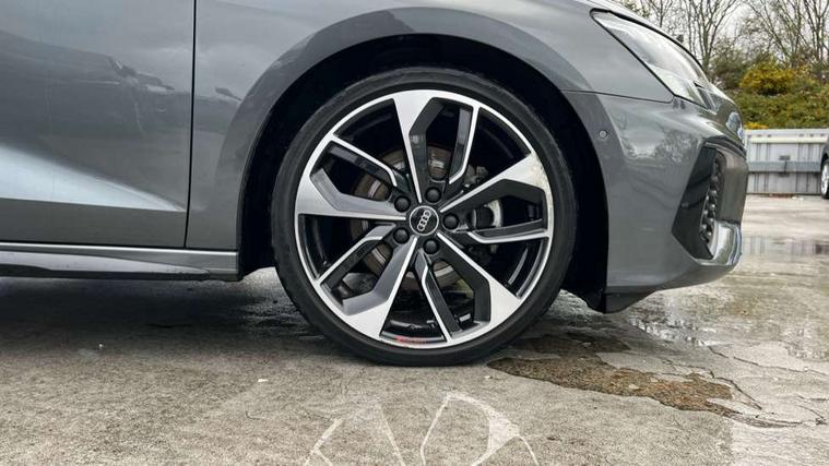 Audi connect emergency call and service, Audi drive select (Auto, Comfort, Dynamic, Efficiency and Individual), Audi smartphone interface, Audi virtual cockpit plus - 12.3" full HD resolution dynamic digital instrument cluster, Automatic start/stop system with recuperation, Bluetooth interface, Collision avoidance assistant, Electromechanical power speed sensitive steering, Head up Display, Lane departure warning system, MMI Navigation Plus with high resolution 10.1" colour touch screen display, Power operated tailgate - Luggage compartment lid opens electrically, Service indicator, Trip computer, Voice control system with natural language interaction, Sports suspension, 2xUSB-C connection with data and charging functions, Bang and Olufsen premium sound system with 3D sound, DAB Digital radio, 3rd brake light, Acoustic glass windscreen, Audi Beam uses LEDs to project Vorsprung logo, Audi matrix LED headlights with LED rear lights + dynamic front and rear indicators, Auto dimming frameless rear view mirror, Body colour front spoiler blade, Electric panoramic sunroof, Electrically adj heated/folding + automatically dimming exterior mirrors + automatic kerb side function for passenger side exterior mirror, Front electric windows, Headlight washers, Illuminated aluminium inserts front door sills with S logo, Integrated LED indicators in door mirrors, LED daytime running lights, Light and rain sensors, Privacy glass - dark tinted rear window, rear door and side windows, Rear diffuser in grained matt black, Rear electric windows, Rear side air outlets in grained matt black, Rear wiper, S roof spoiler, 12V socket and storage compartment in front centre console, 3 spoke multifunction leather steering wheel including paddle shift, 4 way electrically adjustable lumbar support for driver and front passenger, 40/20/40 split folding rear seat bench with cupholder, Black cloth headlining, Dual zone electronic climate control, Electrically adjustable front seats for driver's side, Fine Nappa leather upholstery with front sports seats S embossed logo, Front and rear centre armrest in leather, Front and rear headrests, Front/rear floor mats, Heated front seats, Height and reach adjustable steering wheel, Interior lighting - glove compartment light and right hand side, Luggage compartment floor covering, Seat side bolsters, Stainless steel pedals and front footrest in black, Aluminium interior elements pack - A3 Sportback, Black styling pack - A3 Sportback Vorsprung, Driver assistance package - A3 Sportback, Extended ambient lighting pack - A3 Sportback, LED interior lighting pack - A3 Sportback Edition 1/Vorsprung, 3x3 point rear seat belts, Driver and front passenger airbag with passenger airbag deactivation, Electronic Stabilisation Control (ESC) including ABS, ASR and EDL, First aid kit with warning triangle and 2 safety vests, Front side airbags with head airbags and interaction airbag, Hill hold assist, Pre-sense front with pedestrian and cyclist detection, Seatbelt monitoring, Tyre pressure loss indicator, Advanced key, Anti theft alarm, Anti-theft wheel bolts, Electronically operated child lock, Immobiliser, Remote control central locking, Carbon inlays, accent surfaces in the dashboard and centre console in platinum grey silk effect paint finish,