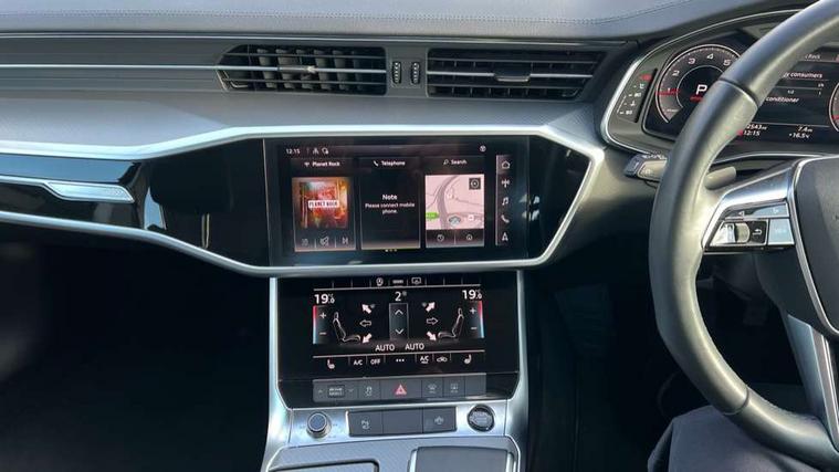 7" high resolution colour driver information display system, Audi connect safety and service (e-call), Audi connect with Amazon Alexa Integration, Audi drive select, Audi parking system plus - acoustic and visual park assist system for front and rear, Automatic start/stop system with coasting functionality, Bluetooth interface, Cruise control + speed limiter, Electric boot lid release, Lane departure warning system, Progressive steering, Rear view camera, Service interval indicator, Smartphone interface includes wireless Apple carplay/Android Auto, Voice control system, Standard suspension, Audi front music interface, Audi sound system, Auxiliary input socket, DAB Digital radio, USB connection, All weather LED headlights, Body colour bumpers, Body coloured door mirrors, Daytime running lights, Electric front/rear windows, Frameless auto dimming interior rear view mirror, Front intermittent wipers, Heat insulating darkened glass in side and rear windows, Heat insulating glass in windshield, LED rear lights, LED third brake light, Matt black rear diffuser with diffuser strip and tailpipes in chrome, Matt black side air intake grille with inlay in matt aluminium, Radiator grille in titanium black matt, single frame in chrome and horizontal struts in matt aluminium silver, Rain and light sensors, Rear boot, Rear side wing doors, 2 zone deluxe electronic climate control, 3 spoke high multi-function leather steering wheel with shift paddles, 4 way electric lumbar support for driver and front passenger, 40/20/40 split folding 3 rear seat bench in 3 parts with rear centre armrest, Black steering wheel insert, Centre armrest matches seat colour, Door sill trims with aluminium inlay, Front centre armrest, Front head restraints, Heated front seats, Height/reach adjust steering wheel, Illuminated sun visors with vanity mirrors, ISOFIX child seat mounting and Top Tether with front passenger airbag deactivation, Leather gear knob, Lunar silver cloth headlining, Rear headrests, Single front passenger seat, LED Interior Ambient Lighting Pack - A6, Non smoking pack - A6, Technology pack - A6, 3 point seatbelts on all seats, Airbags - Front side, front and rear including head, Audi pre-sense front, EBD - Electronic brakeforce distribution, Electromechanical parking brake, Electronic Stability Control (ESC) including ABS, ASR and EDL, Extended pedestrian protection measures, Manual child proof rear door locks, Seatbelt monitoring, Tyre pressure warning light, Warning triangle and first aid kit, Anti theft alarm with tow away protection, Anti-theft wheel bolts and wheel loosening detection, Immobiliser, Keyless Go, Remote central locking, Aluminium fragment inlay,