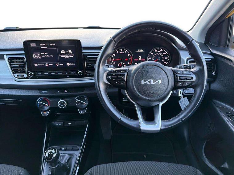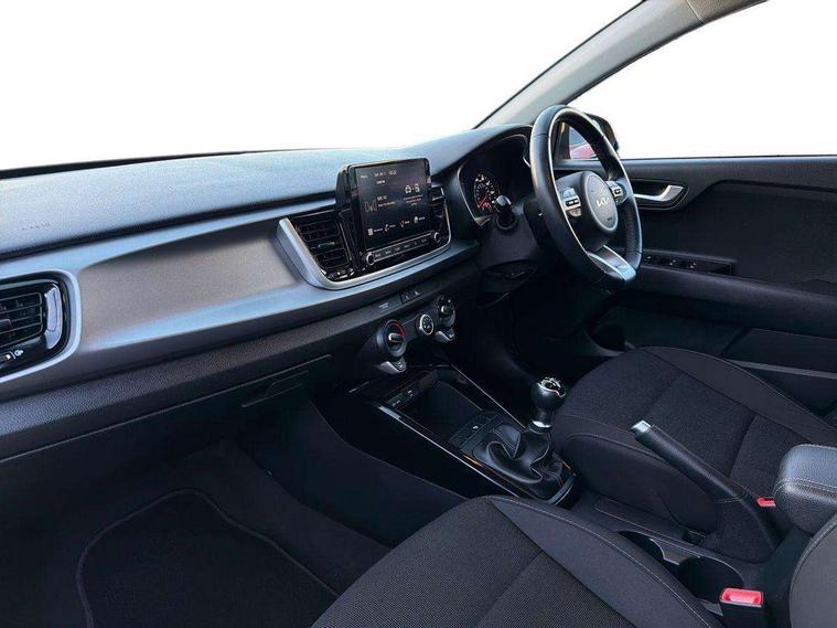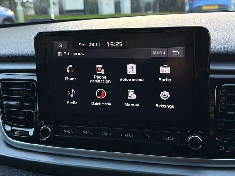 8" touch screen, Apple car play/Android Auto, Cruise control + speed limiter, Digital clock, Electric power steering, Emergency call service, Emergency stop signalling system, Gear selection indicator, Manual speed limit assist (MLSA), Outside temperature display, Rear parking sensor, Reversing camera system with dynamic guidelines (Integrated into centre fascia screen), Tachometer, Tailgate, Trip computer, Voice control system, Windscreen washer level indicator, Intelligent Stop and Go, 6 speakers, Bluetooth connectivity including audio streaming, DAB Digital radio, Front USB port for media connection, Rear USB port, Steering wheel mounted audio controls, 3rd brake light, Aeroblade-type front wipers, Automatic lighting control, Bi-function projection headlights, Black grille with chrome surround, Body colour bumpers, Body colour door handles, Body coloured door mirrors, Cornering light, Electric adjustable/heated/folding door mirrors, Front electric windows with driver's auto up/down function, Headlamp levelling, Heated rear window, LED daytime running lights, LED indicators in door mirrors, Projection front fog lights, Projection headlights, Rear electric windows, Rear fog lamp, Rear side wing doors, Rear wash/wipe, Speed variable front wipers, Tinted glass, Welcome home function, 3 passenger assist grips, 3 seat bench in 2nd row, 60/40 split/folding 2nd row of seats, Air conditioning, All round height adjustable headrests, Centre Console with Storage Box and Sliding Armrest, Dash illumination dimmer switch, Driver's seat height adjuster, Driver/passenger sunvisors and illuminated vanity mirrors, Front and rear door map pockets with bottle holder, Front passenger seatback pockets, Front USB charger port and 12V socket, ISOFIX top tethers and lower anchor points, Leather trimmed gearshift, Leather trimmed steering wheel, Load area light, Luggage area parcel shelf, Luggage hooks, Overhead console with sunglasses holder, Premium cloth upholstery, Silver interior door handles, Single front passenger seat, Tilt/telescopic adjustable steering wheel, Advanced driving assistance pack - Rio, 3-point front seatbelts, 3x3 point rear seatbelts, ABS with Electronic Brakeforce Distribution (EBD) and Brake Assist System (BAS), Automatic unlocking of doors in case of impact, Cornering brake control (CBC) and Straight line stability (SLS), Electronic stability control (ESC) and vehicle stability management (VSM), Front seatbelt pretensioners + load limiters, Height adjustable front seatbelt anchors, Hill start assist control (HAC), Passenger airbag deactivate switch, Rear child proof door locks, Seatbelt warning, Traction control, Twin curtain airbags, Twin front airbags, Twin front side airbags, Tyre pressure monitoring system, Anti theft alarm, Deadlocking system, Engine immobiliser, Locking wheel nuts, Remote central door and tailgate locking with fold-away key, Speed sensitive auto door locking, Visible vehicle identification number, Silver fascia trim, 15" Alloy wheels, Tyre mobility system,
