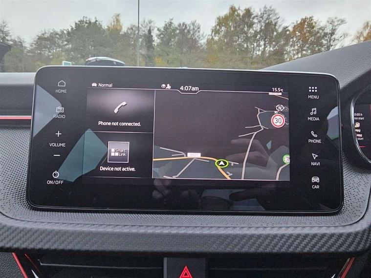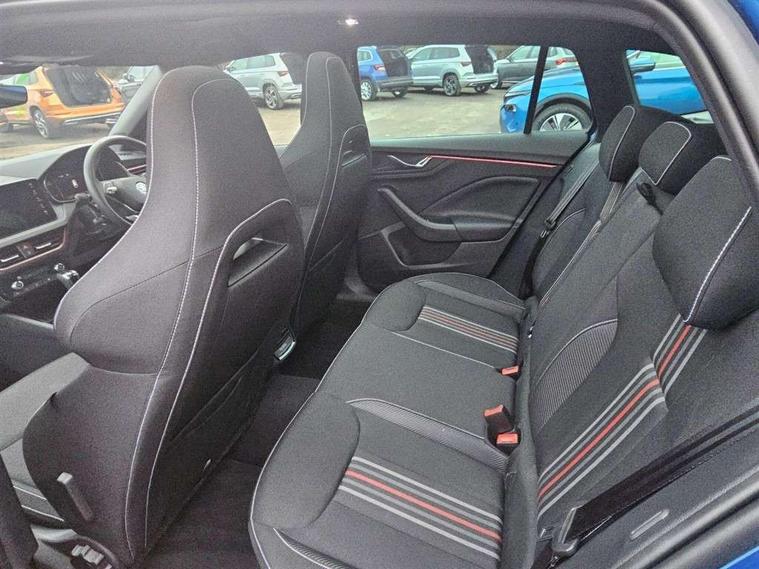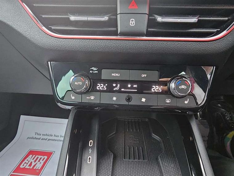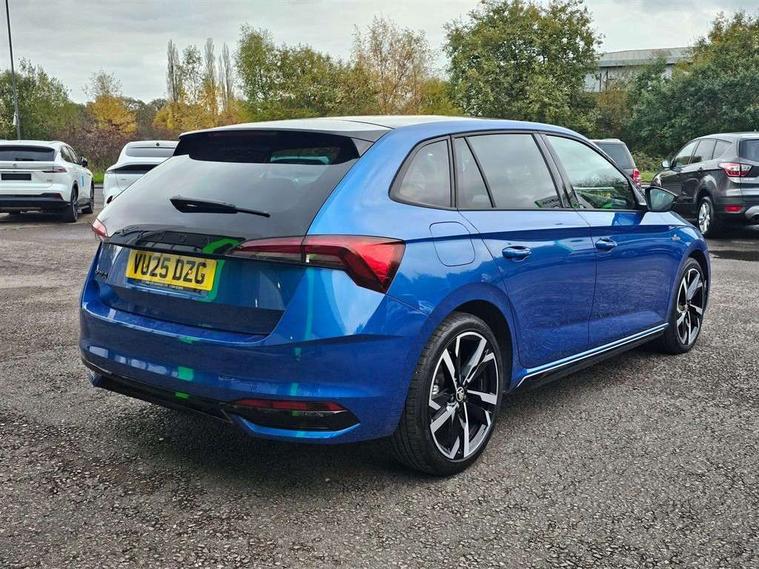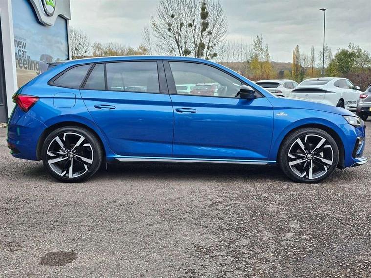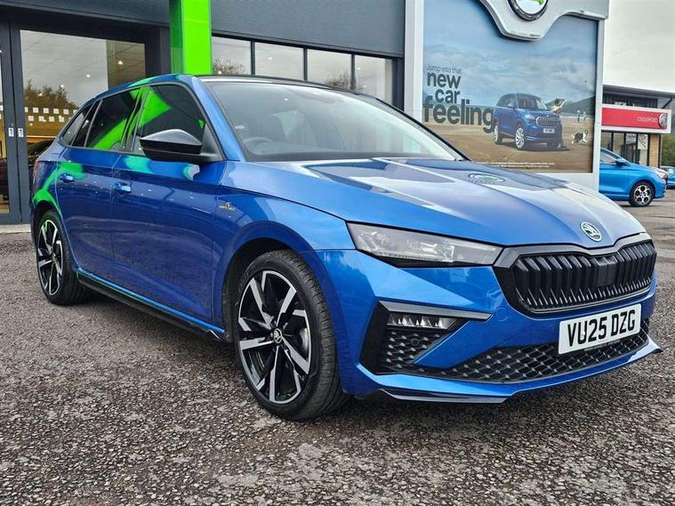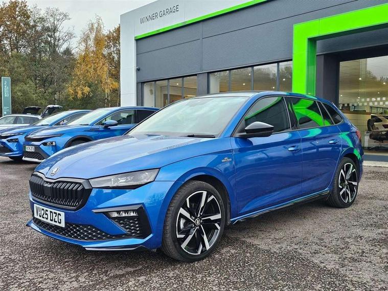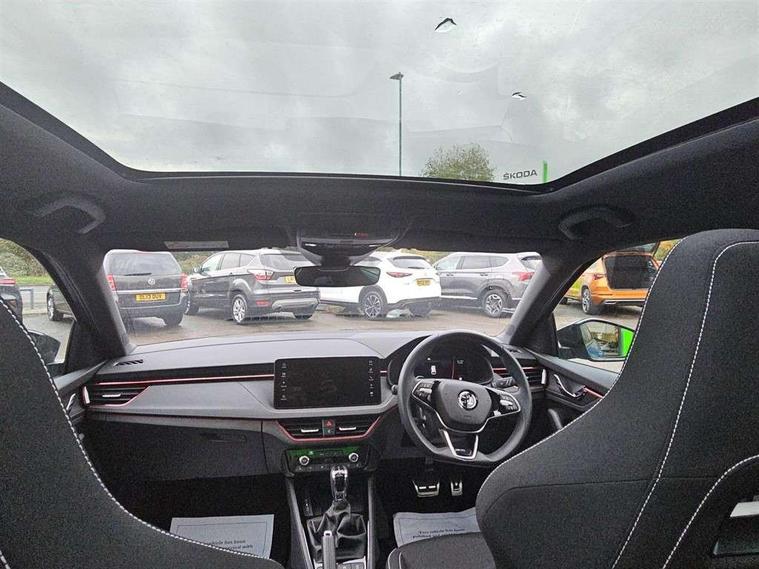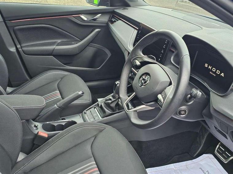 Advanced driver attention and drowsiness monitor, Bluetooth, e-Call (emergency call), Front assist system, PAS, Rear parking sensors, Rear view camera, Speed limiter, Tailgate, Traffic sign recognition, Virtual Cockpit - 10.25" digital display, Voice control system, Wireless smartlink, 4 USB C ports, 8 Speakers, 9.2" Skoda navigation display, DAB radio, Auto dimming rear view mirror, Automatic headlamp activation with Coming home and Leaving home feature, Automatic high/low beam, Automatic intermittent wipers, Black door mirrors, Black lettering on boot lid, Black radiator grille, Black rear diffuser, Black roof spoiler, Body colour bumpers, Body colour door handles, Chrome moulding around grille, Extended tailgate glass, Front and rear electric windows, Heated rear window, LED 3rd brake light, LED brake lights, LED daytime running lights, LED high beam, LED low beam, Light sensors, Monte carlo plaque, Panoramic glass roof, Privacy glass, Rear LED fog light, Rear side wing doors, Rear wiper, Tinted windows, Unique dark chrome design logo on alloy wheels, 12V socket in luggage compartment, 3 seat bench in 2nd row, Aluminium pedals, Ambient lighting in white/red, Black / White armrest stitching, Black ceiling, Black roof headlining, Cargo elements, Chrome inner door handles, Door inserts in art.leather carbon, Driver and passenger sun visors with vanity mirror, Dual zone climate control, Front and rear roof lights, Front centre armrest, Front head restraints, Height adjustable driver seat, Height adjustable passenger seat, Ice scraper, Illuminated glove compartment, Inner circulation control with pollen filter, ISOFIX for front passenger seat, Isofix preparation for back seats, Leather gearknob and handbrake lever, Luggage net under rear parcel shelf, Manual lumbar support for front seats, Monte Carlo cloth upholstery, Net package and top tether hooks in boot space, Pocket on the back of both front seats, incl. mobile phone pockets, Rear centre armrest, Red hotstamping, Single front passenger seat, Skoda lettering on steering wheel, Sport seats, Textile floor mats, Third rear headrest, Ticket holder, Top tether for front passenger seat, Umbrella in driver's door, Light and view plus pack - Scala, 3x3 point rear seatbelts, ABS, Child locks, Curtain airbags and front side airbags, Disc brakes, Driver and front passenger airbags, ESP, Hill hold control, Manual leather parking brake, One tone horn, Passenger airbag switch off function, Seatbelt reminder for driver and front passenger, Tyre pressure monitoring system, Anti theft alarm system with interior monitoring, backup horn and towing protection, Anti-theft wheel bolts, Remote central locking with 2 remote folding keys, SAFE function for remote central locking, Carbon effect decorative inserts, 18" Ursa black diamond cut alloy wheels,