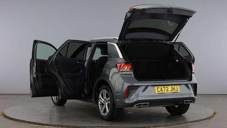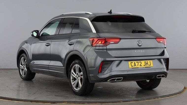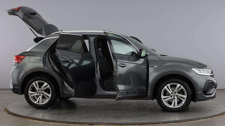 10.25" Digital cockpit pro, Bluetooth mobile phone interface, Driver alert system with fatigue detection, Driver tips and journey analysis, Dynamic road sign display, Emergency call service, Lane keeping system Lane Assist, Modified key software - reduce switch off time for key status change to Long no motion, Online services, Park assist including front and rear parking sensors, Service interval indicator, Tailgate/trunk lid release from outside, Think blue trainer driver tips and journey analysis, Warning sound and light for front seatbelts unfastened, Wireless app connect, Battery regeneration during braking, Start/stop function with battery regeneration, Diversity antenna for FM reception, Front and rear 6 speakers, Music playback - MP3, WMA and AAC files, Premium USB cable in choice of either Apple or Android smartphone compatibility, SD card slot, Simultaneous pairing of 2 compatible mobile devices, Title and cover art display, We Connect and We Connect Plus functionality, 3rd brake light, Auto dimming interior rear view mirror, Automatic hazard lights activation under emergency braking, Automatic headlight control with LED separate daytime running lights with coming/leaving home function, Chrome plated radiator grille inserts, air vent surrounds and light switch surrounds, Extended roof spoiler, Exterior mirrors aspherical on driver side, convex on front passenger side, External USB type C socket and charging sockets, Front windscreen wiper with intermittent wipe and 4 position delay, Heated rear window, LED Plus headlamps, LED rear combination lamps, LED rear number plate lights, LED tail lamp rear comination lamps, Power windows with comfort operation and circuit breaker, R-Line design body coloured bumpers, Rain sensor, Rear exhaust tailpipe, Rear fog light on one side and reversing lights on both sides, Rear side wing doors, Rear wash/wipe with intermittent wipe setting, Remote electrically foldable door mirrors, puddle lights and reverse activated passenger's door mirror, 12V power socket in centre console, 3 rear head restraints, 3 seat bench in 2nd row, 4 load lashing points in luggage compartment, Air care climatronic air conditoning system with active combination filter and 2-zone temperature control, Black roof lining, Door and side trim panel with leatherette insert, Drawer under drivers seat, Front + rear carpet mats, Front centre armrest, Front cupholders x 2, Front footwell illumination, Front reading light, Front scuff plates with R logo, Instrument lighting, white adjustable panel illumination, Interior ambient lighting and surround lighting, Interior light delay, Isofix child seat preparation, Leather gearshift handle, Load-through provision with cup holder when folded down ('Unsplit rear seat bench, split folding backrest, with centre armrest), Luggage compartment lighting, Single front passenger seat, Stainless steel pedals, Storage compartment in left and right luggage area, Storage compartment in rear doors, Storage compartments in driver and front passenger doors, Sunvisors with illuminated vanity mirrors, Variable boot floor, height adjustable and removable, Driver assistance pack without proactive passenger protection - T-Roc, 3 point height adj front seatbelts + pretensioners, 3 point seatbelts in outer rear with ECE label, ABS, Child locks on rear doors, Driver and front passenger airbag with front passenger airbag deactivation, Driver and front passenger safety-optimised head restraints, Drivers seatbelt reminder, Electronic parking brake, Electronic Stability Control (ESC) inc EDL (Electronic Differential Lock) and ASR (Traction Control), Front and rear passengers curtain airbag system including front side airbags, Front assist with city emergency braking and pedestrian monitoring, Front seat side impact airbags, Hill start assist, Predictive pedestrian protection, Rear disc brakes, Single tone horn, Tyre pressure loss indicator, Volkswagen roadside assistance, Alarm with interior protection, Anti-theft alarm system with interior monitoring, backup horn, and towing protection, Remote central locking with SAFELOCK, radio remote control with 2 remote control folding keys, Trims for alloy wheels,