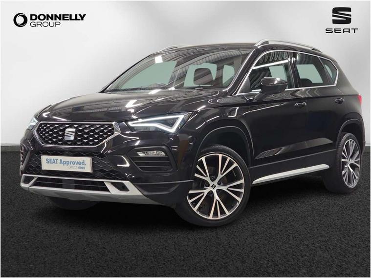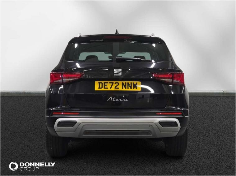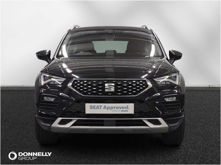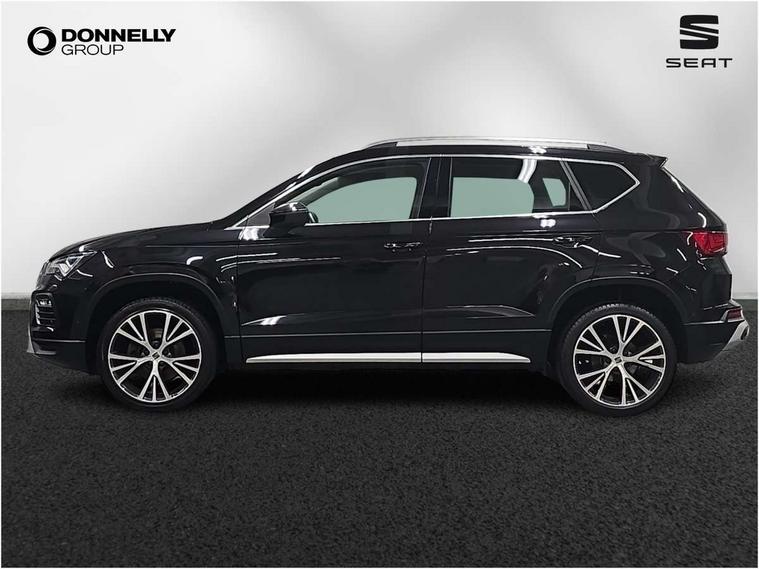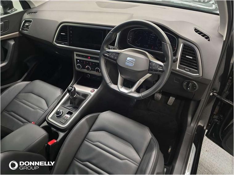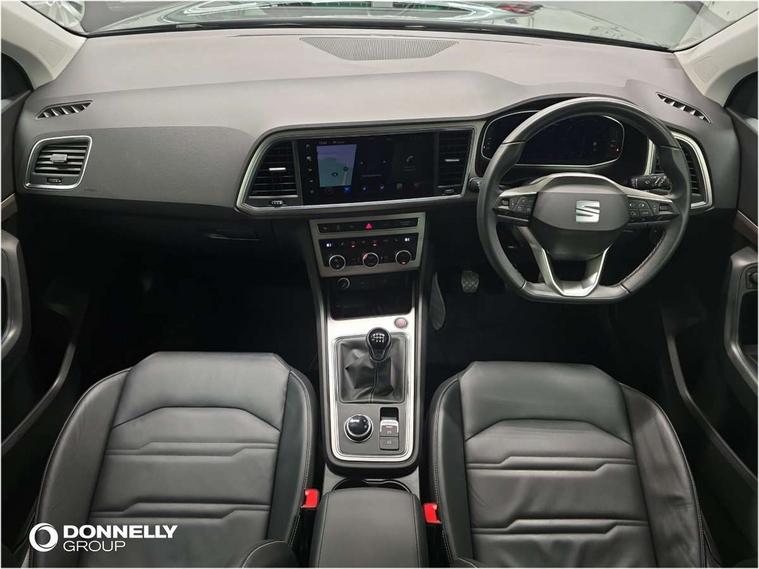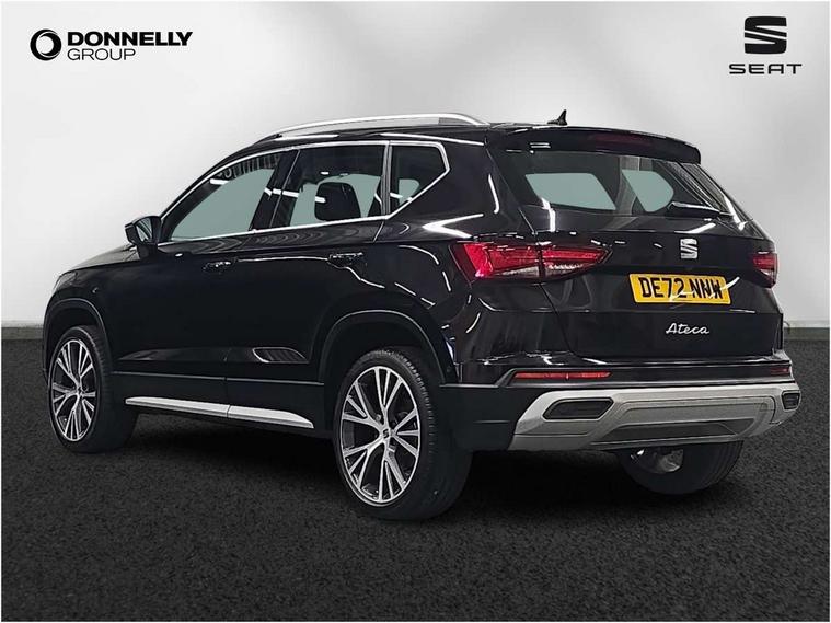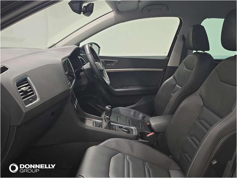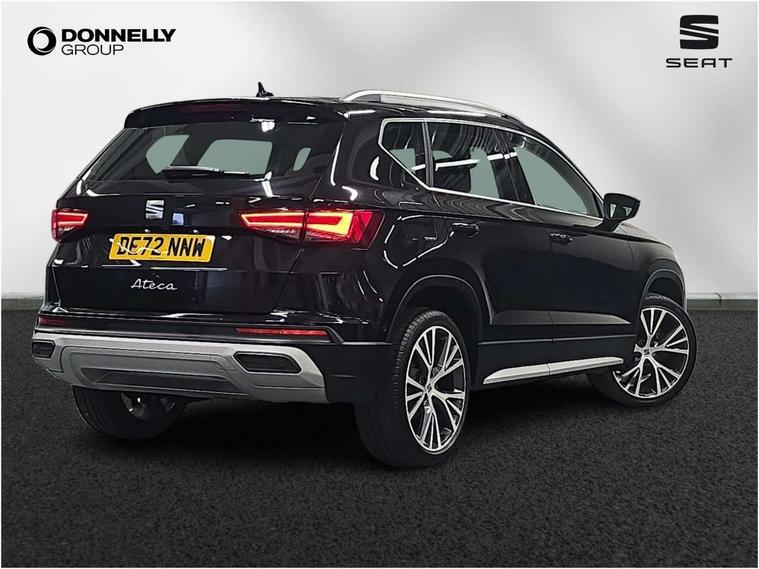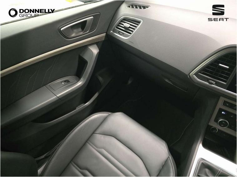10" Digital cockpit, E-call, Electric tailgate with virtual pedal, Outside temperature gauge, Progressive power assisted steering, Rear view camera, SEAT drive profile with driving experience button - Normal, Sport, Eco and Individual mode, steering and throttle response, Self parking functionality (includes front and rear parking sensors), Side and exit assist, Top view camera, Trip computer, Wireless full link smartphone integration, Wireless phone charger, Steering wheel mounted audio/phone controls, Black simulated exhaust pipes, Black wheel arch surrounds, Body colour bumpers, Chrome front grille frame, Chrome roof rails, Chrome side window trim, Dark tinted rear windows, Daytime running lights, Door mirrors with welcome light silhouette, Dynamic headlight range control with self adjusting whilst driving, Electric adjustable/heated/folding door mirrors, Front and rear electric windows, Front grille hot stamping, Full LED headlamps with lens and LED front fog lamps with cornering function, Heated windscreen, Illuminated aluminium front door sill, LED rear tail lights with dynamic indicators, Rear fog lights, Rear side wing doors, Rear wash/wipe, Reflex silver side mouldings, Third brake light, 12V socket in front, 3 seat bench in 2nd row, 60/40 split folding rear seat, Drawer under right front seat, Dual zone climate control, Front and rear head restraints, Front centre armrest, Front seat back storage pockets, Heated front seats, Heated steering wheel, Height adjustable driver and passenger seat with lumbar adjustment, ISOFIX points in outer rear seats with top tether anchorage points, Leather steering wheel and gear knob, Leather upholstery with front comfort seats, Rear armrest and easy back seat release mechanism from boot, Single front passenger seat, Convenience pack - Ateca, Interior lighting pack - Ateca, Navigation system pack with DAB - Ateca, Safe and driving pack with lane assist - Ateca, 3x3 point rear seatbelts, ABS, Traction control system (TCS), Electronic stability control (ESC) and Electronic differential lock system (XDS), Airbags - Driver and front passenger airbag with deactivation, front side, two curtain and driver's knee airbags, Electric parking brake with auto hold function, Front and rear seatbelt reminder, Hill hold control, Manual rear child locks, Pre crash system, Tiredness recognition system, Traction control, Tyre pressure monitoring system, Alarm, Keyless entry, Locking wheel bolts, Chrome interior detailing, 19" Exclusive machined alloy wheels 36/4 in nuclear grey,